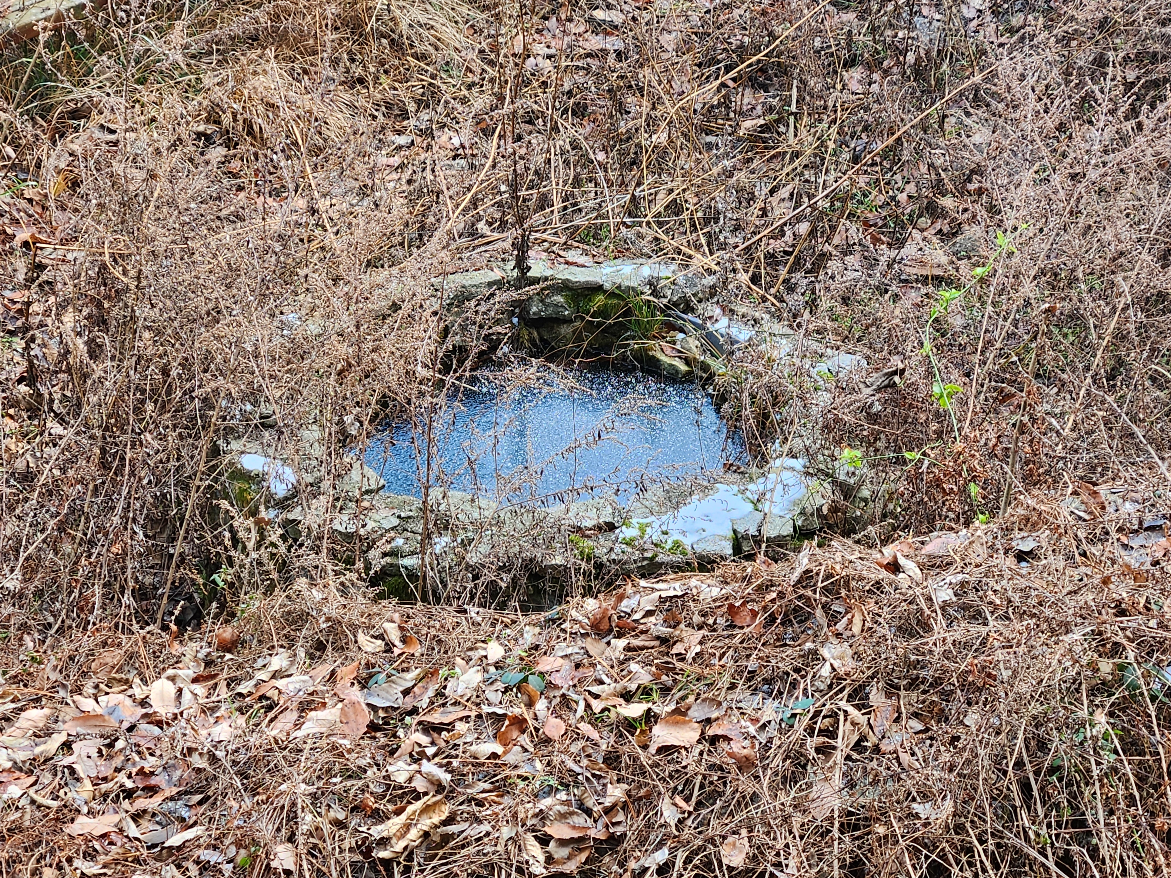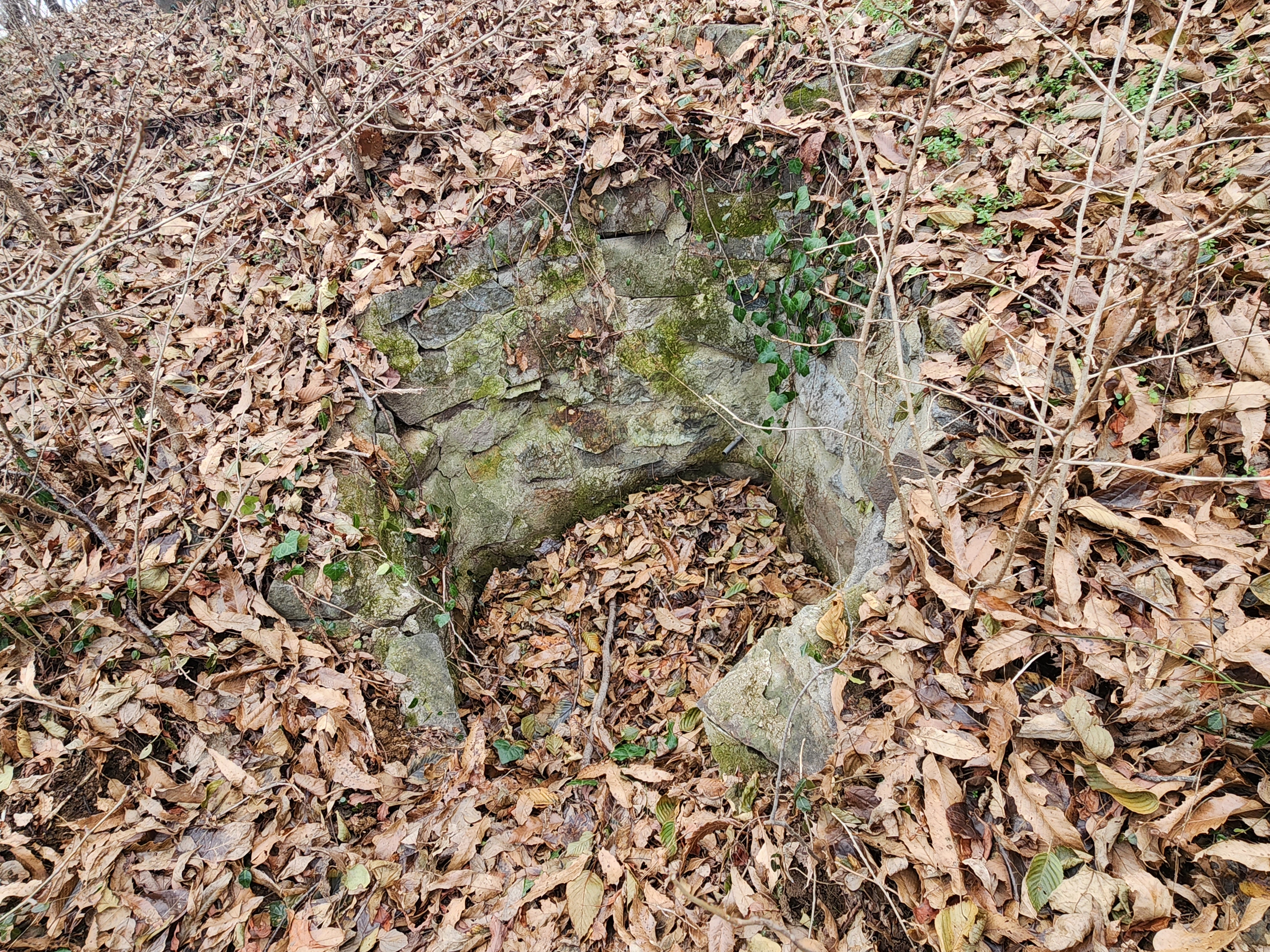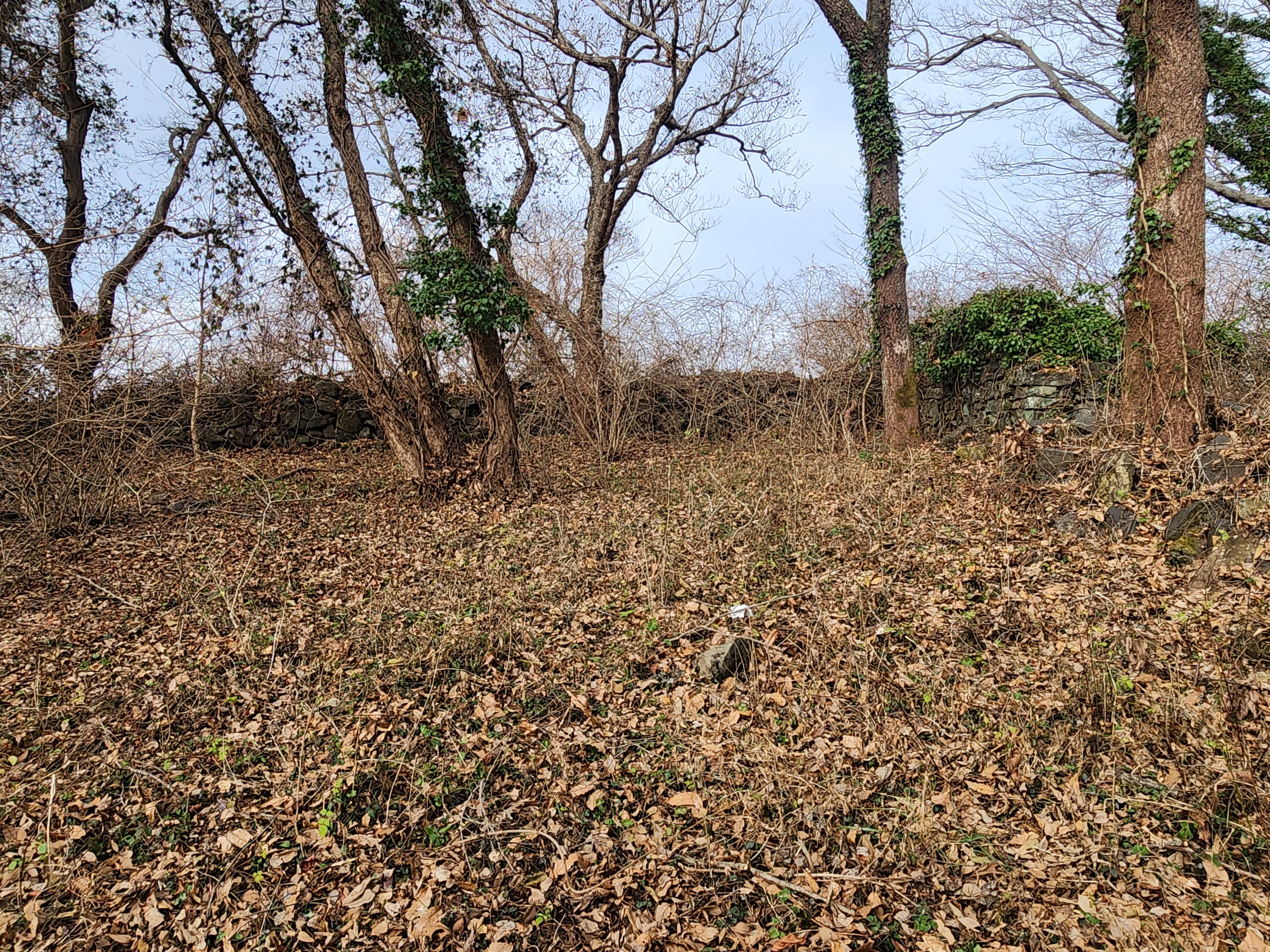 산성 안에 넝쿨이 우거져, 산성 밖에서 석축을 살피고 내려가