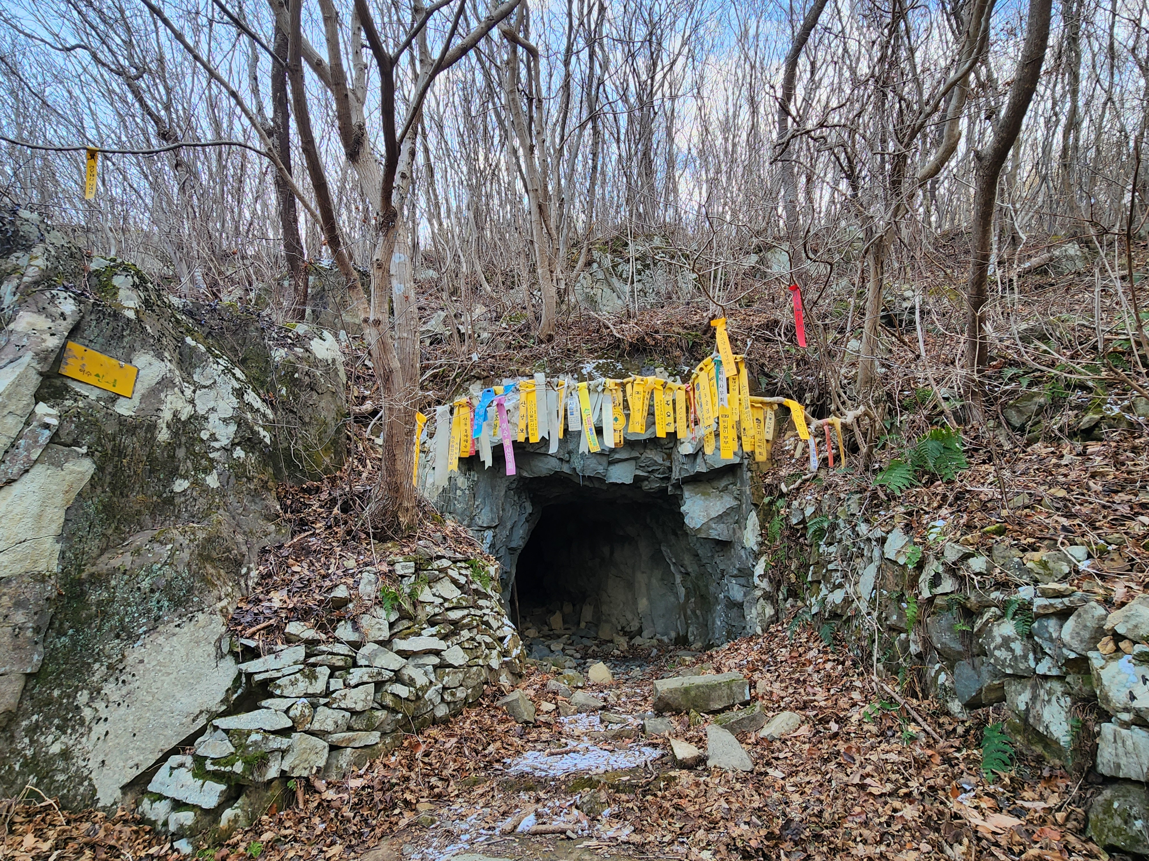 편안한 등로를 따라 고도를 높이면 동굴이 있다.