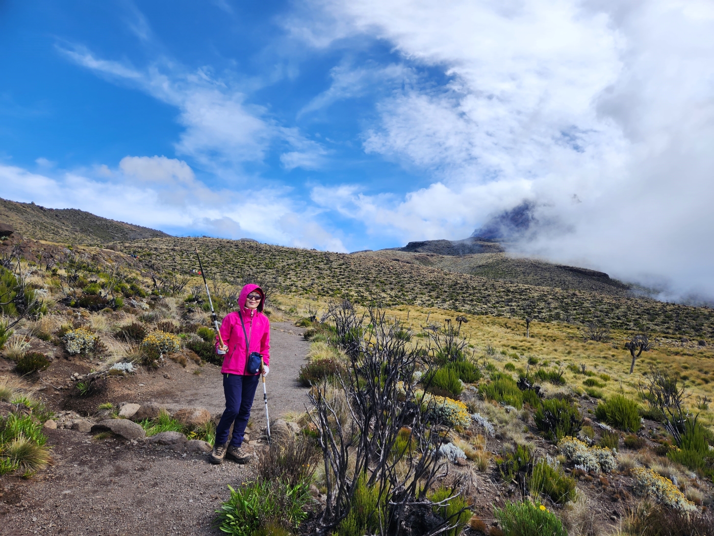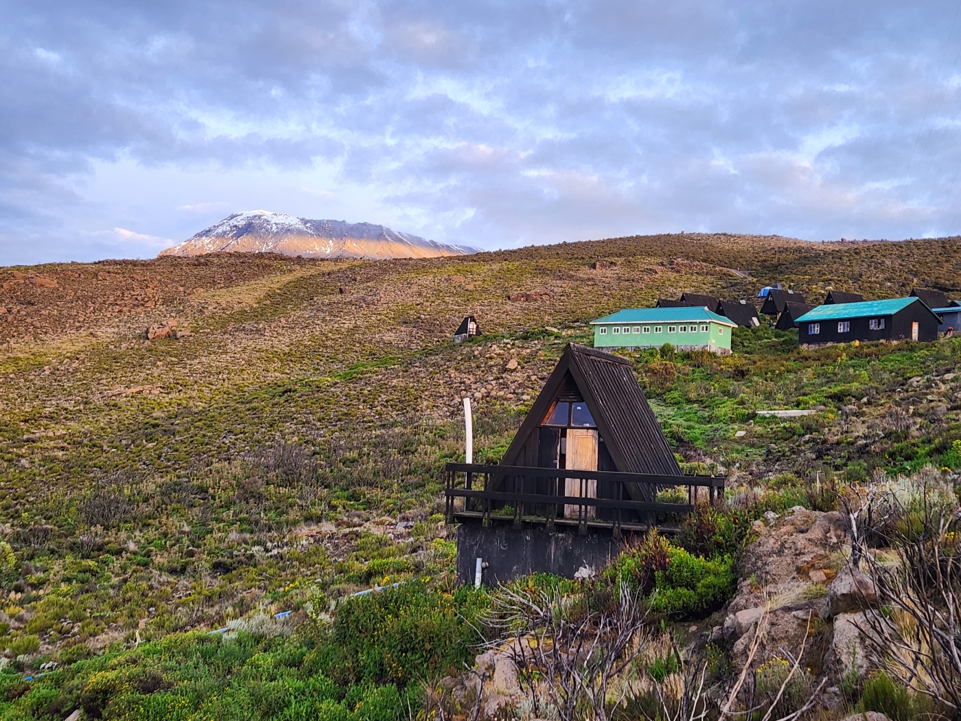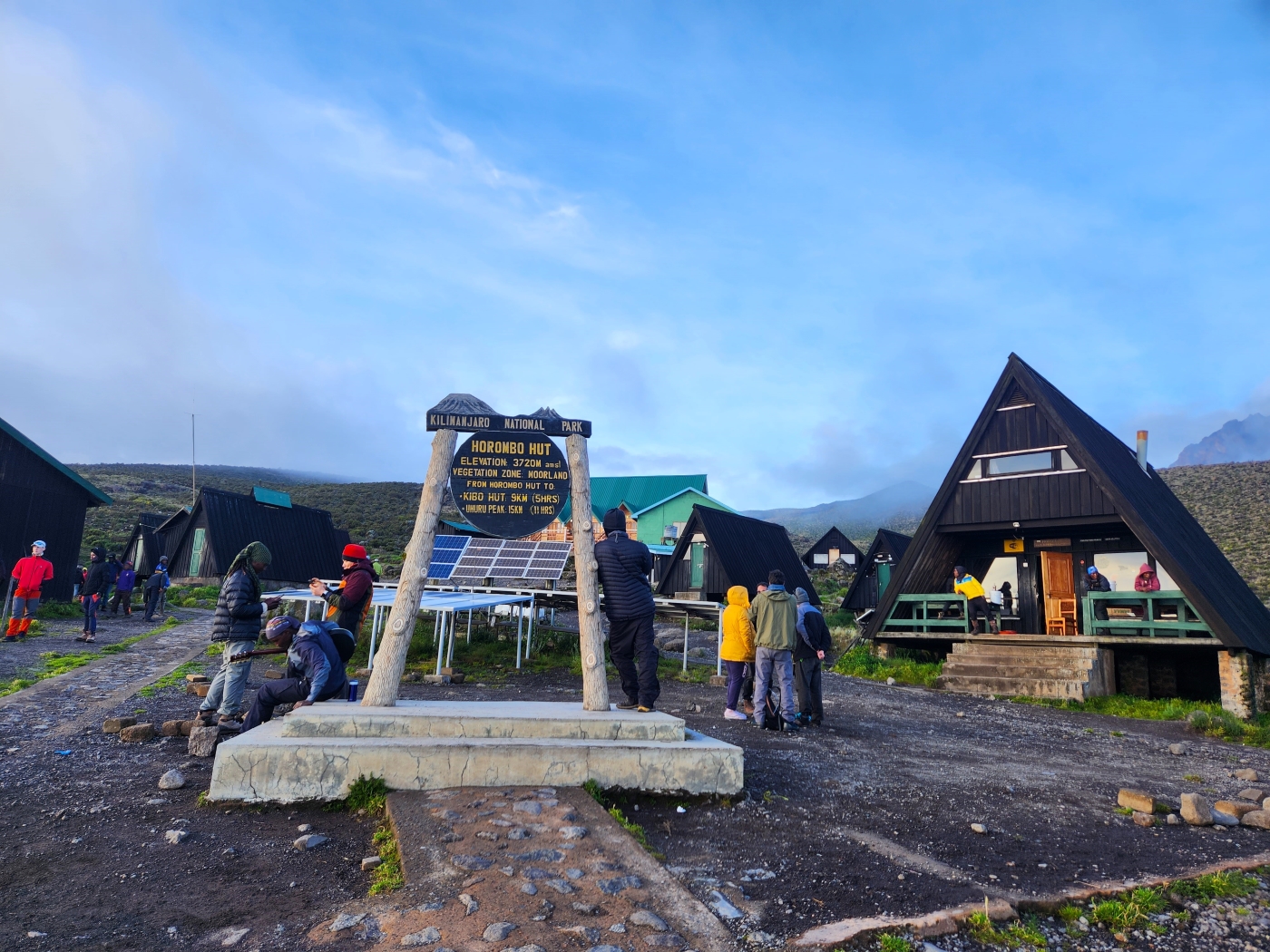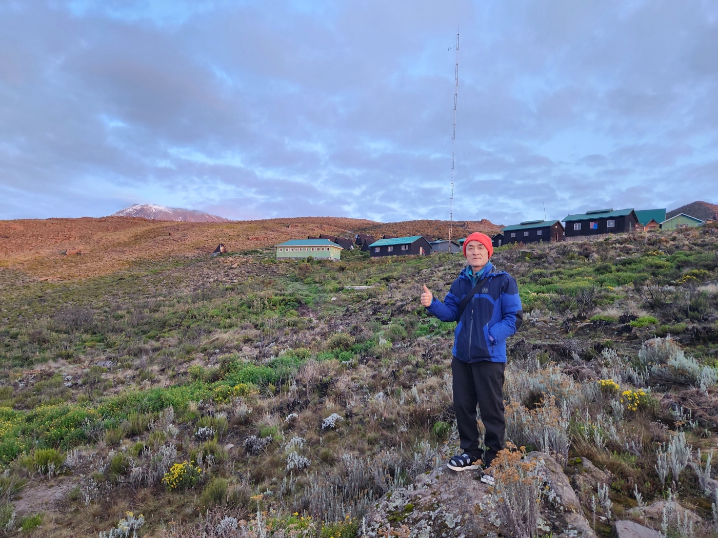 호롬보산장 이정표에서 킬리만자로를 배경으로