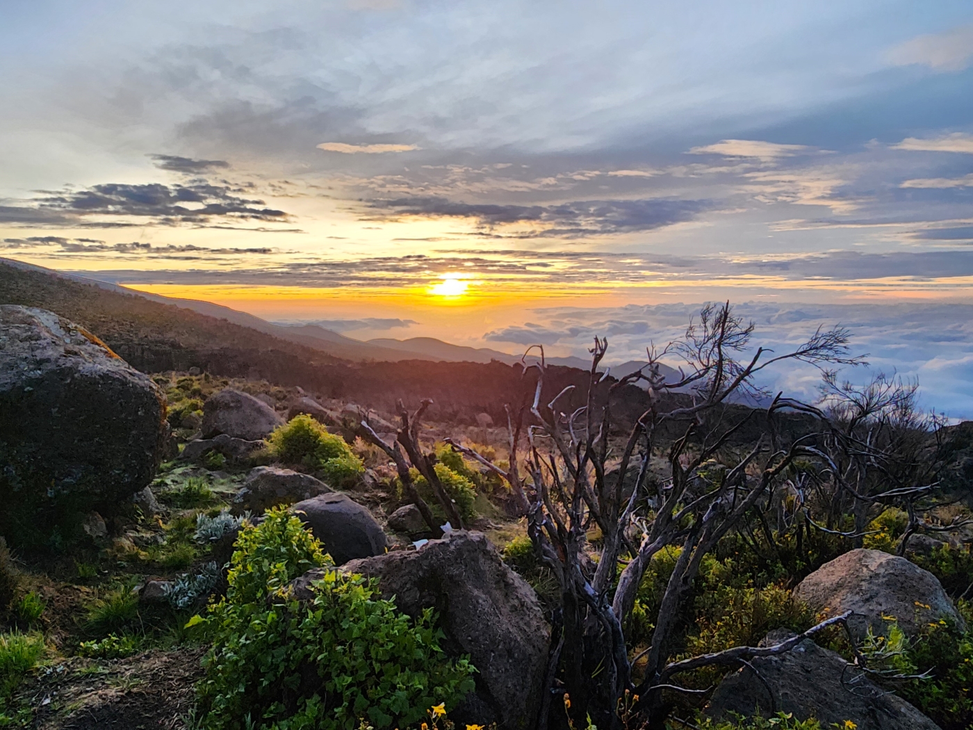 호롬보산장(3,720m)에서 잠을 설치고 일어나니 눈이부시다.^^