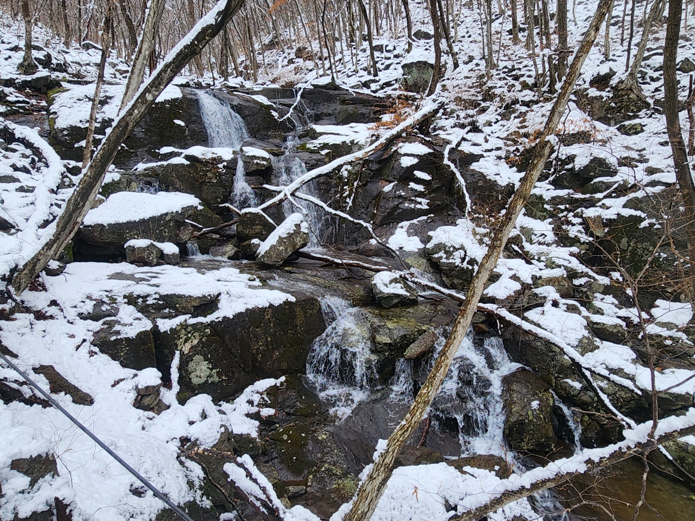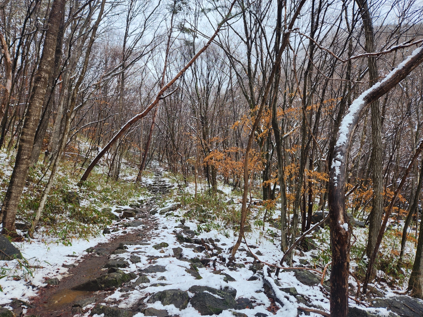 하산 길은 눈이 녹아 돌계단이 드러나 힘들다.