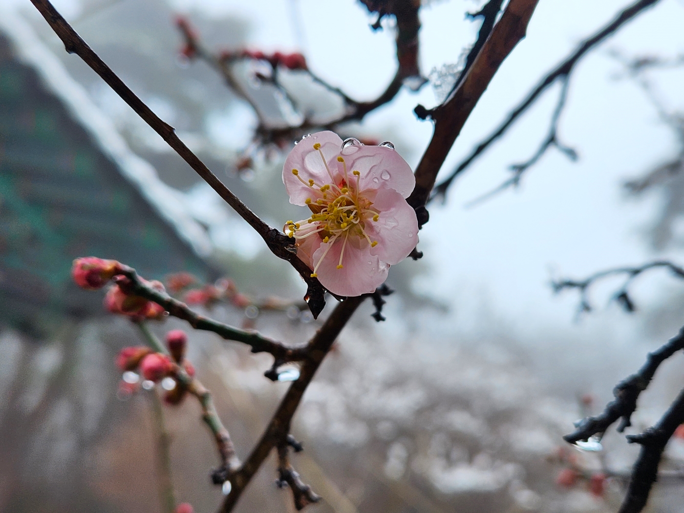 연기암 '설중매' 는 가지 끝에 보이고, 아래는 눈이 녹아 아쉽다. ㅎ