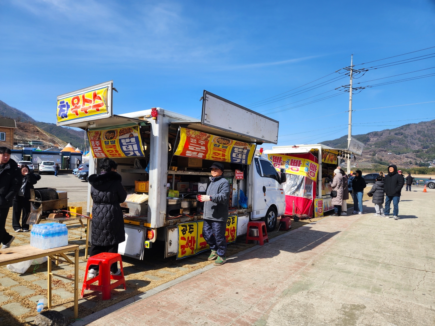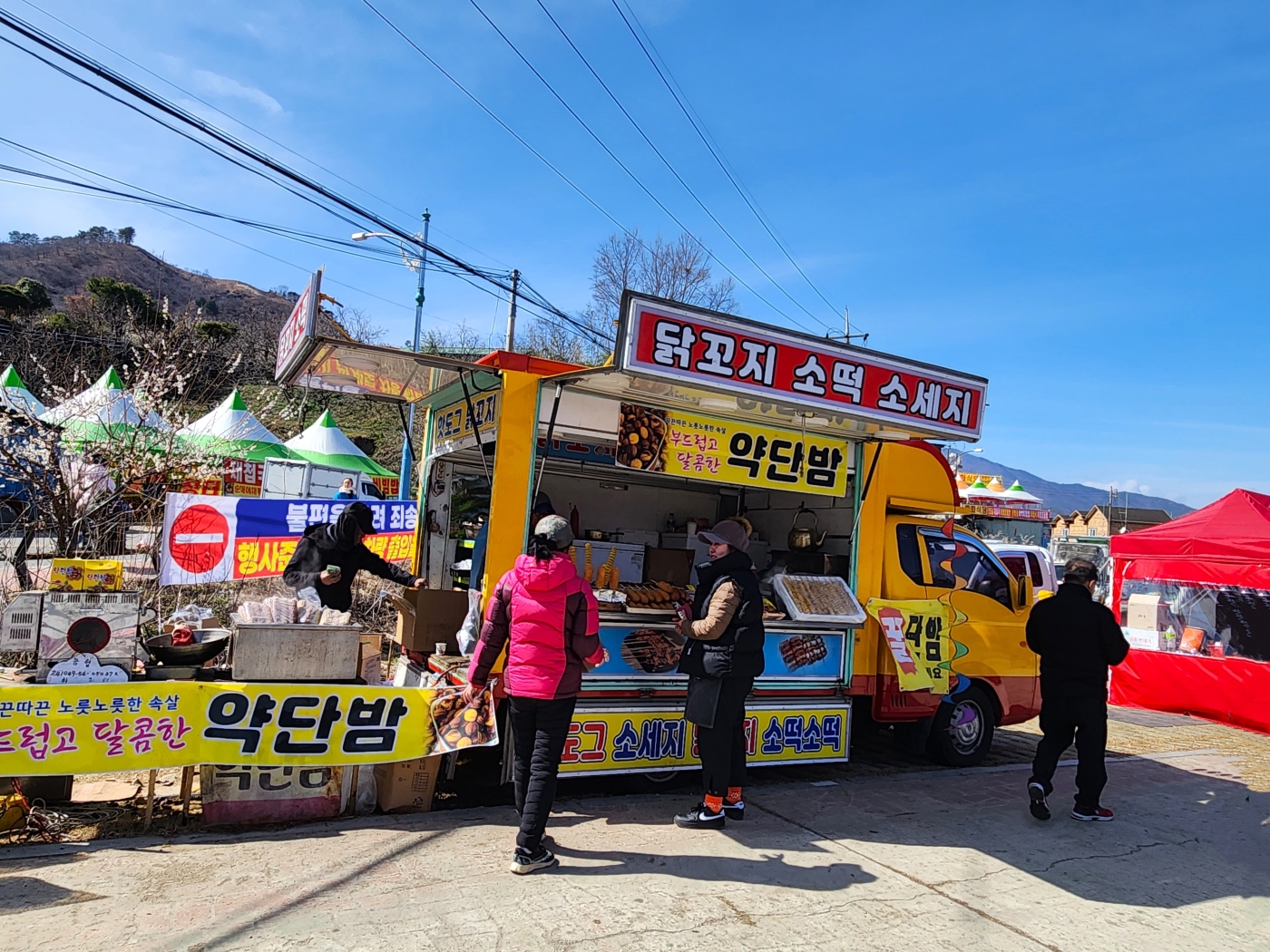 올해부터 축제기간에 매화마을 입장료를 받아 지역상품권으로 환급해 줘 푸드트럭 엄청 많다.