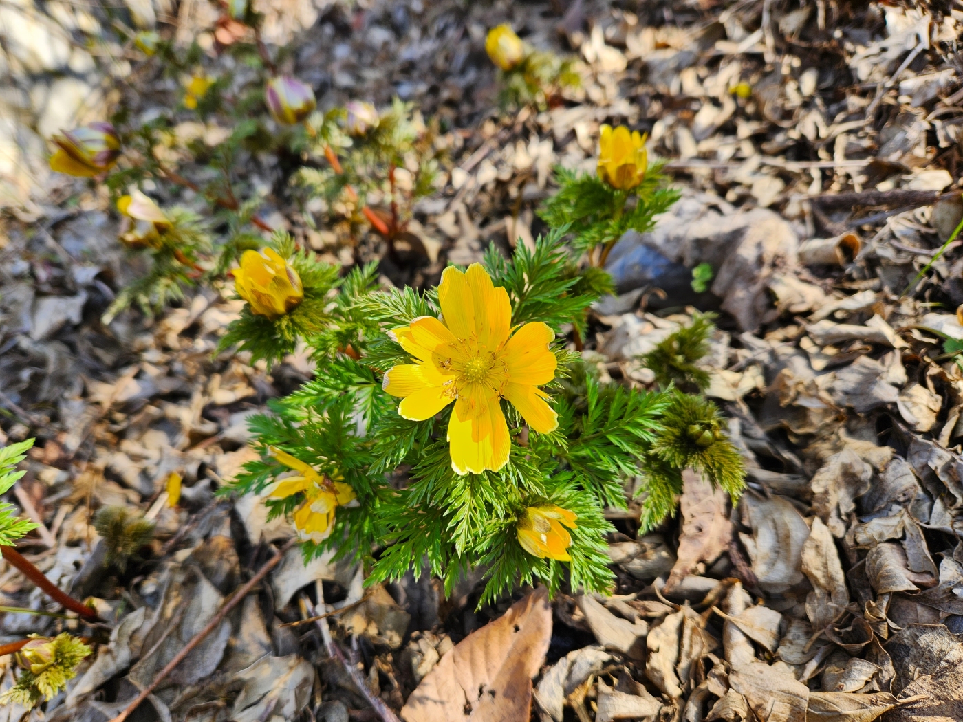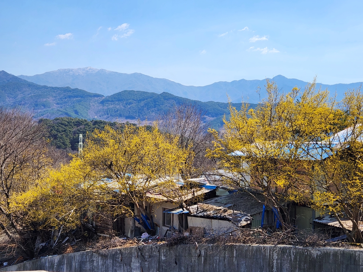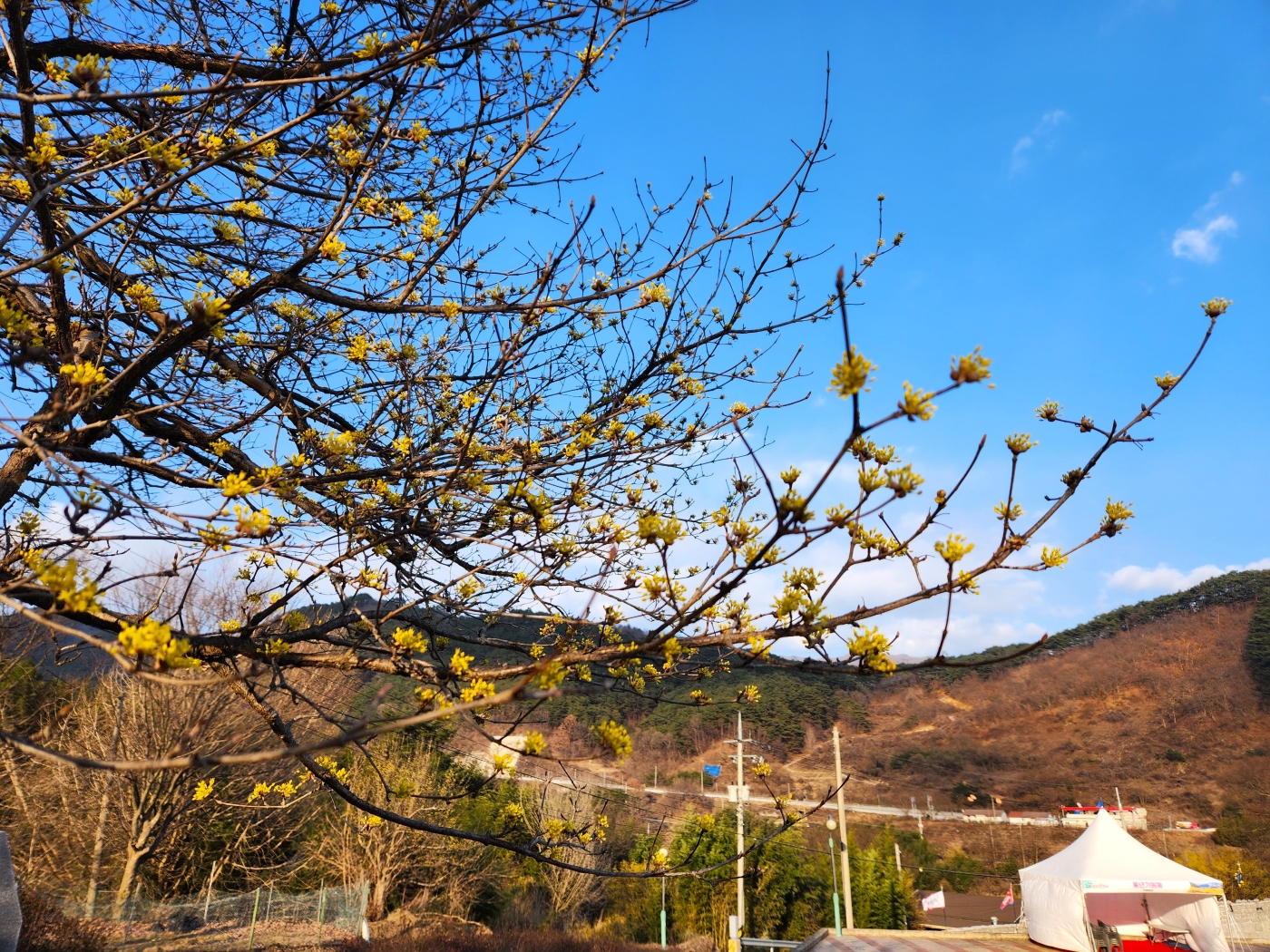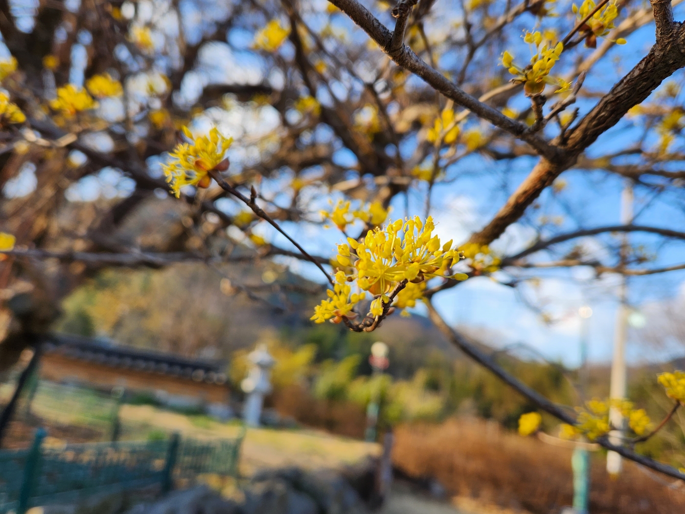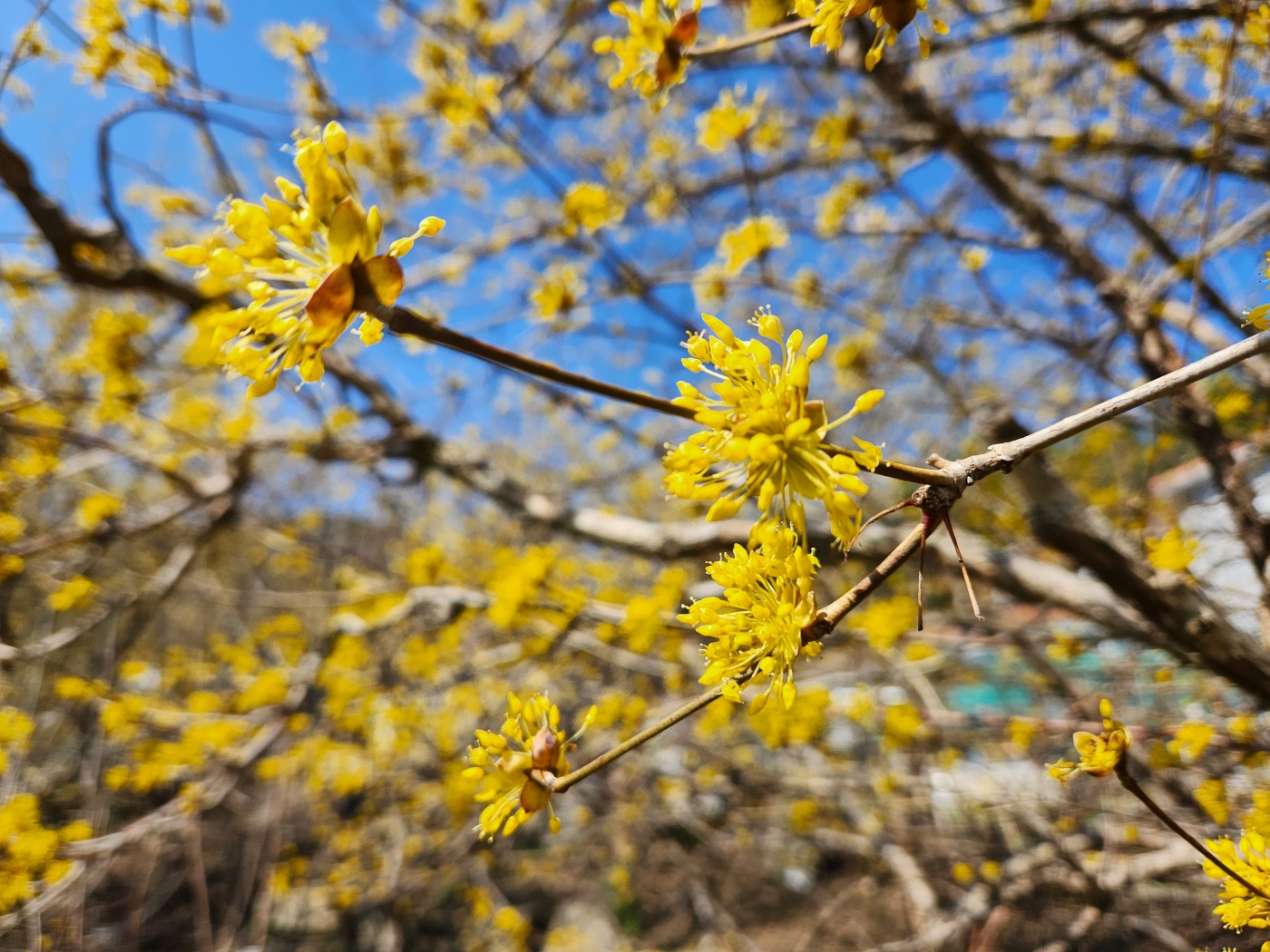 계척 주변 작은 산수유들은 피었고, 산수유 시목은 이제 피기 시작합니다.