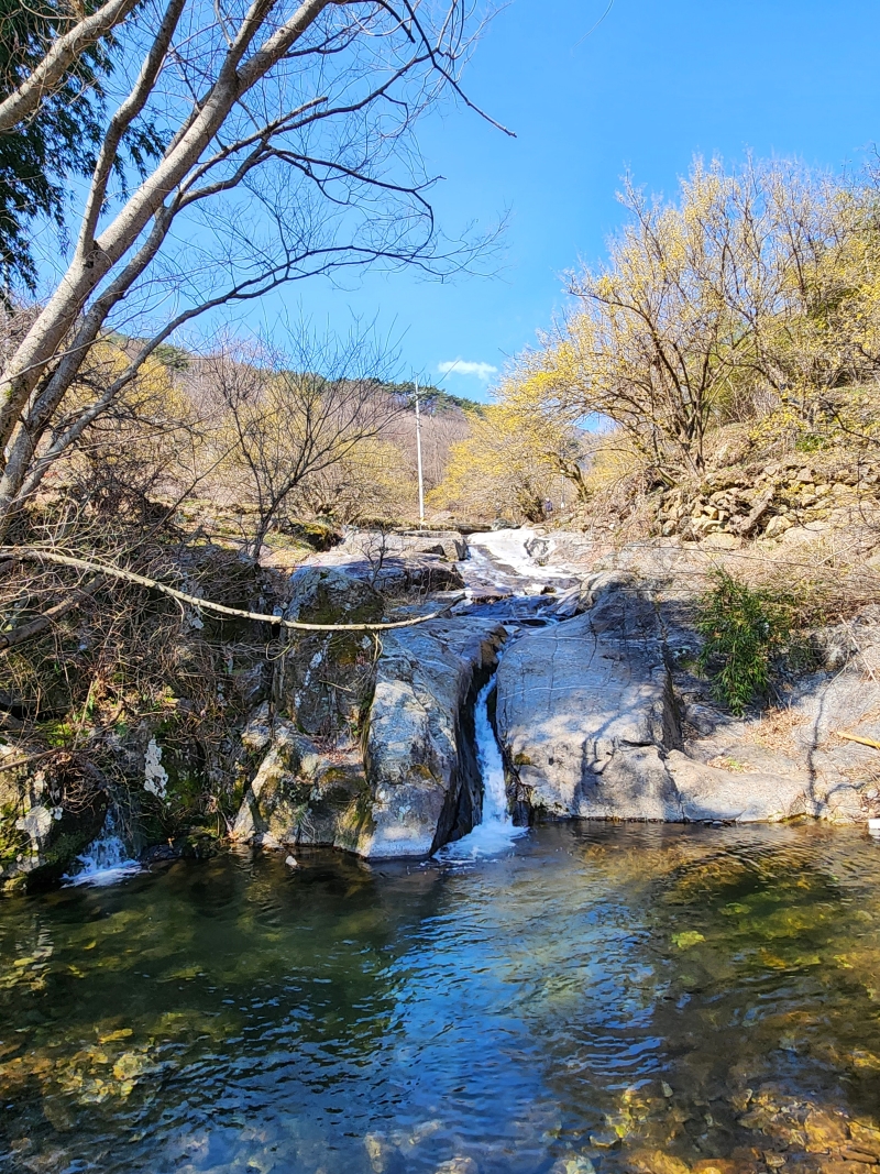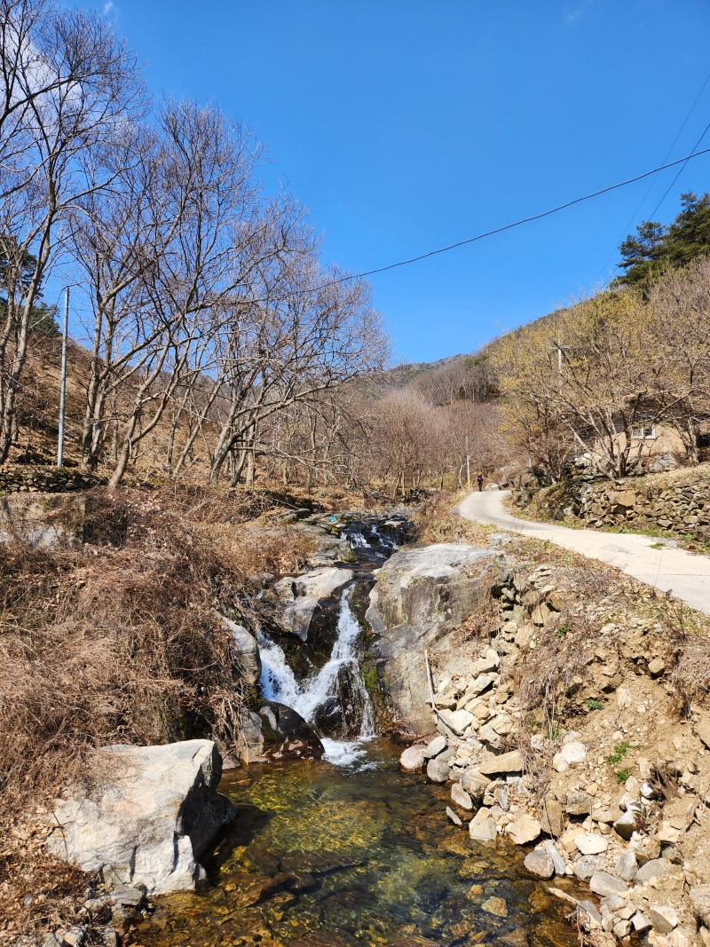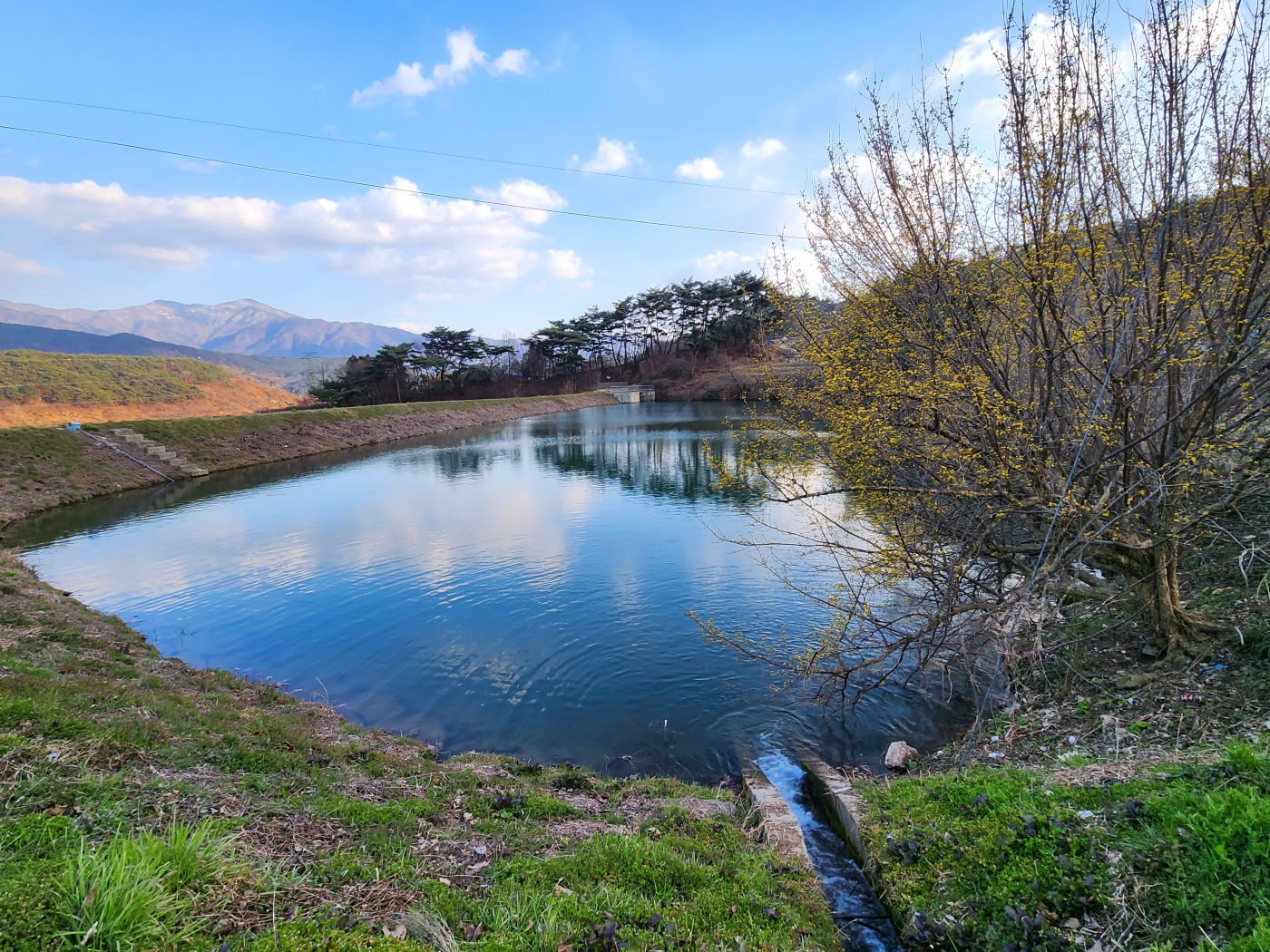 저수지로 흘러드는 물길을 따라가 소폭 아래