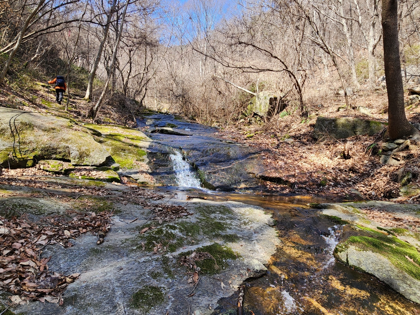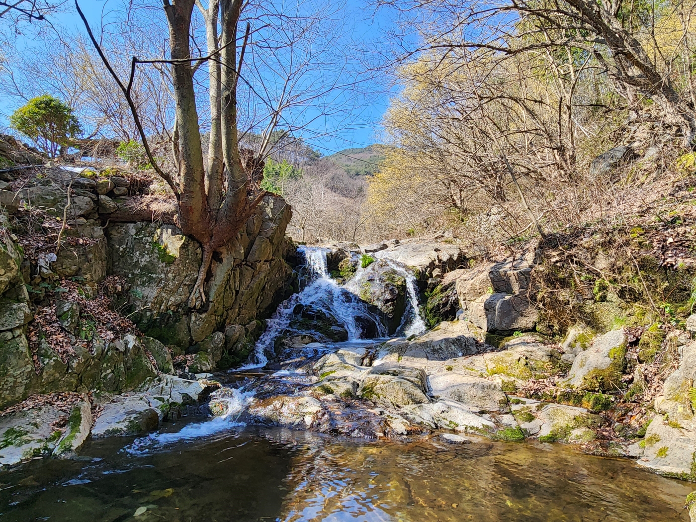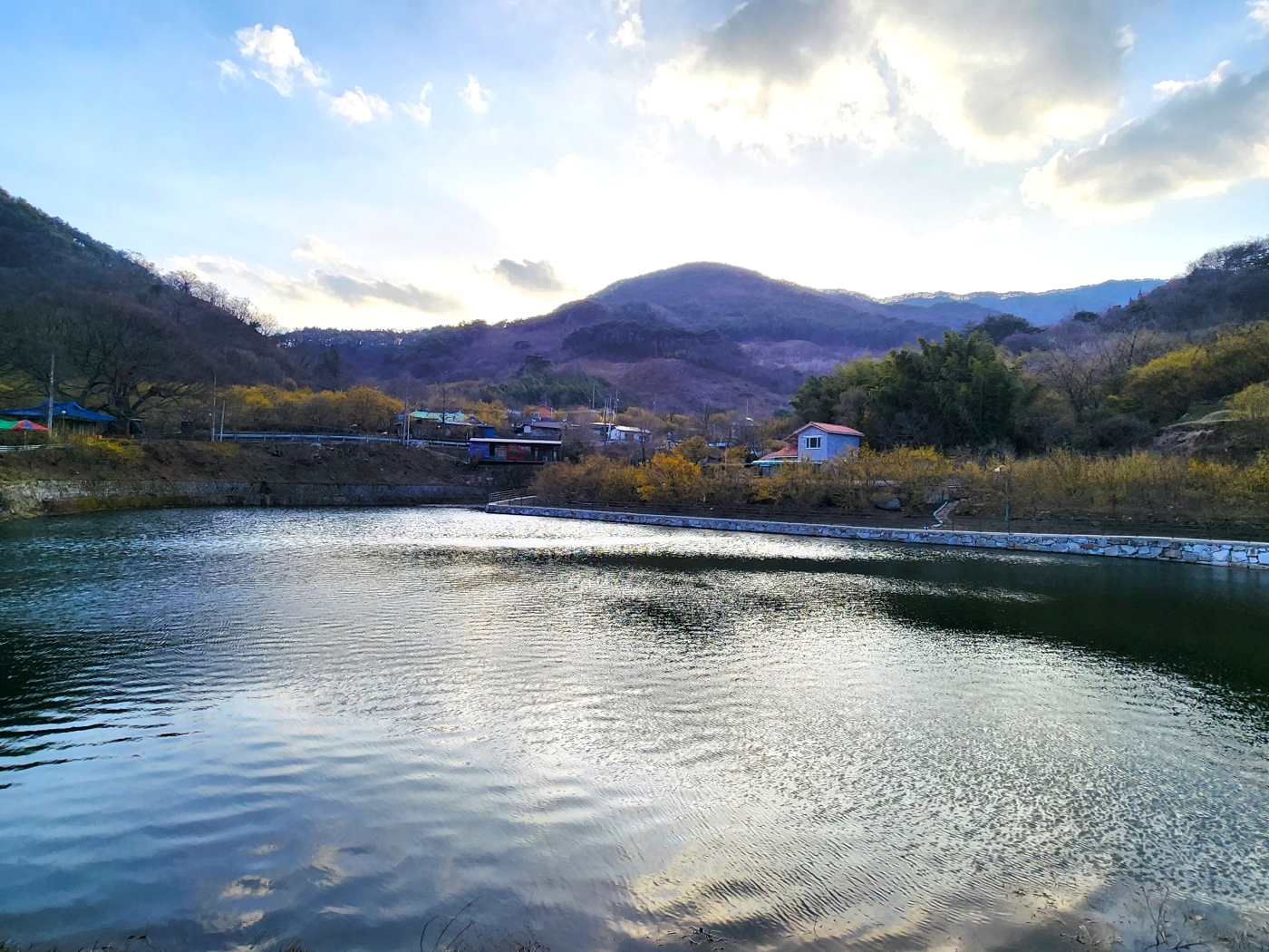 저수지로 흘러드는 물길을 따라가 소폭 아래