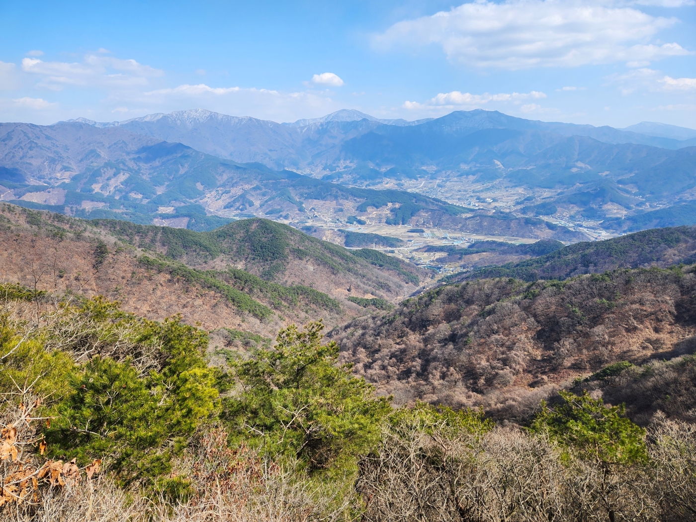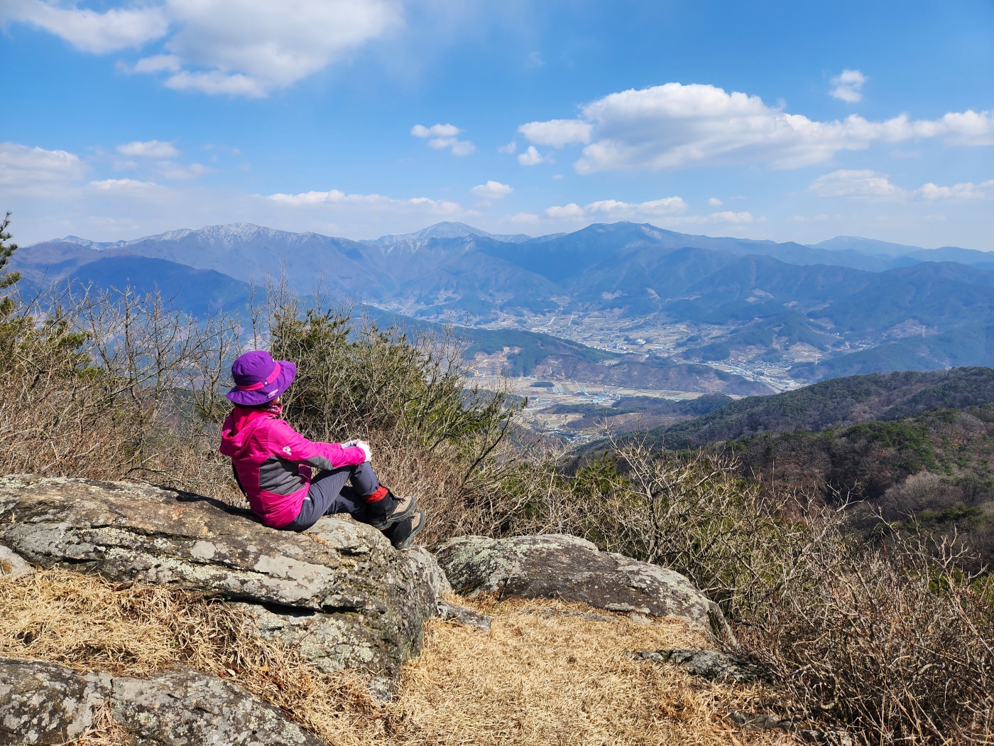 능선에 강풍이 불어도, 바람 없고 따뜻한 자리에서 지리산을 바라보며 점심을 먹는다.