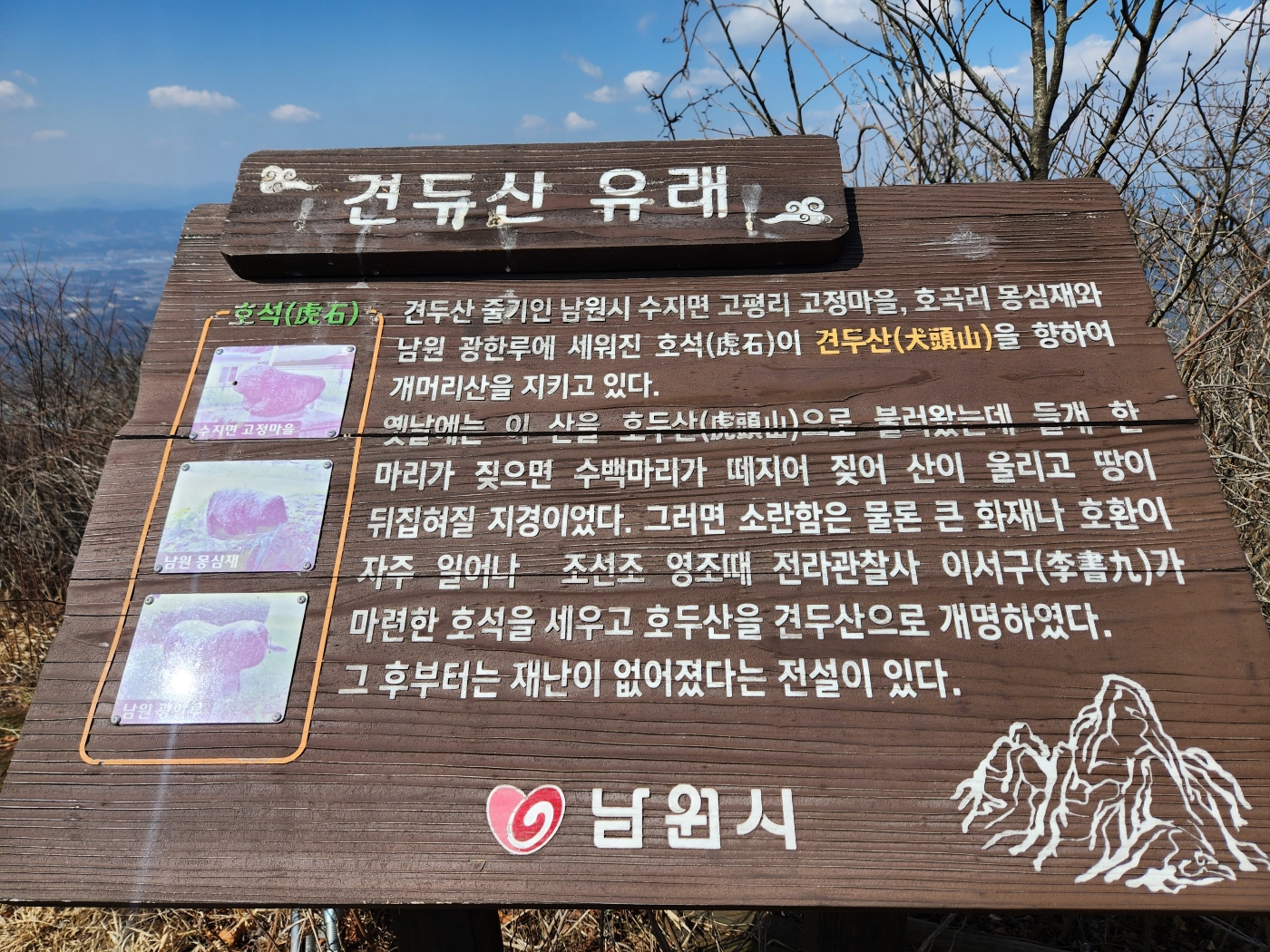 견두산 정상석과 지리산 서북능선 만복대~반야봉~노고단~왕시루봉