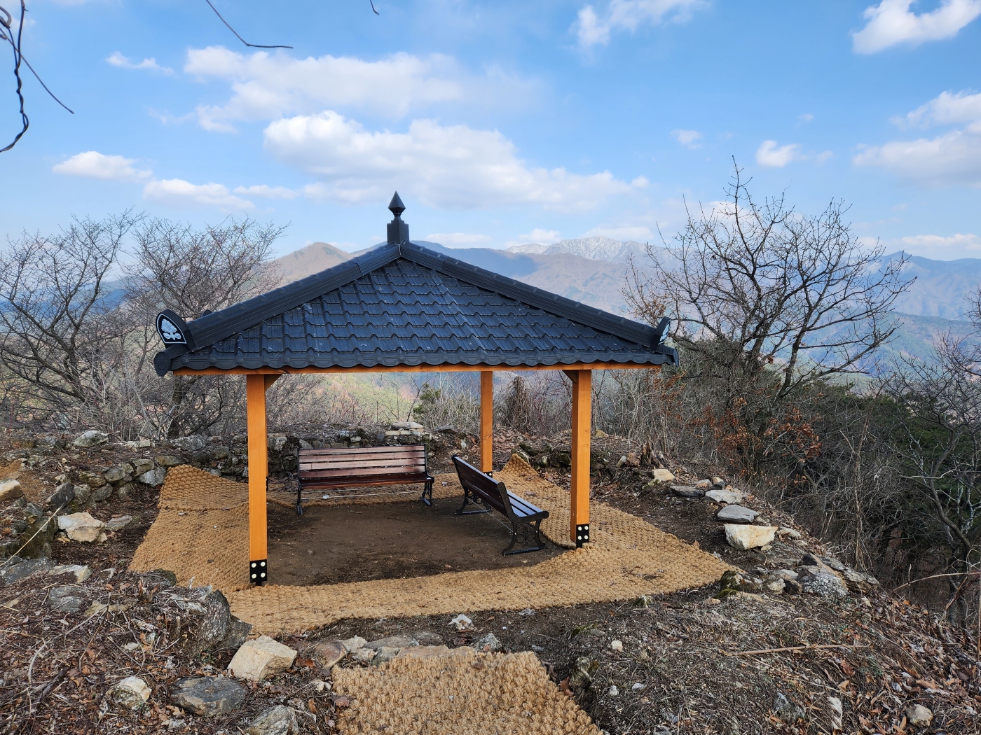 자귀나무 쉼터에서 지리산 바라보며 쉬어간다.