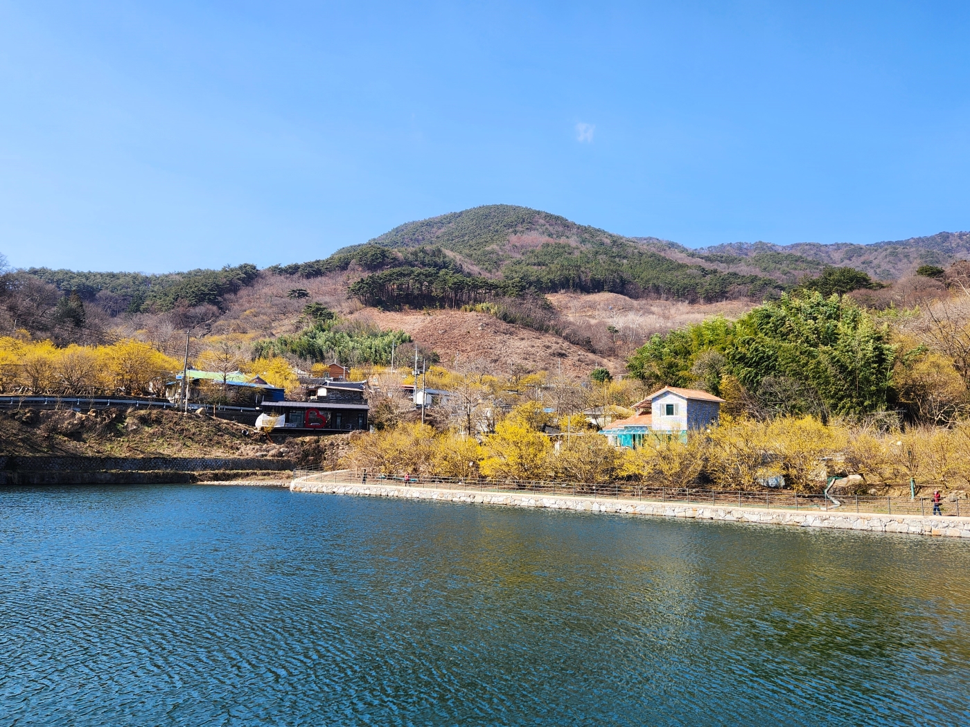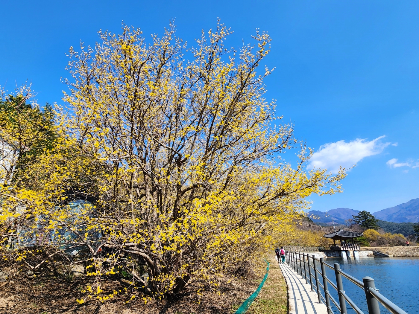 * 현천 산수유는 제법 노랗게 피었으나 강풍으로 저수지 반영이 없어 아쉽습니다.