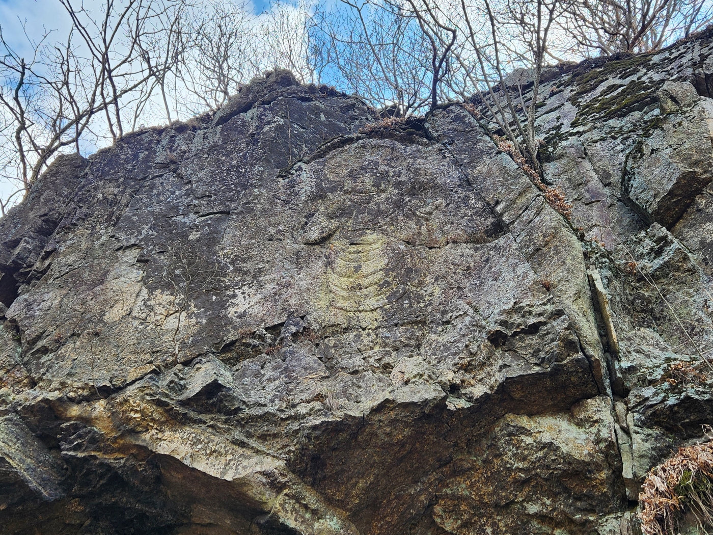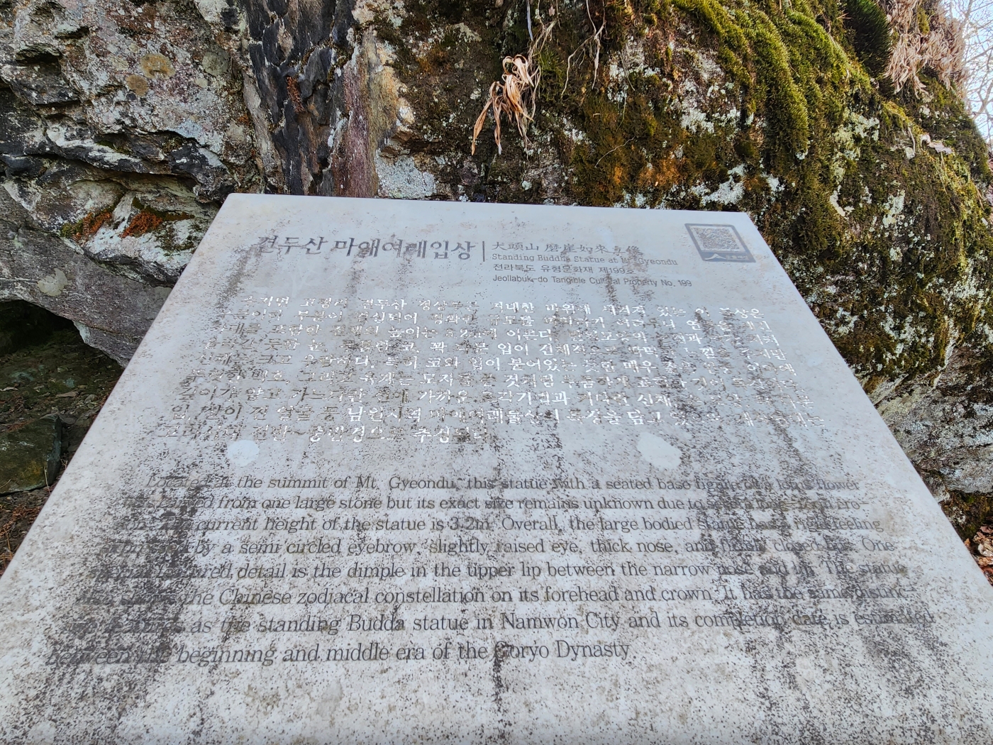 마애불상에서 나와, 방한 장갑을 끼고 모자를 쓰고 올라갈 바위구간 바라본다.