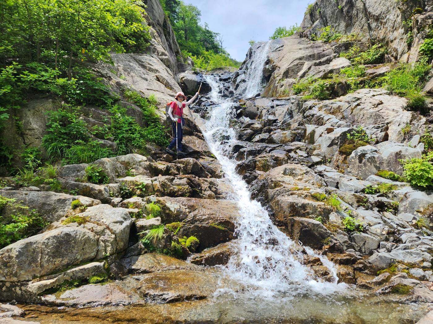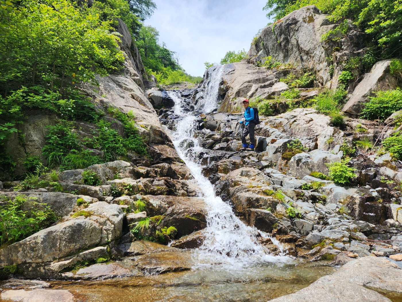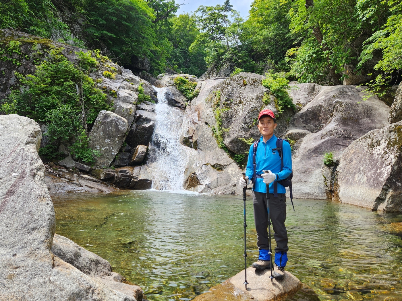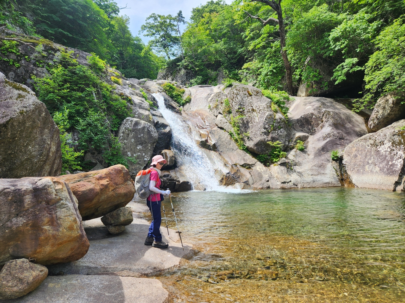 조개골 폭포 너럭바위에서