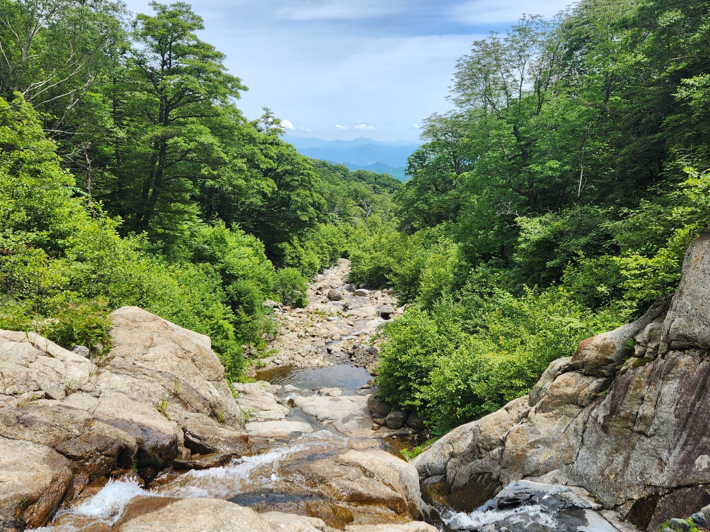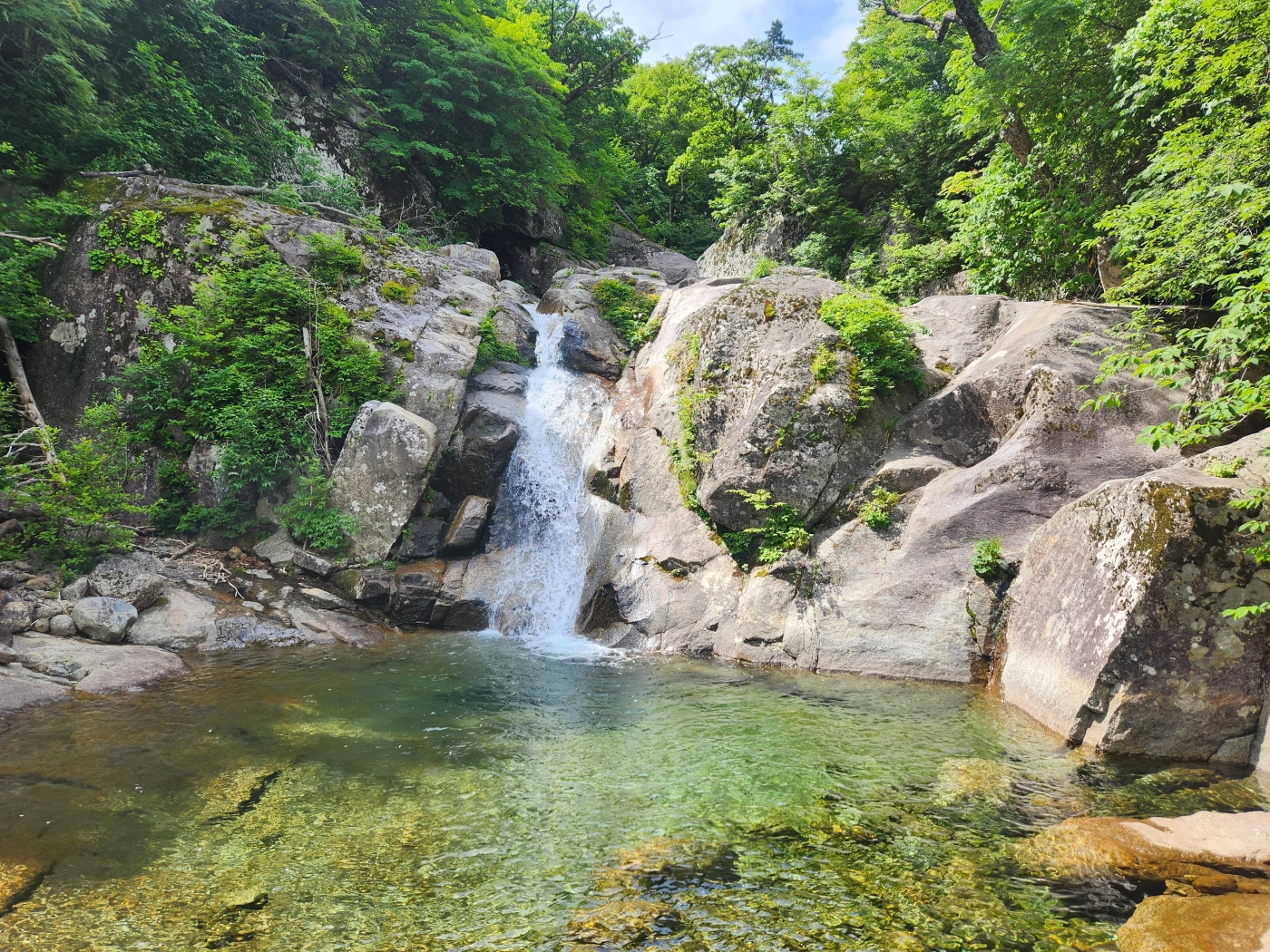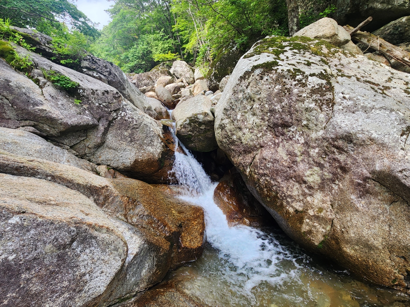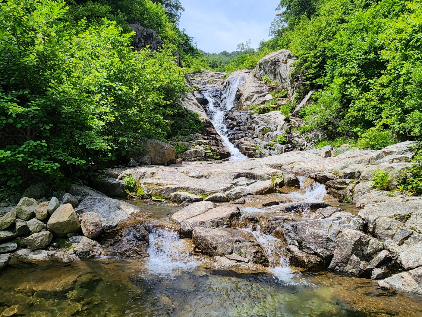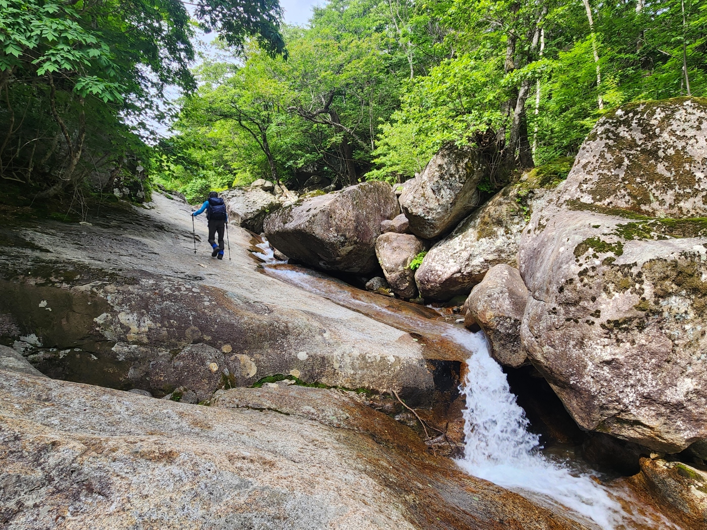 조개골 폭포 너럭바위에서