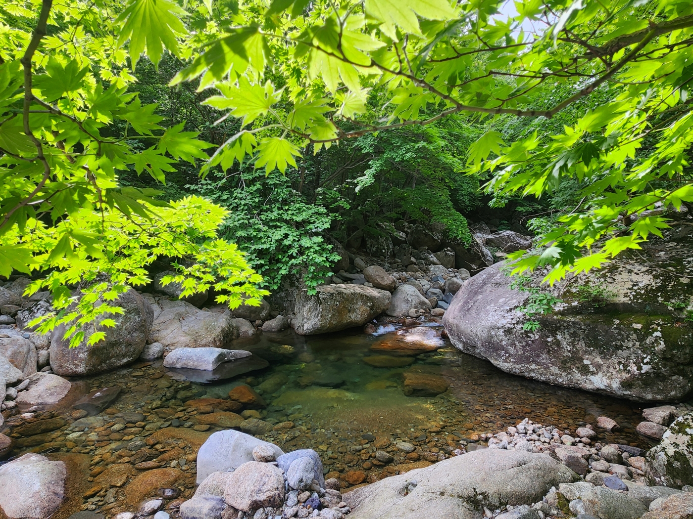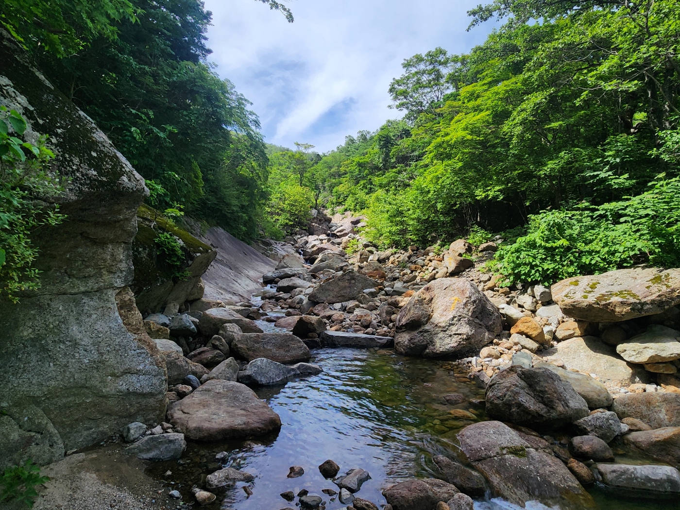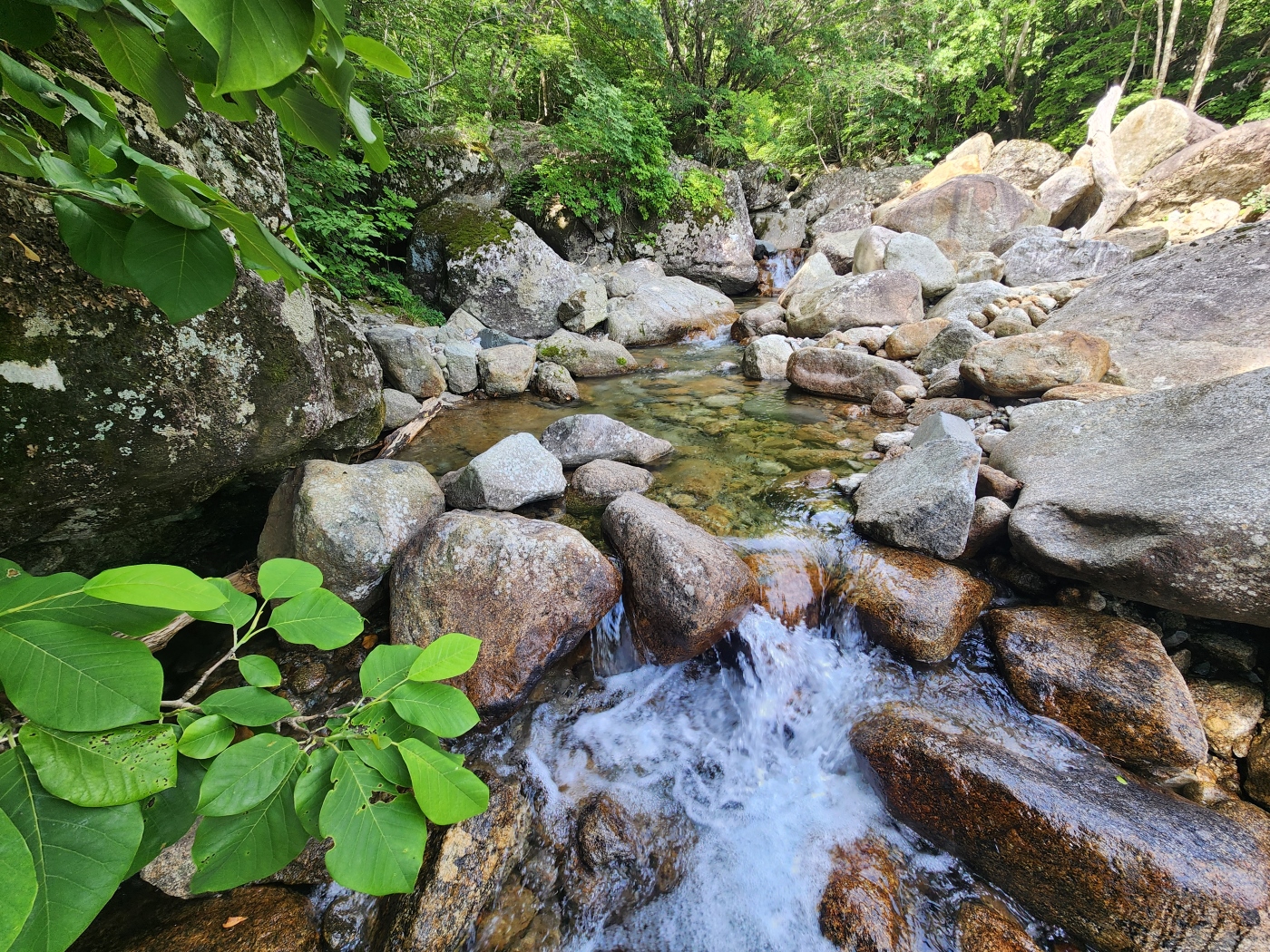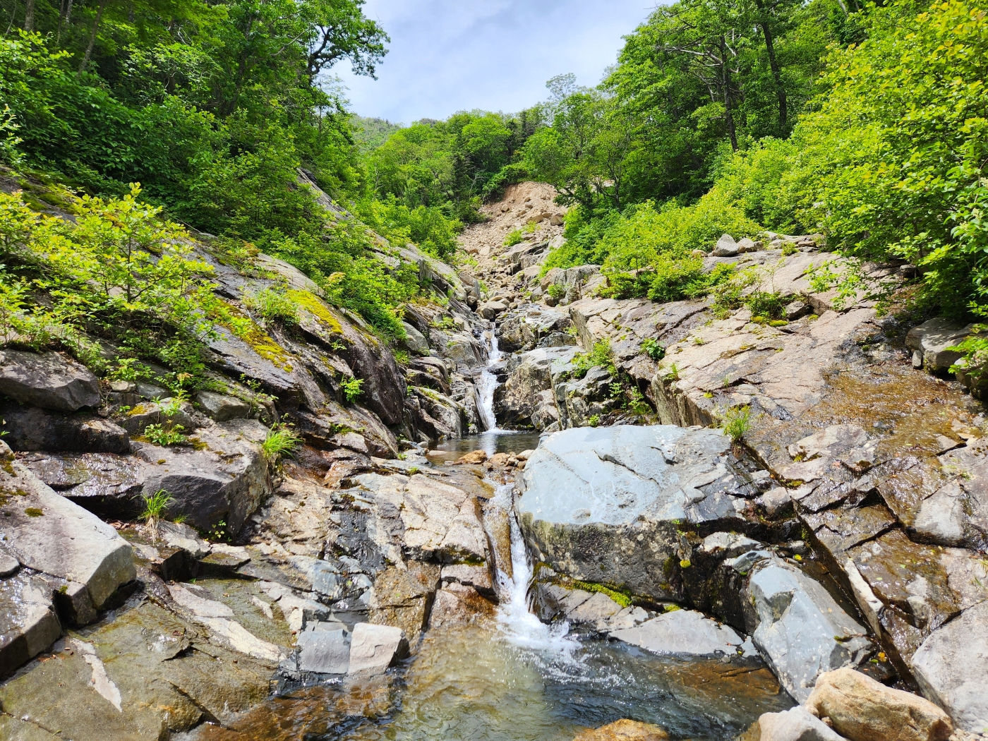 조개골 폭포 너럭바위에서