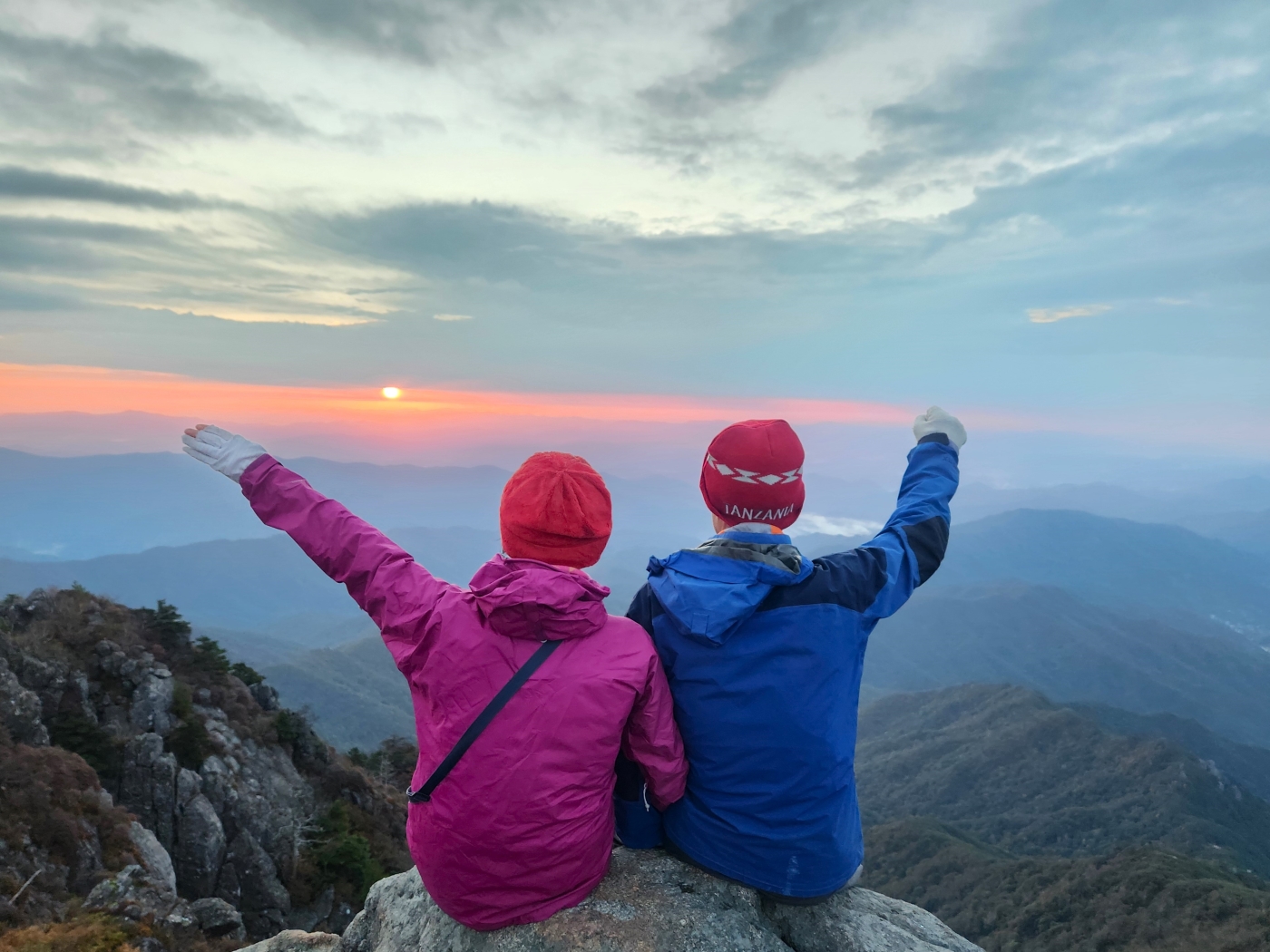 여기까지 잘 왔으니, 힘을 내보자며 돌아앉아 화이팅!!을 외치고