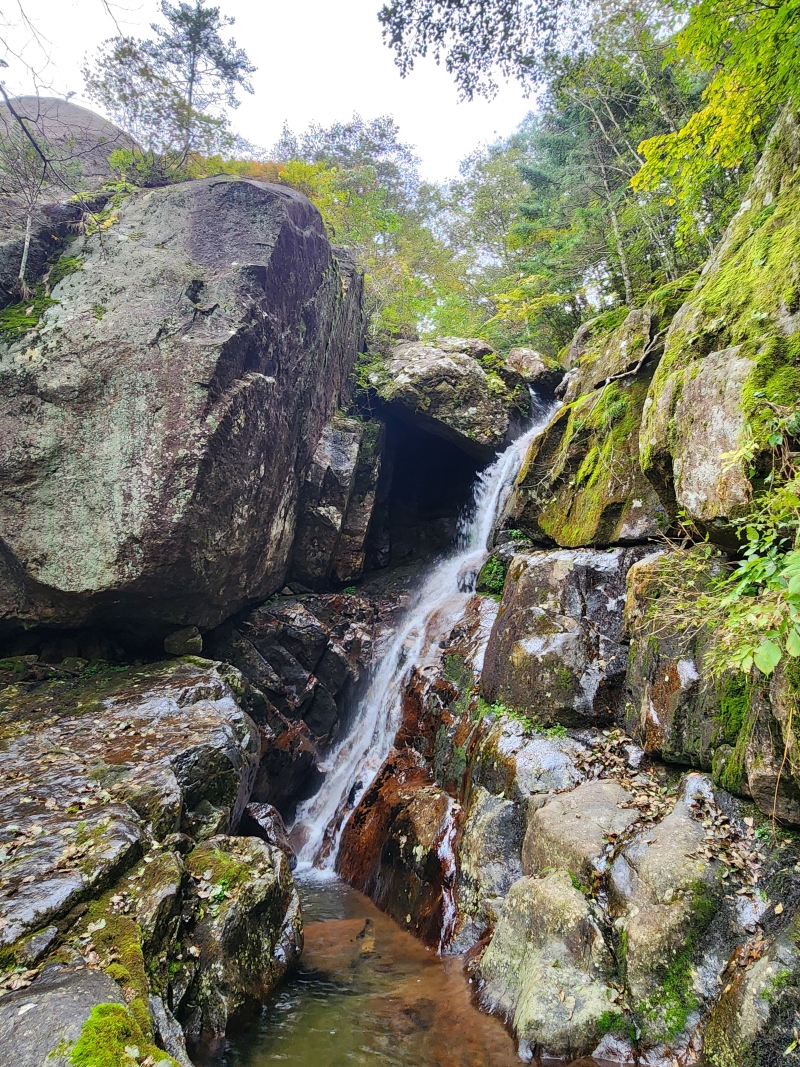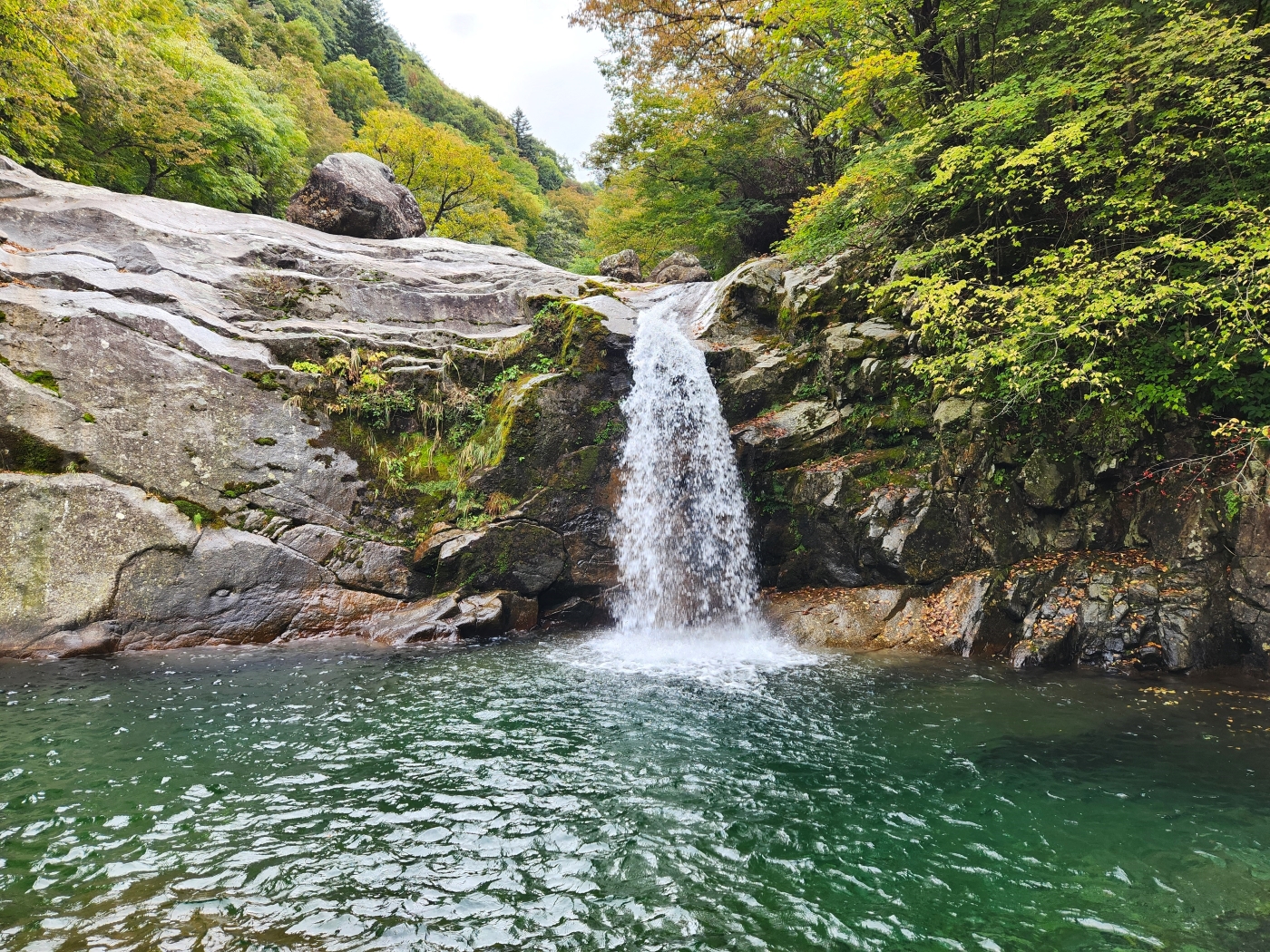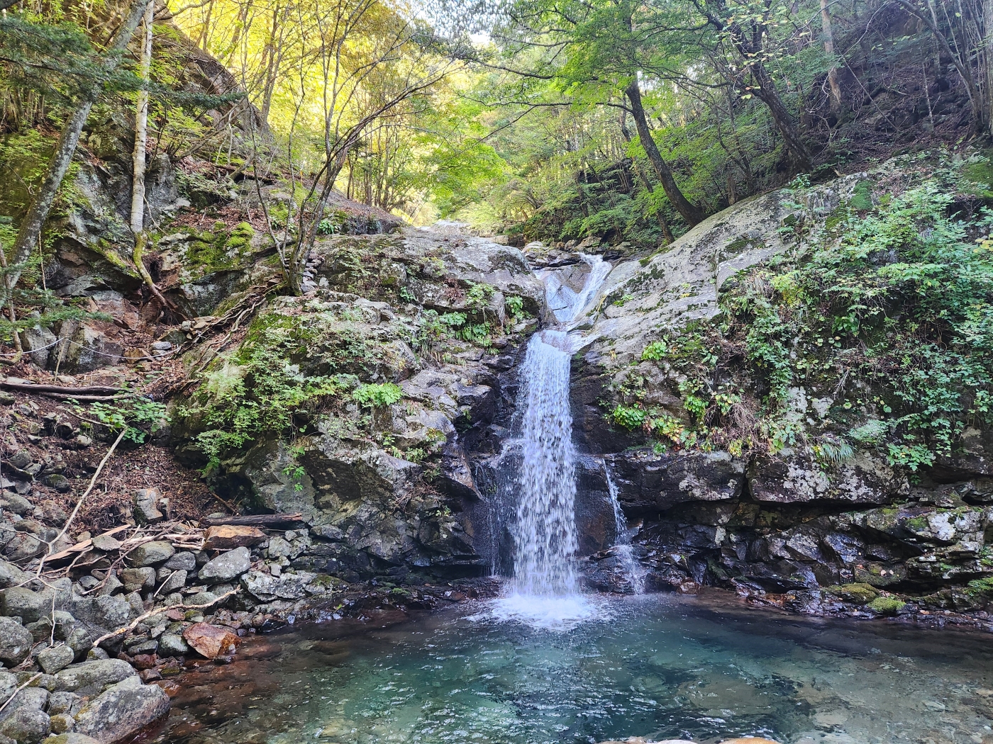옛길은 오른쪽으로 멀어지지만 계곡을 따라 오르면 휘도는 지점에 폭포가 반긴다.
