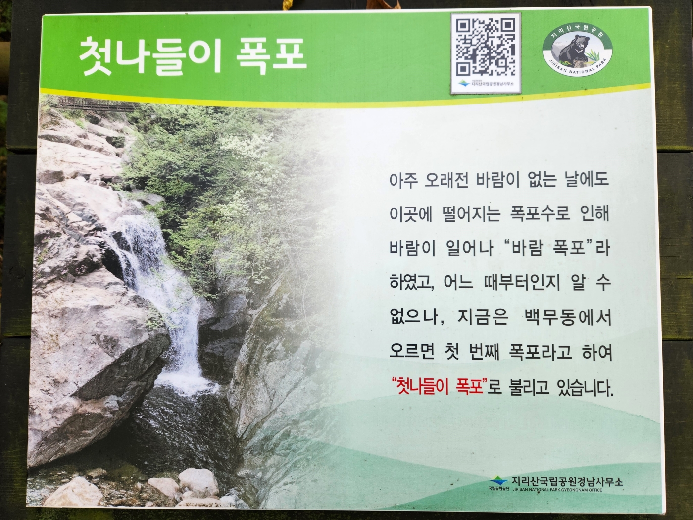 전망대에서 본 첫나들이 폭포는 아쉽다. 폭포아래쪽에 전망대가 있어야 하는데~~