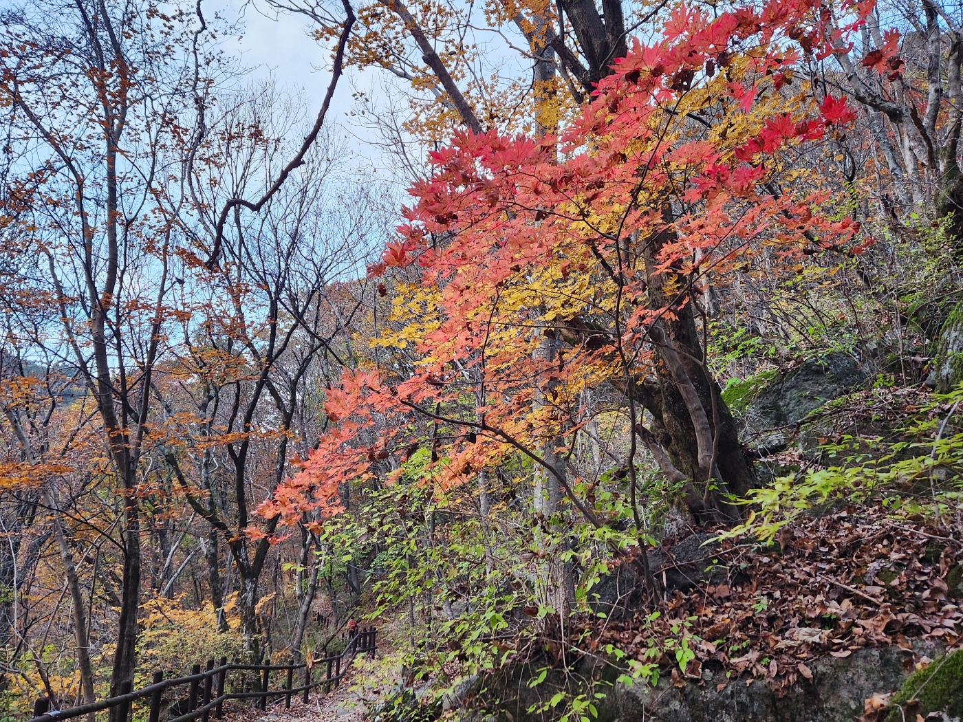 경사 심하게 올라서니 마지막 단풍이 반긴다.