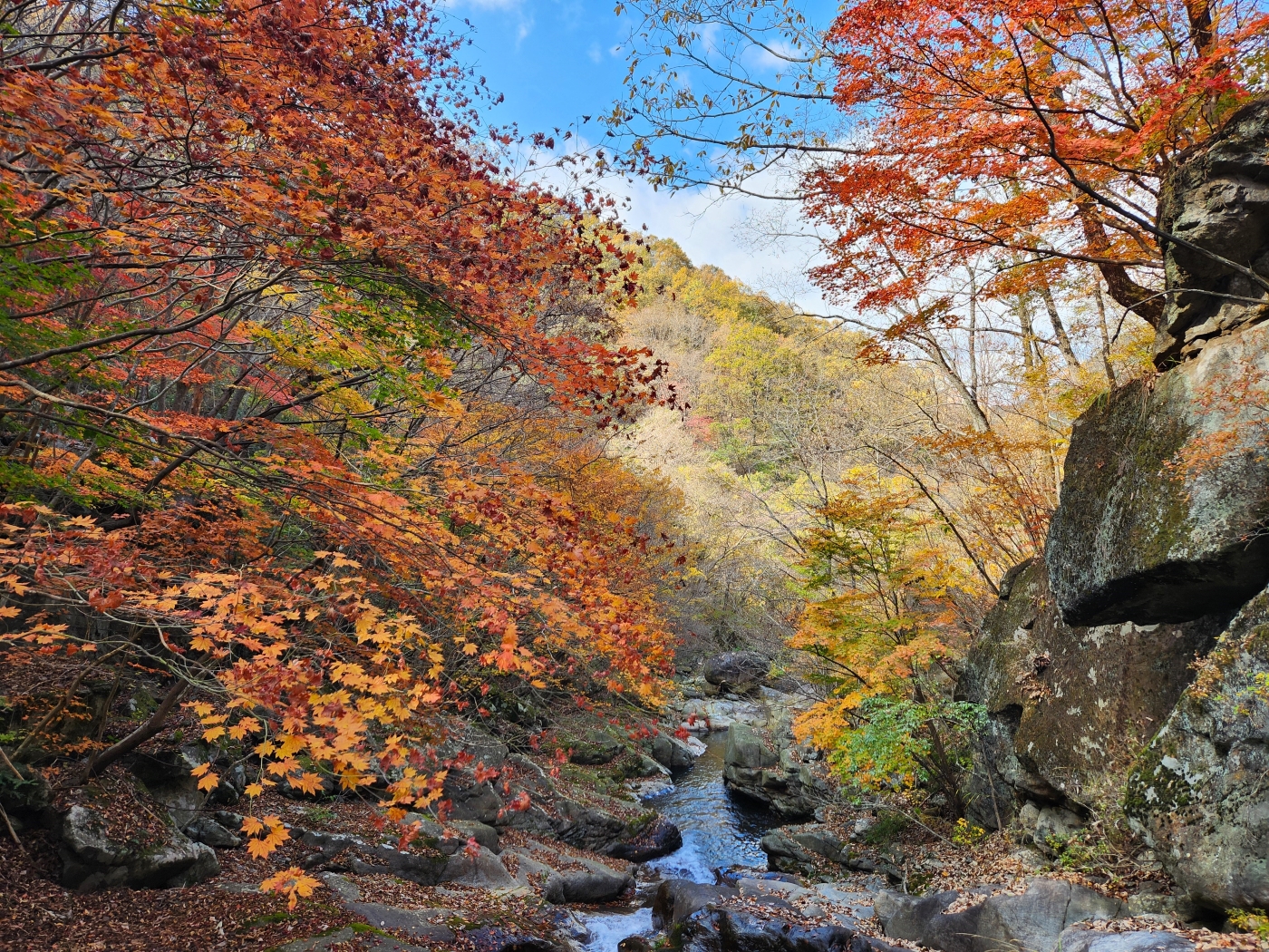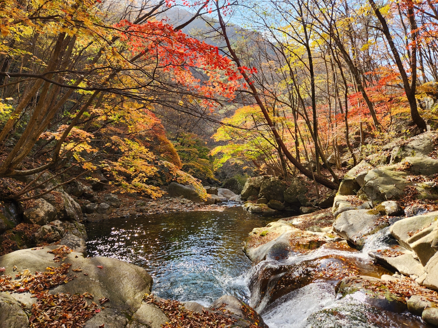단풍도 계곡도 깔끔하고, 잘 어울려 멋지다.