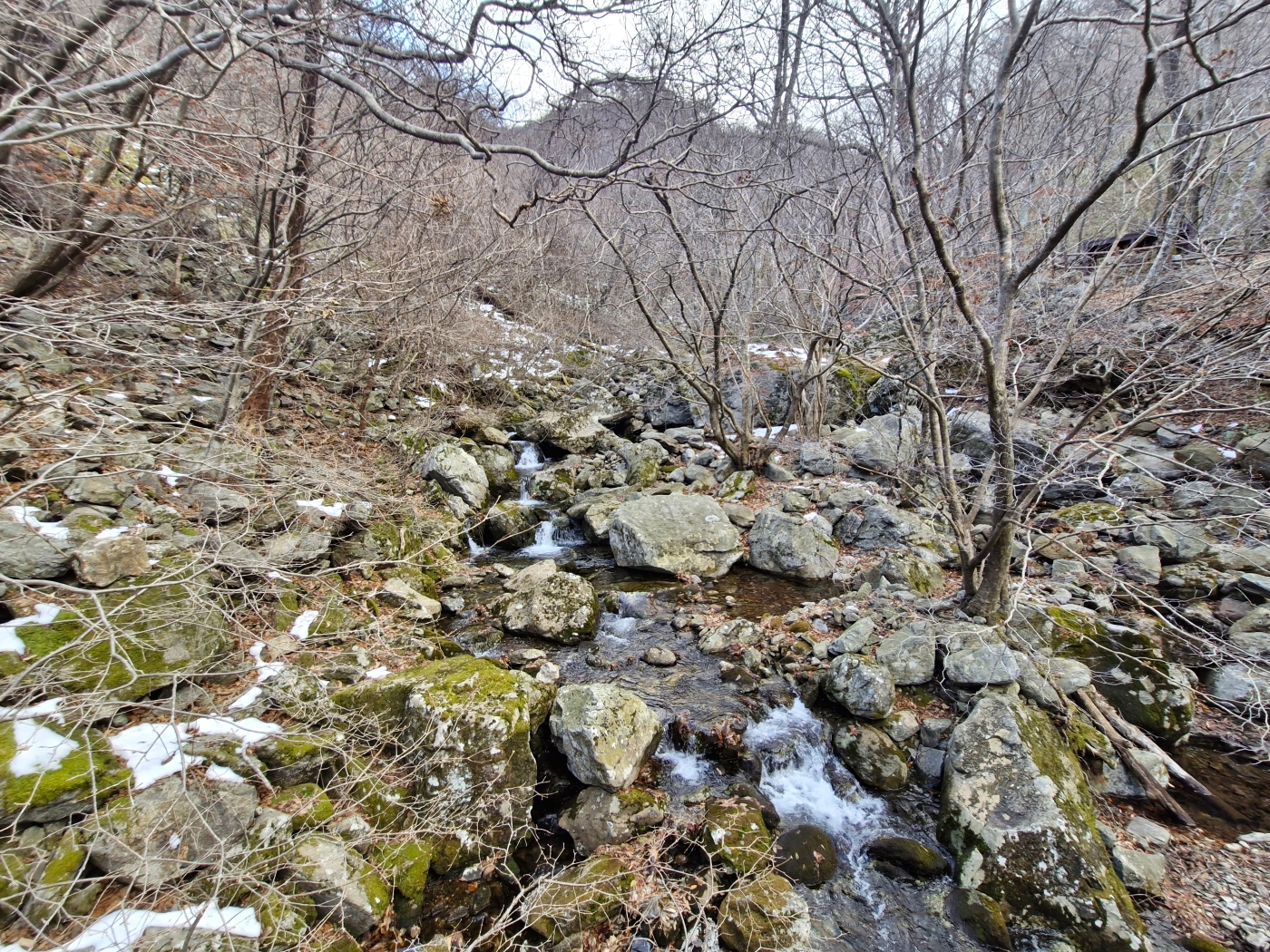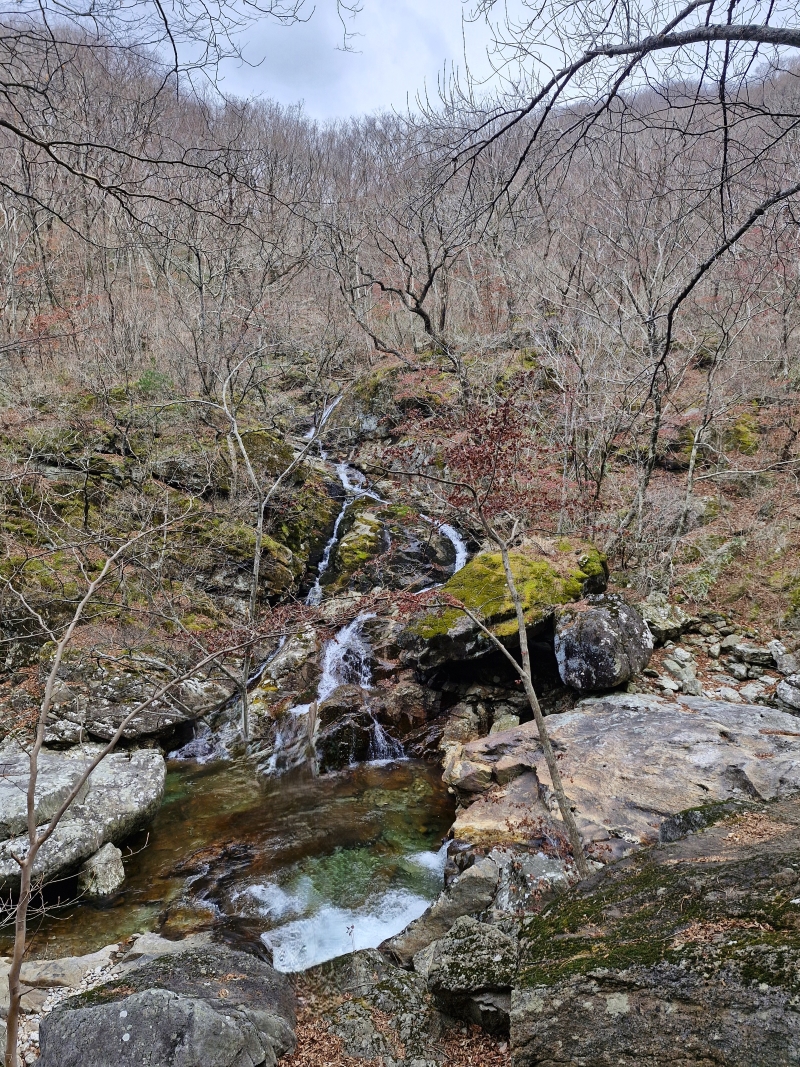 선녀교에서 눈이 희끗희끗하여 내려다보고