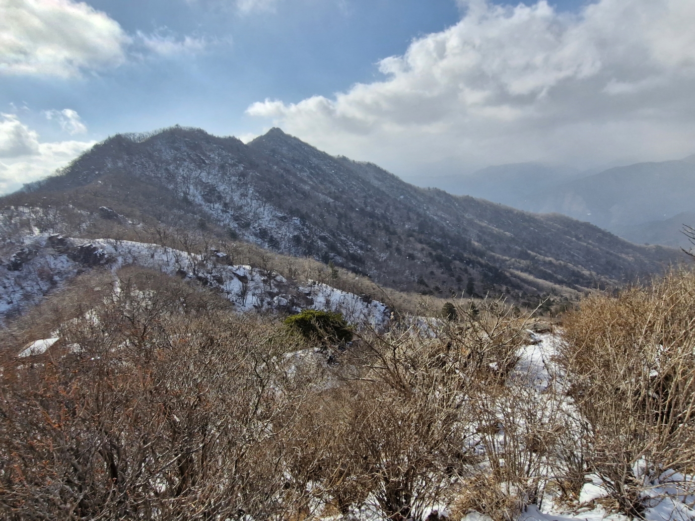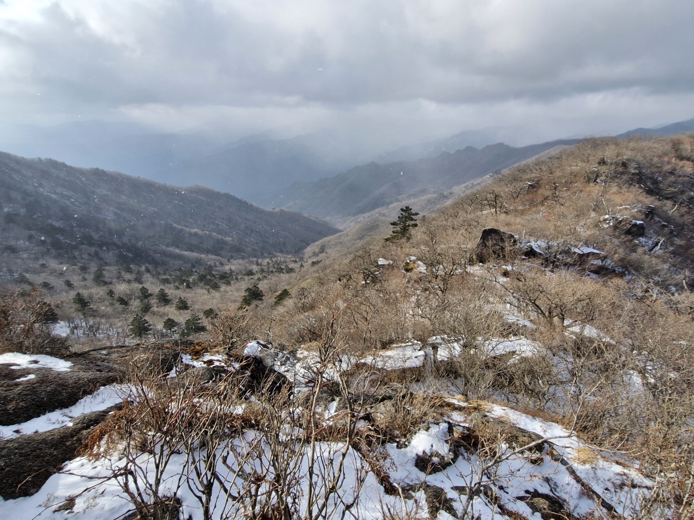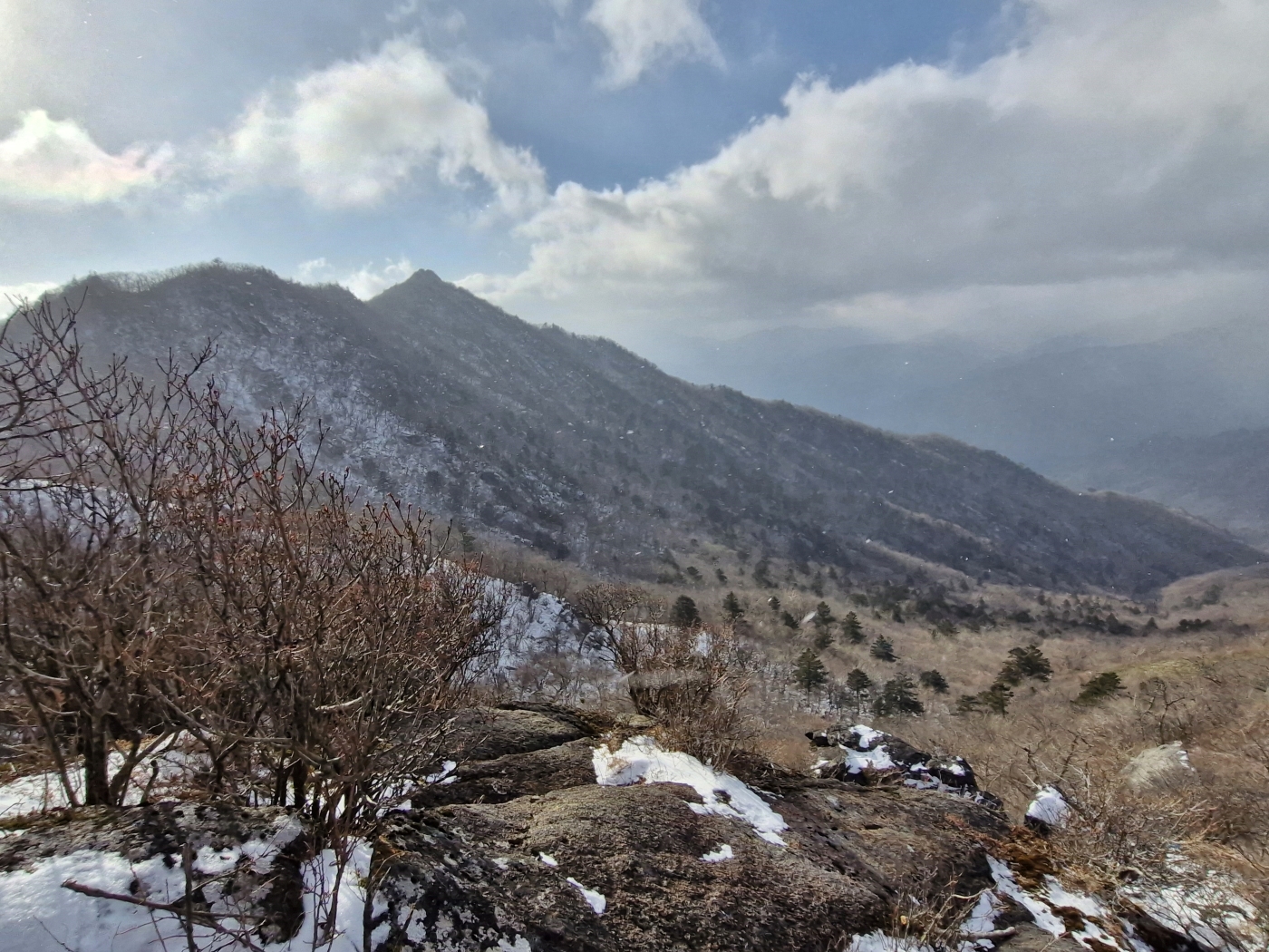 내삼신봉으로 눈이 먼저 가는데, 구름이 몰려들고 돌풍이 분다.