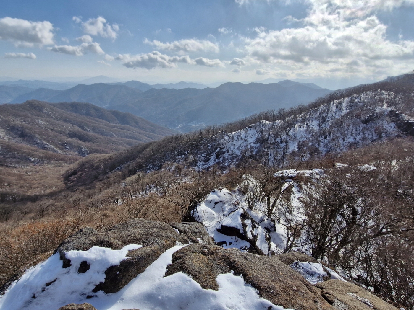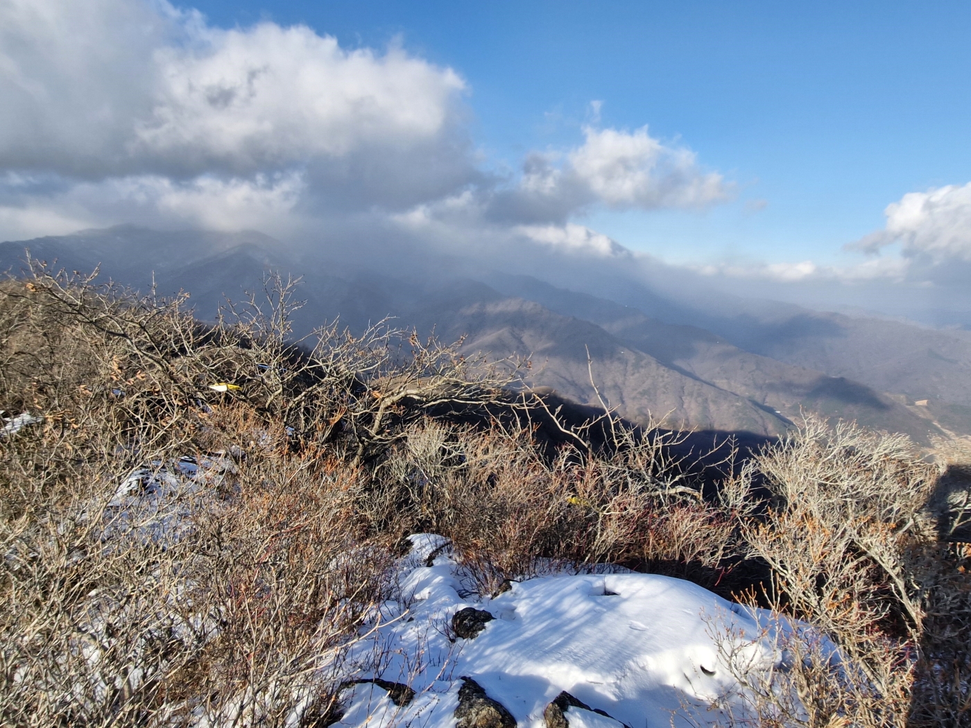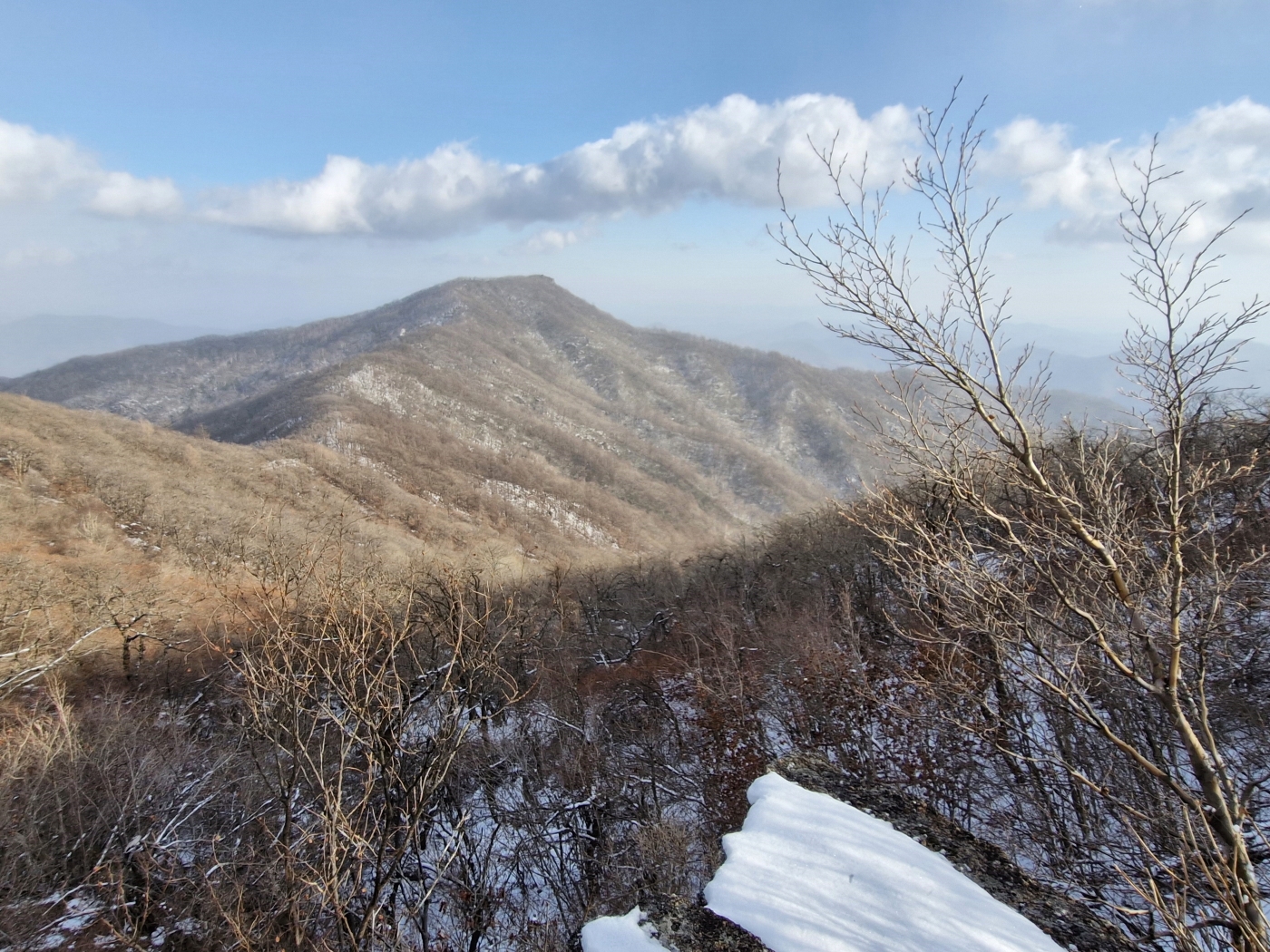 다리쉼하며 돌아본 등로는 눈이 제법 남아있는데