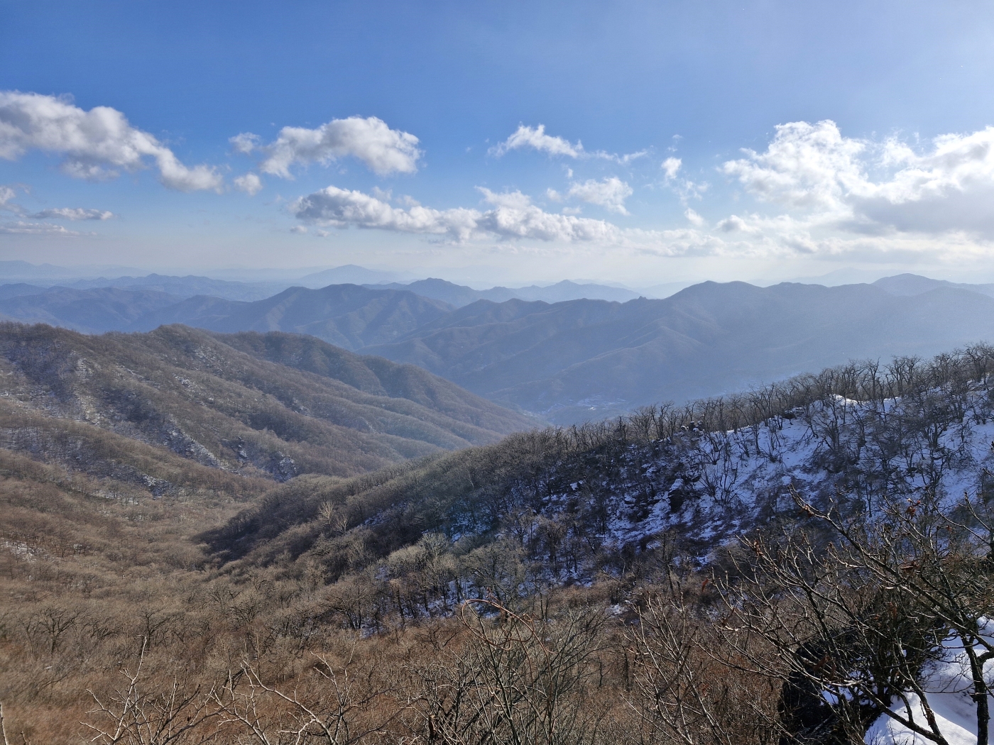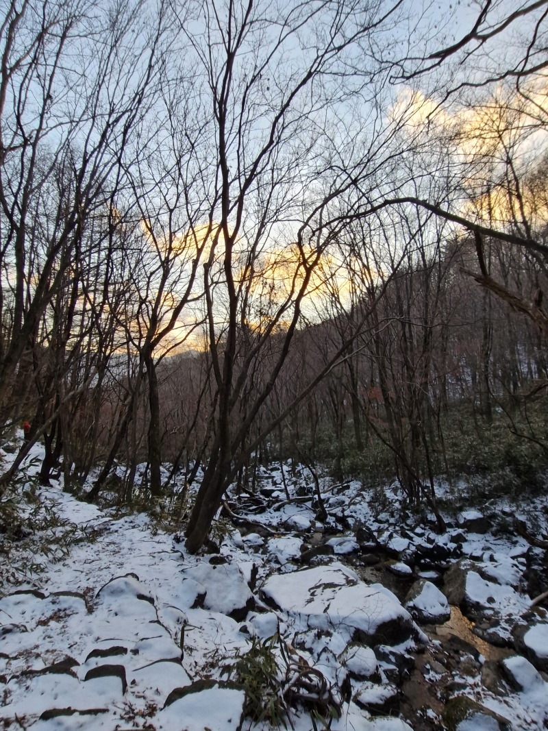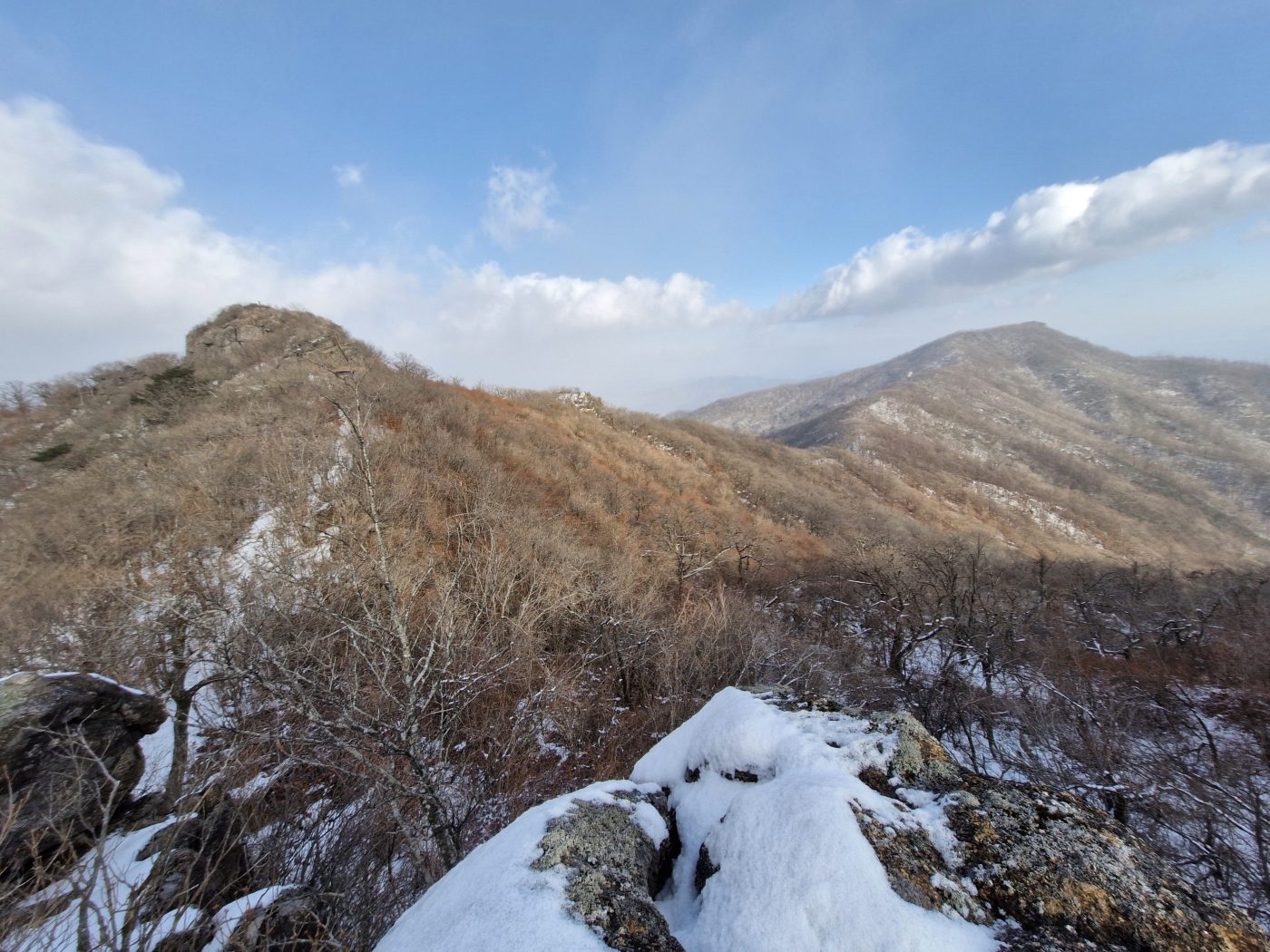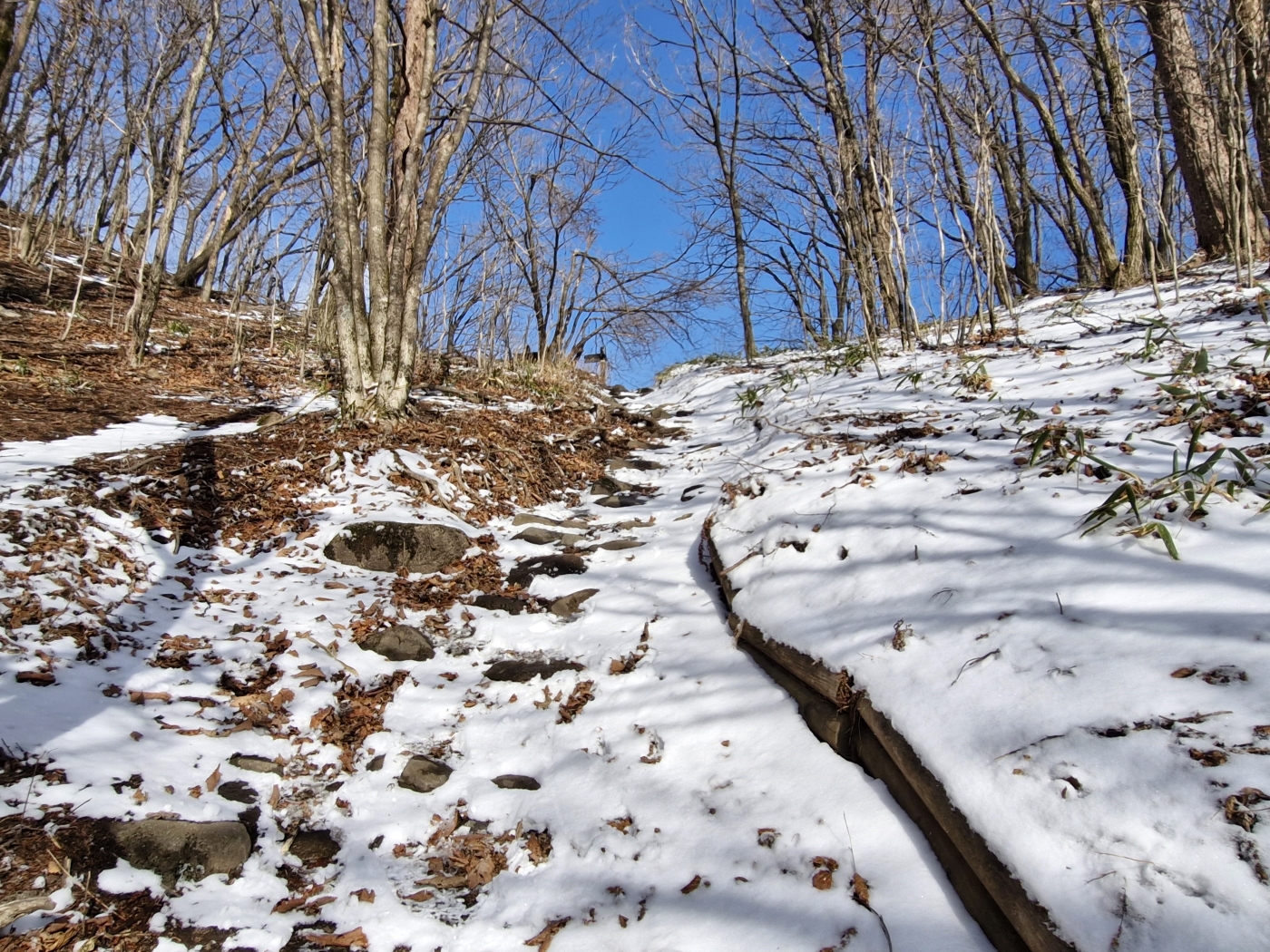 다리쉼하며 돌아본 등로는 눈이 제법 남아있는데
