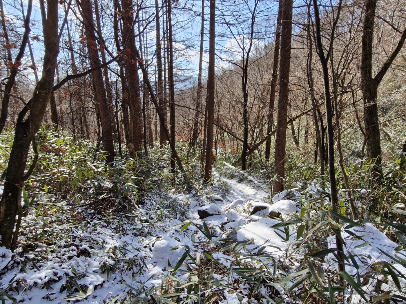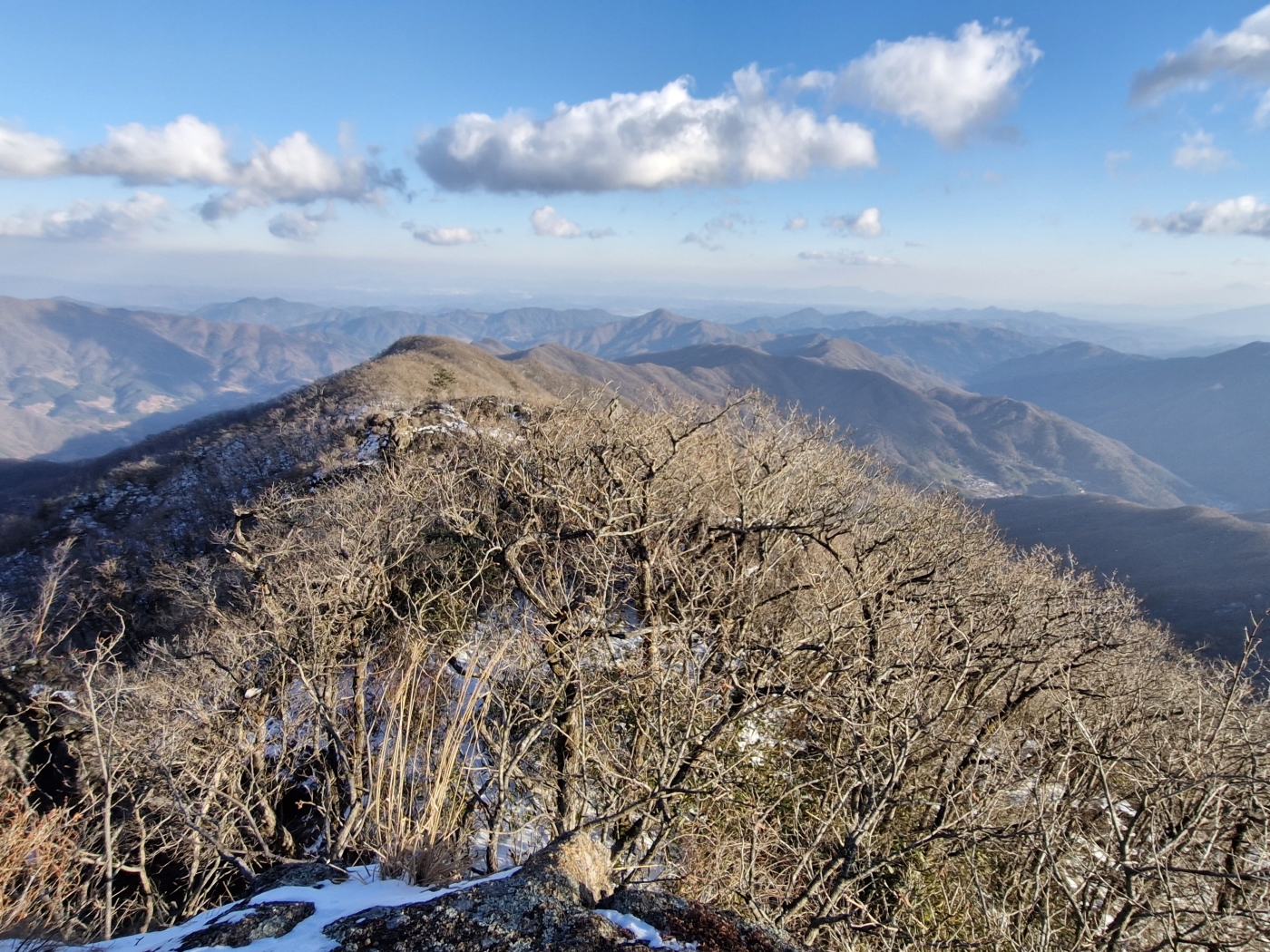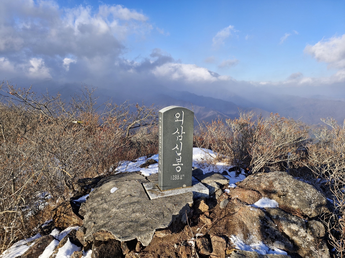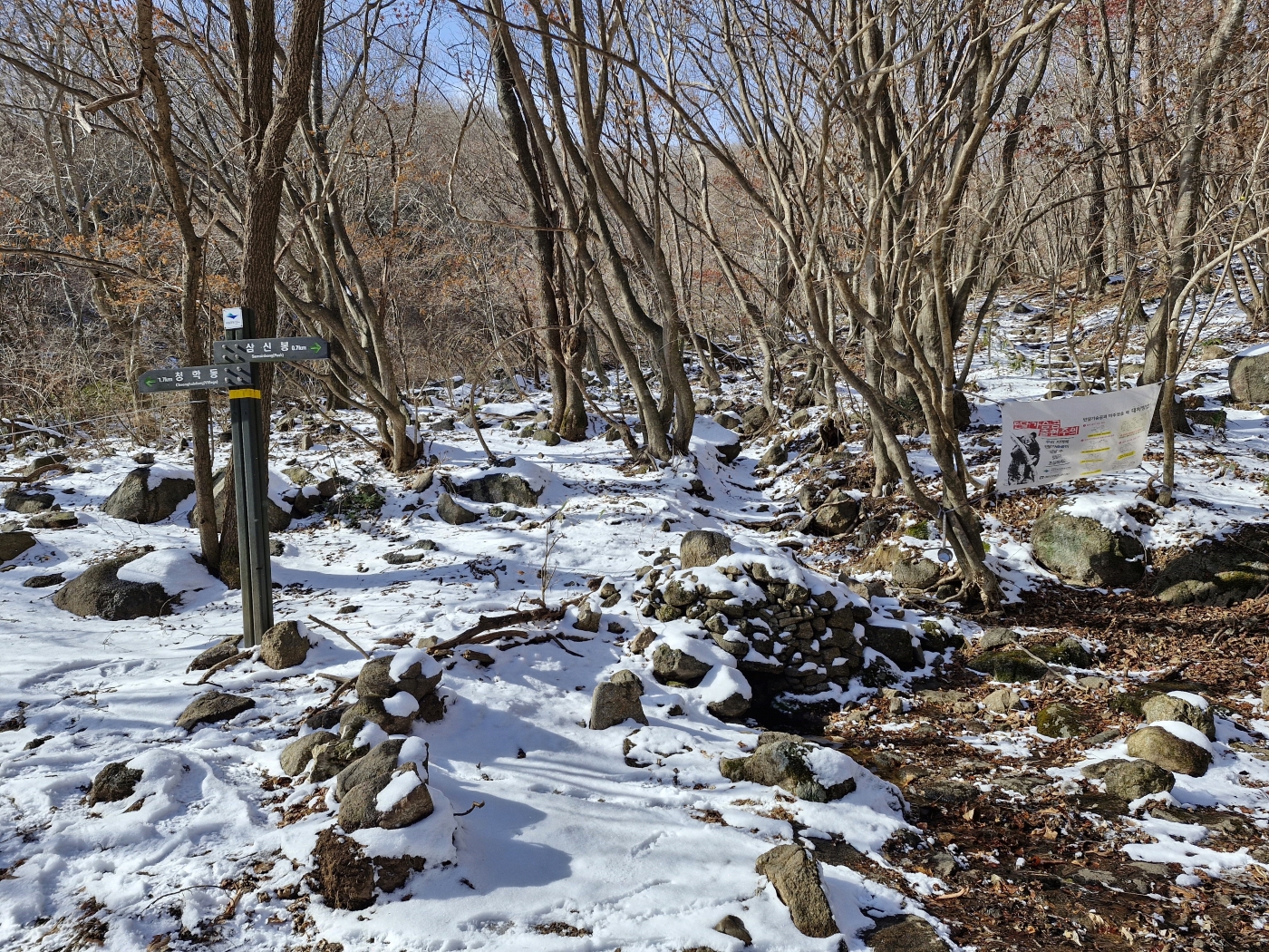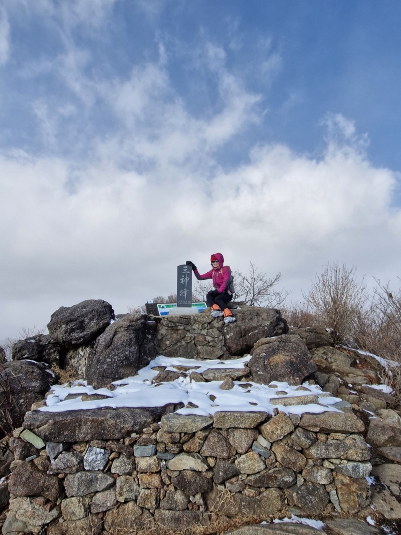 남쪽이라 삼신봉 등로는 눈이 거의 없다.