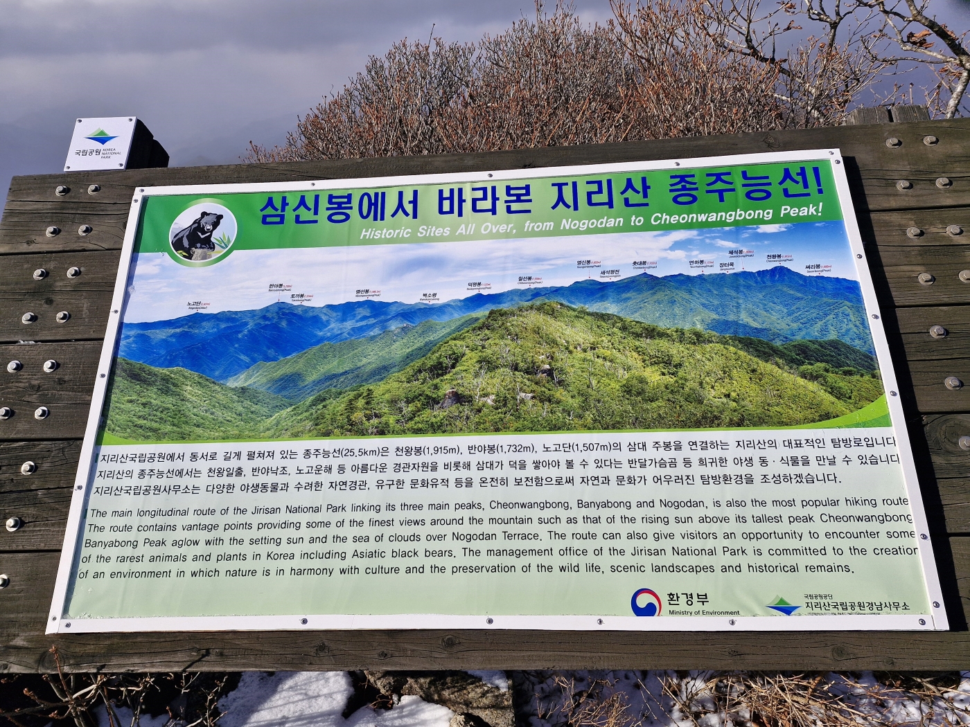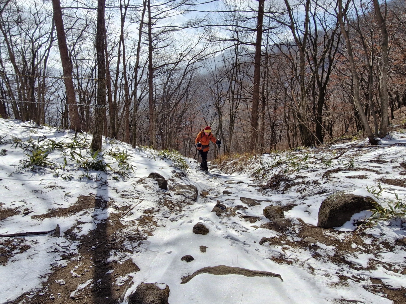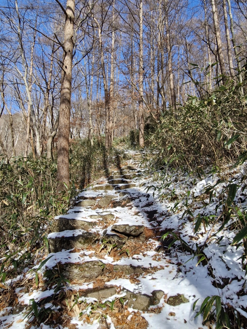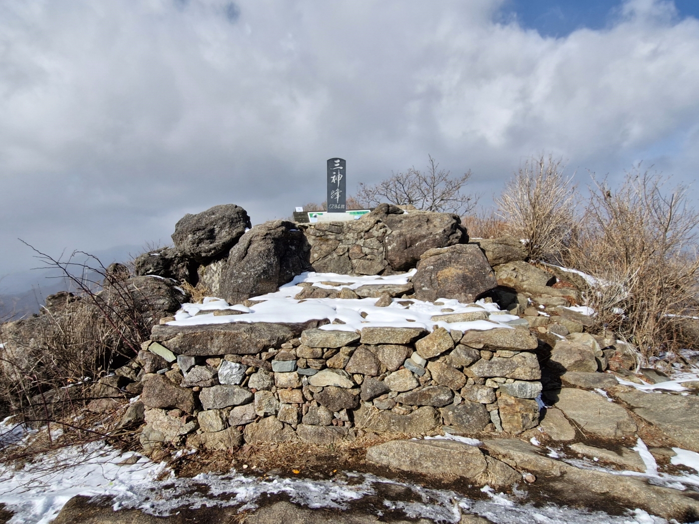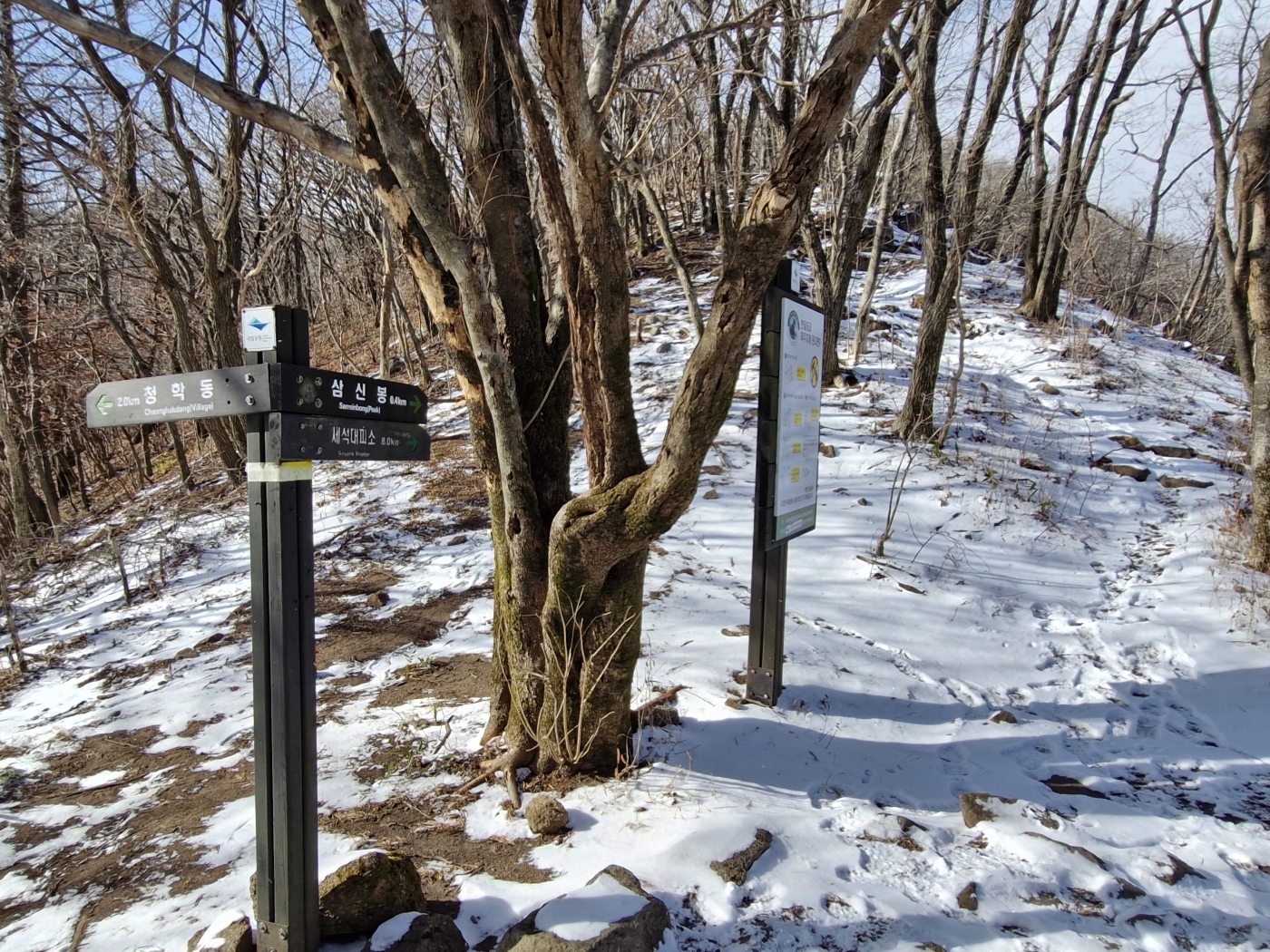 남쪽이라 삼신봉 등로는 눈이 거의 없다.
