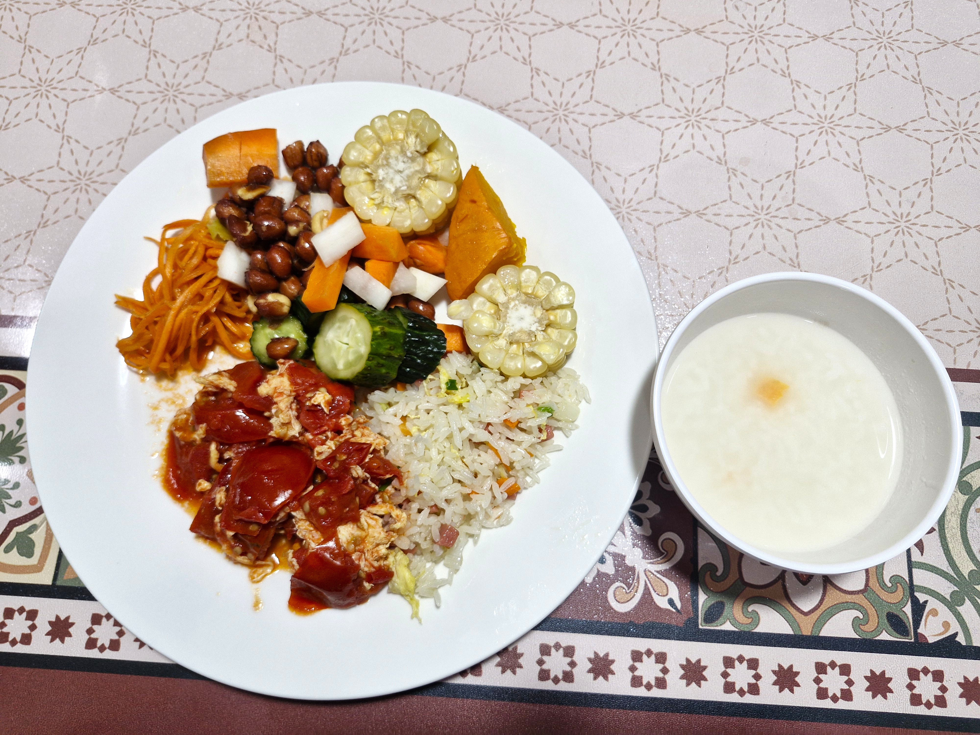 매운 맛 없는 음식 고르다보니 볶음밥과 야채 그리고 미음