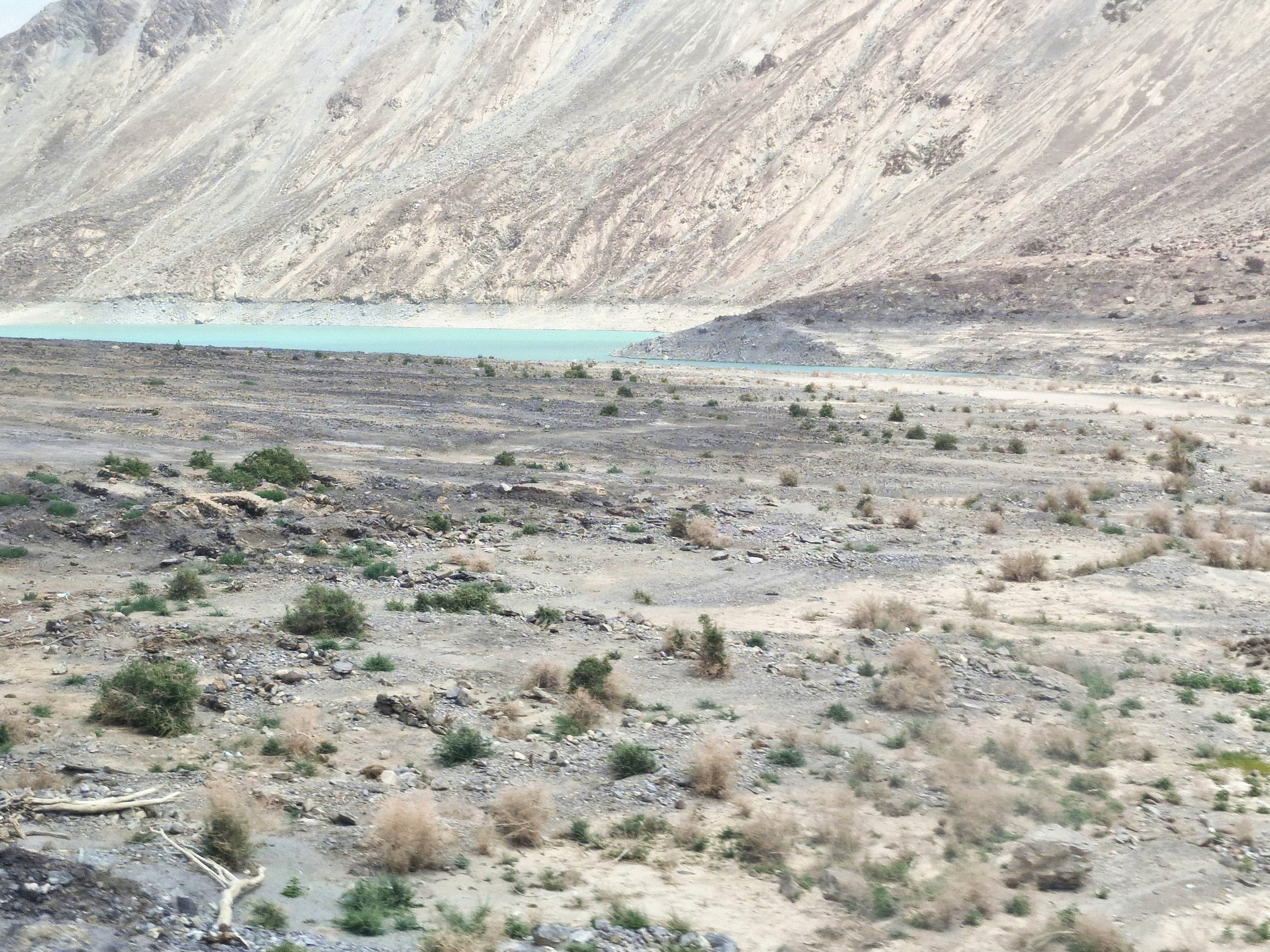 사막 같은 지형을 달려 내려가니 호수가 보이기 시작한다