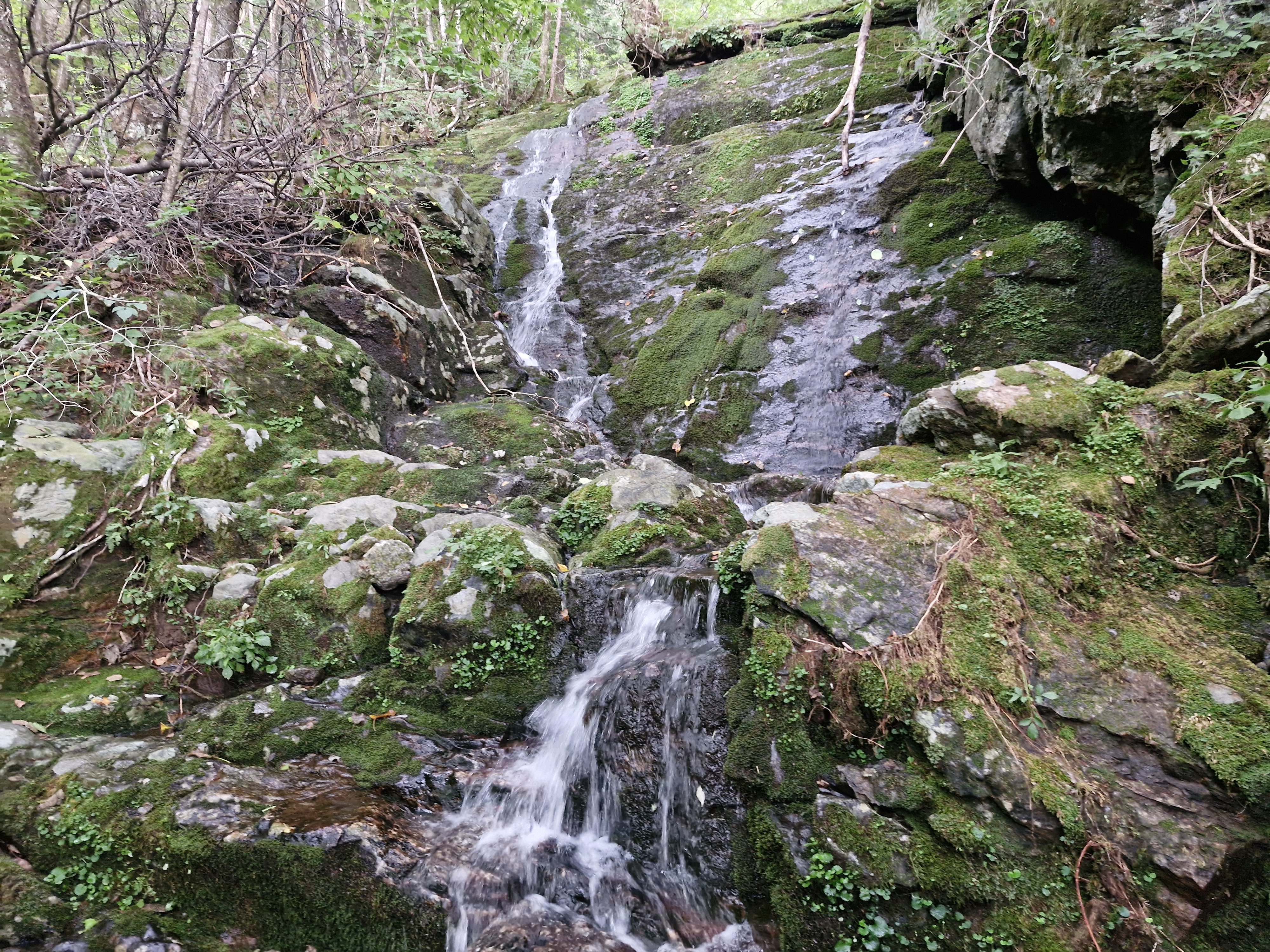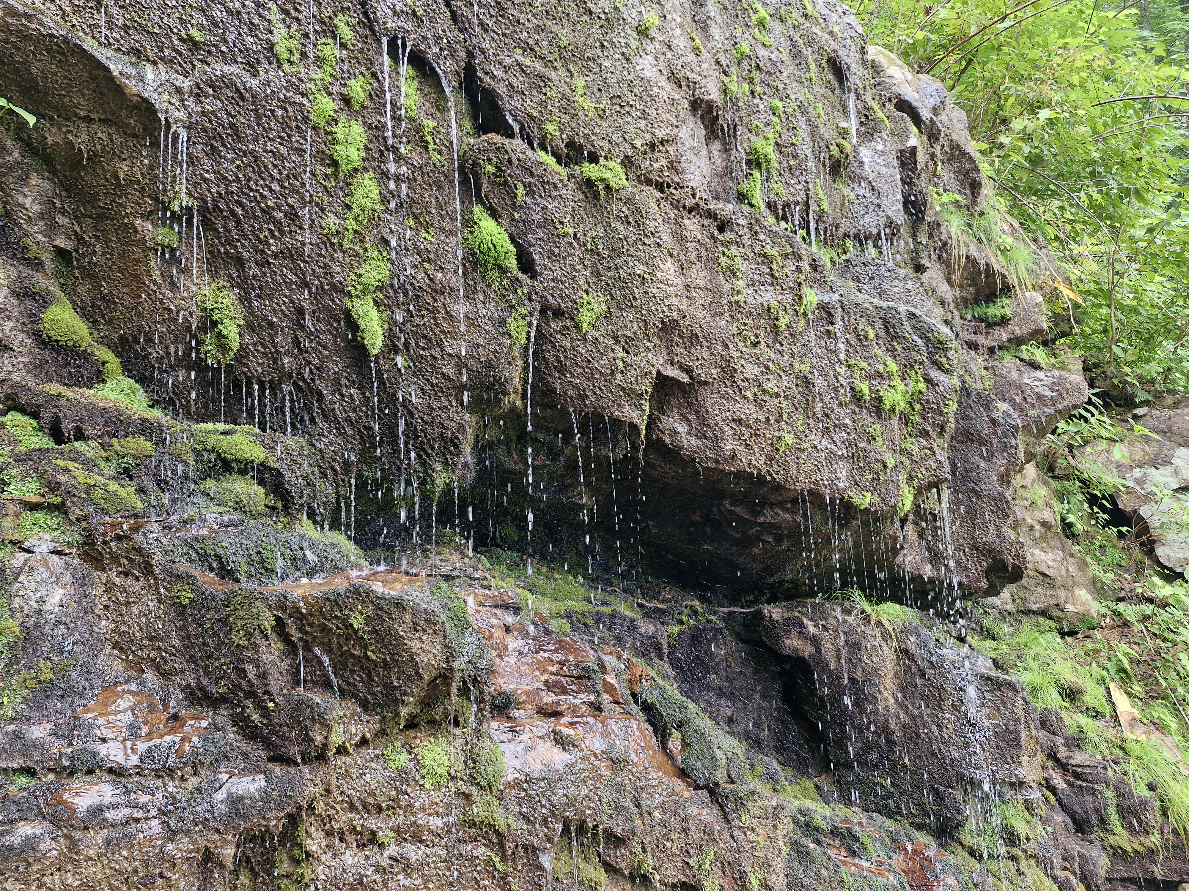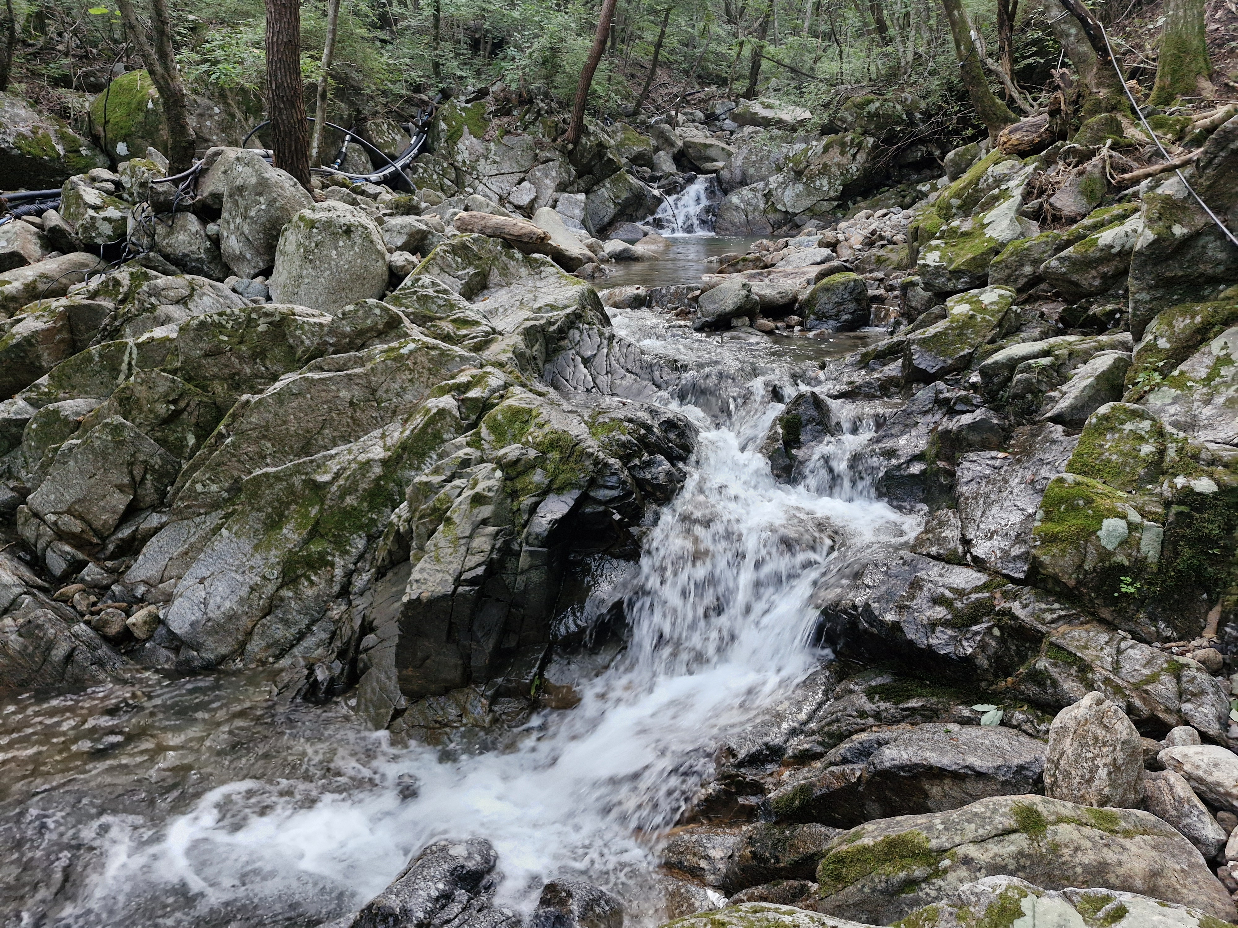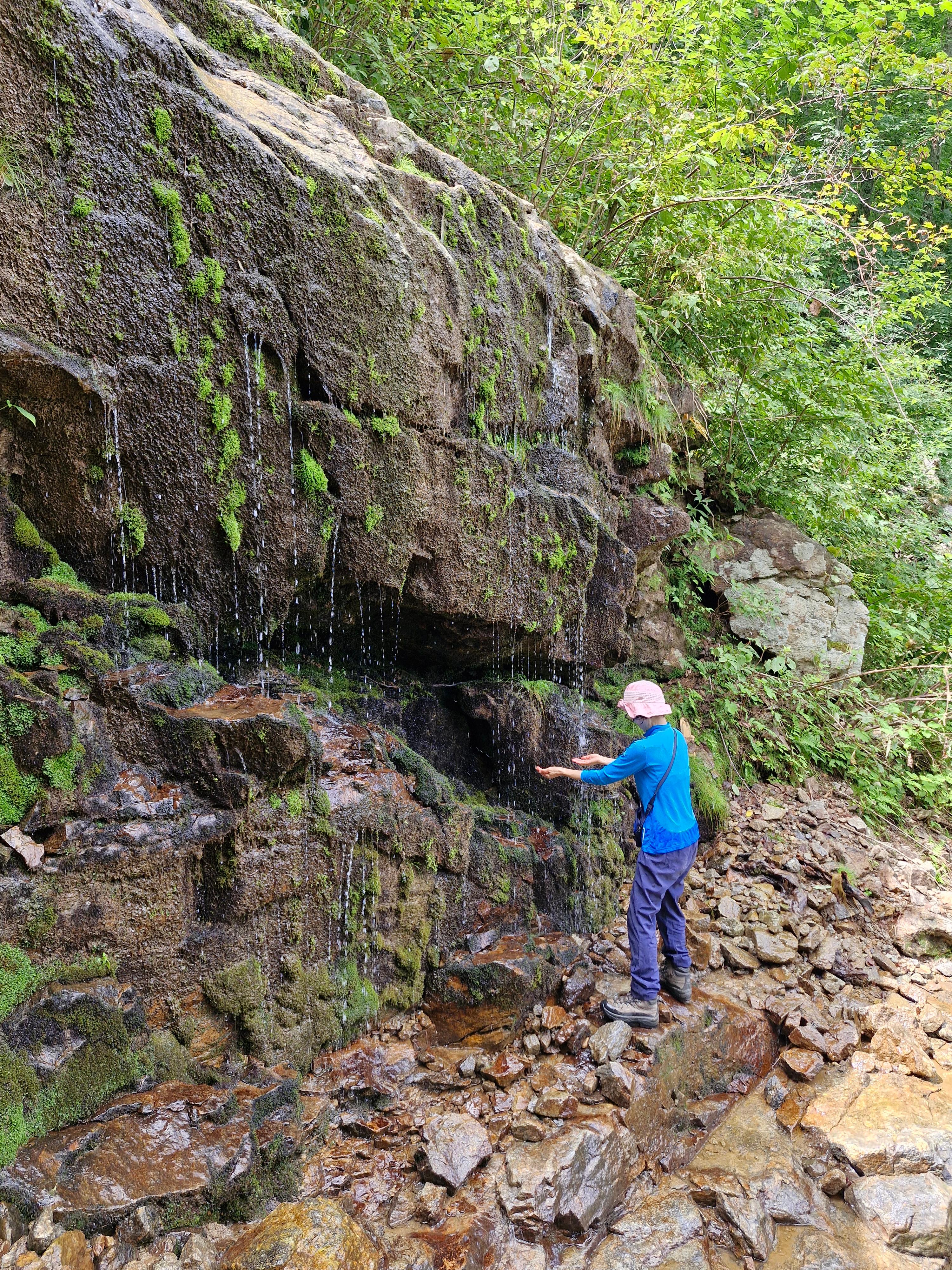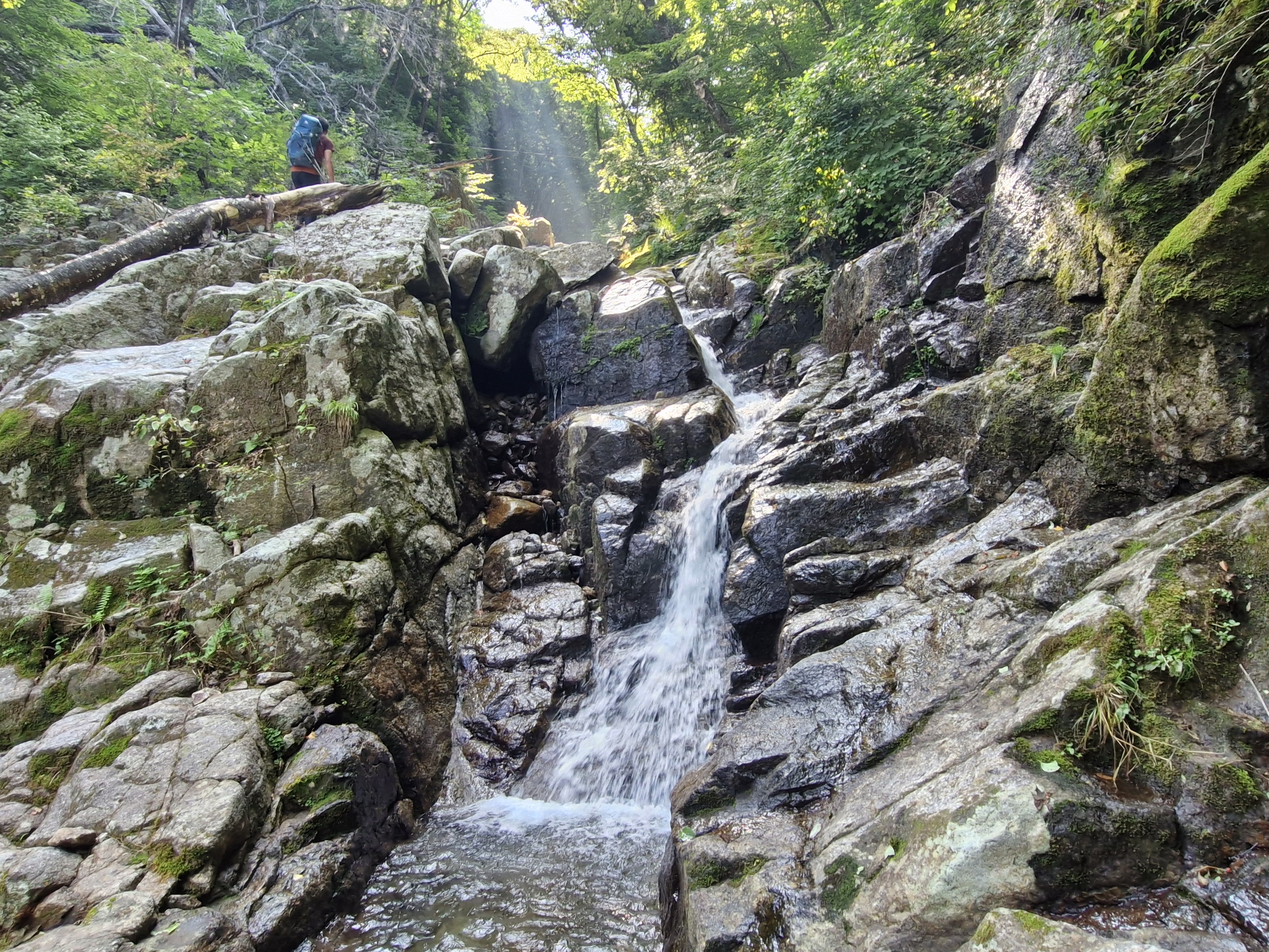 이끼바위 구간을 조심스럽게 내려가 다리쉼하는데, 소나기 한바탕 시원하게 내립니다.