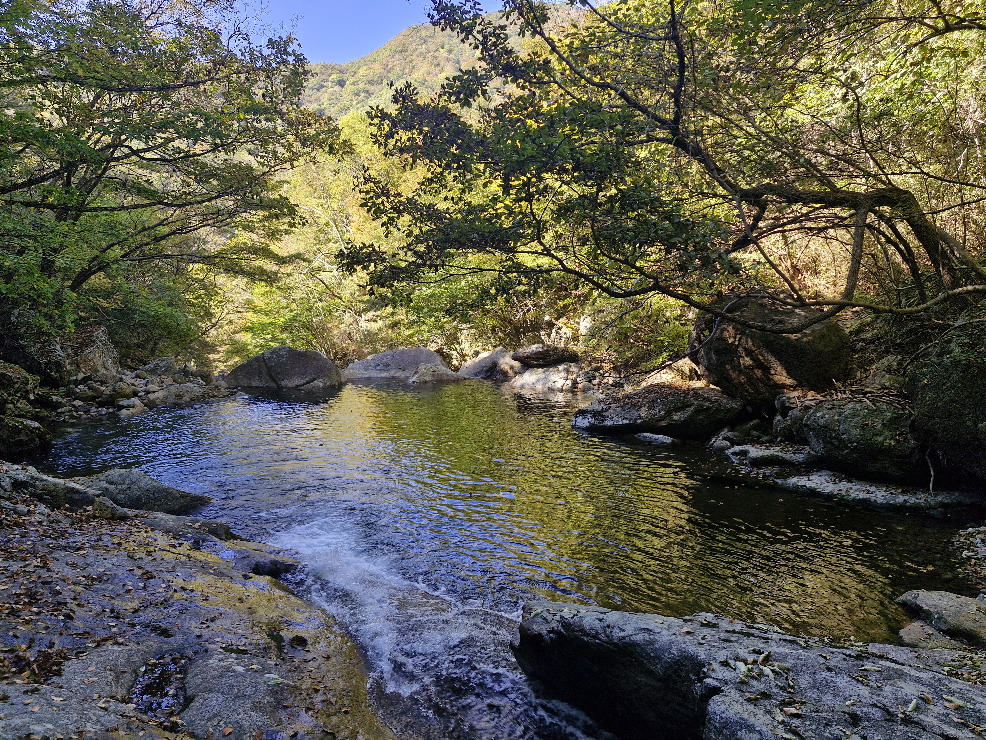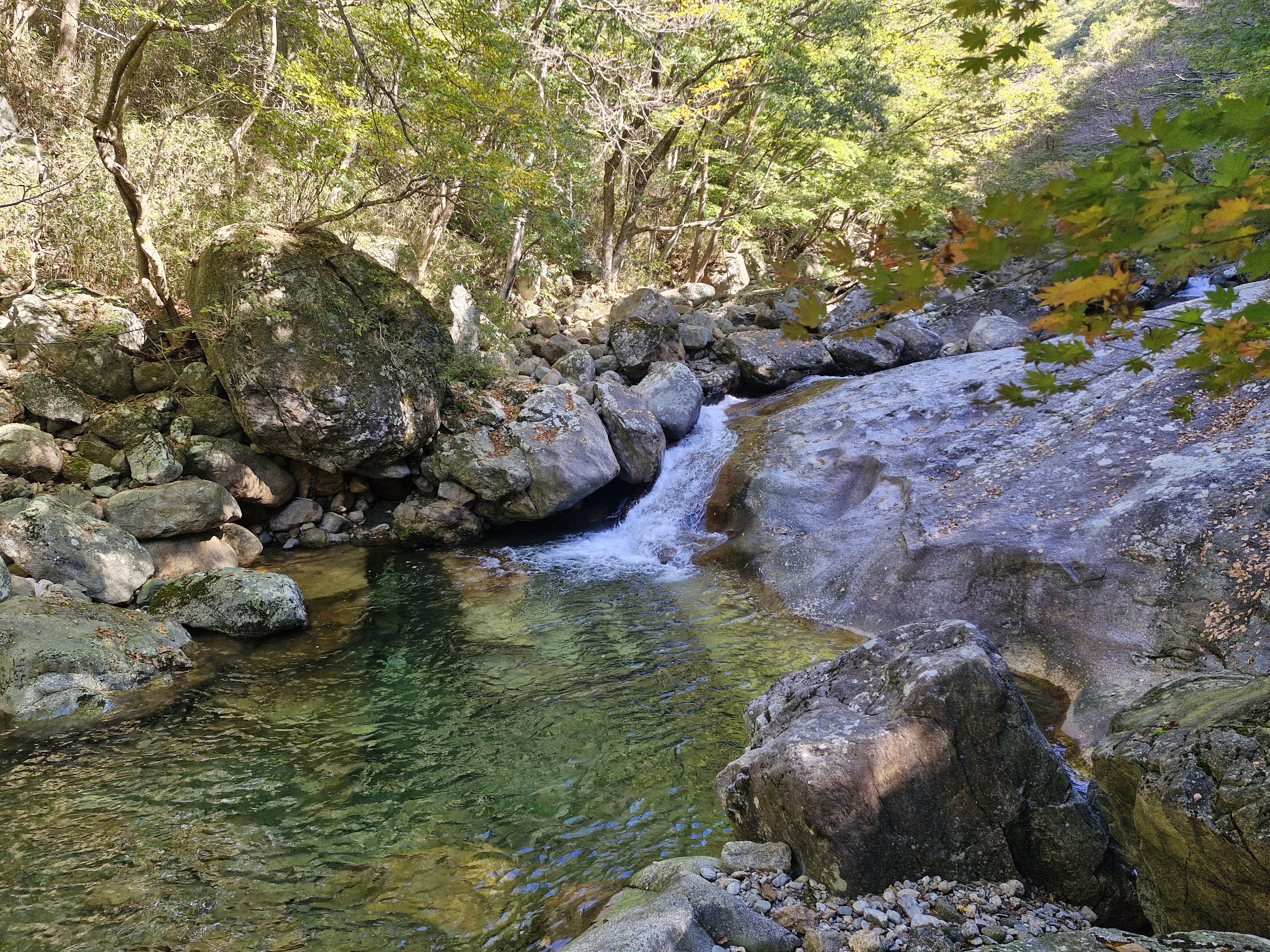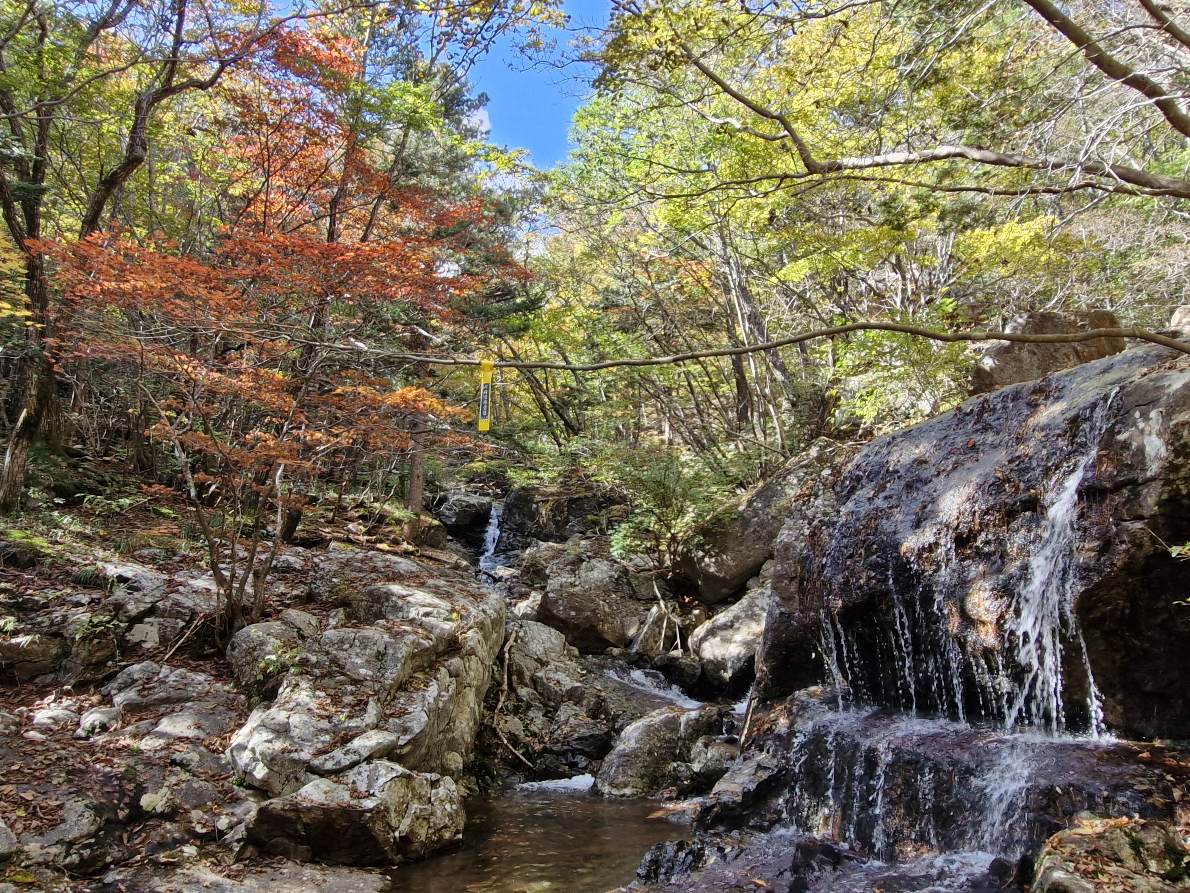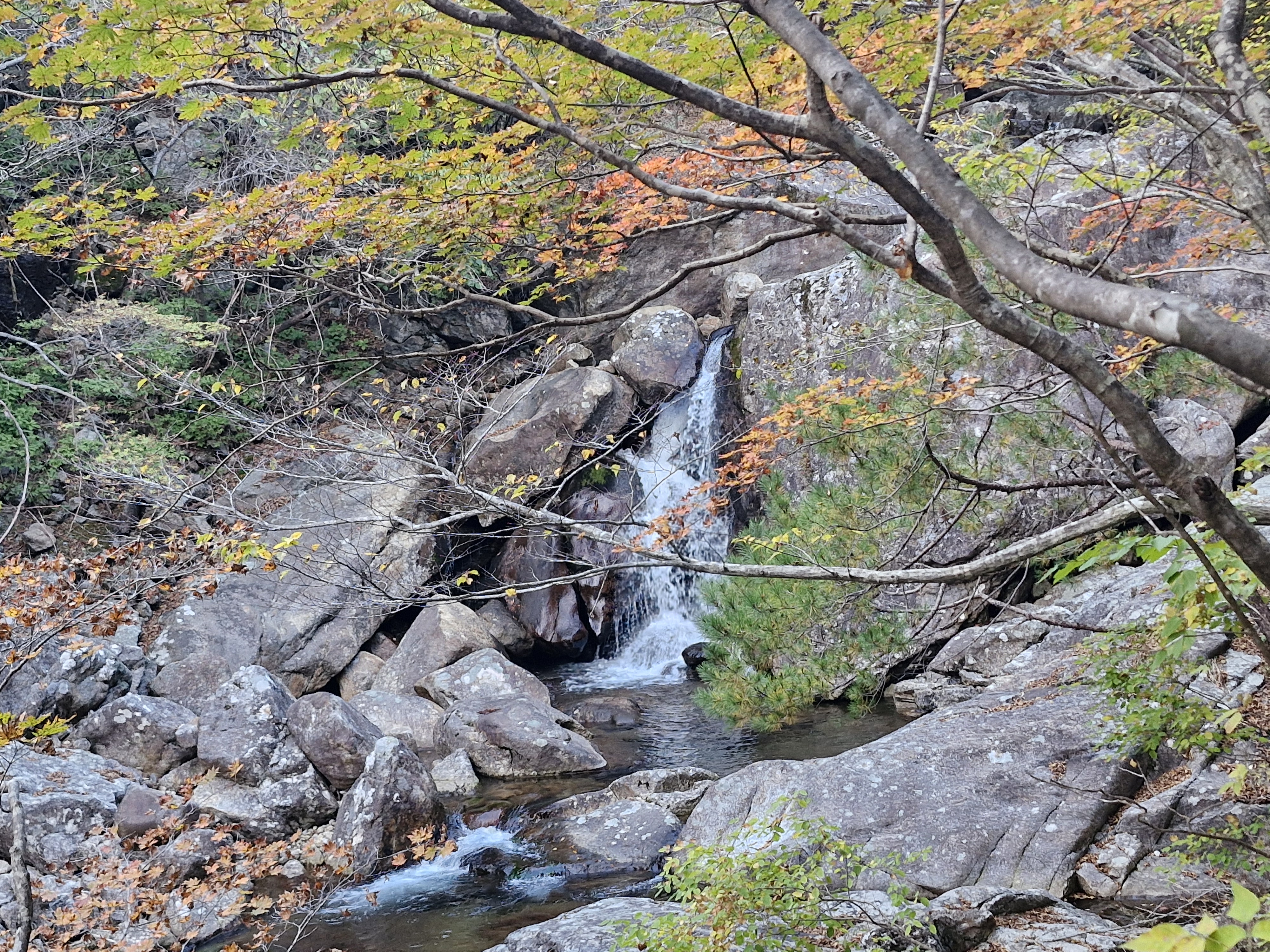 * 와룡폭포까지 단풍 몇 그루 보이고, 폭포 위로는 물들고 있습니다.