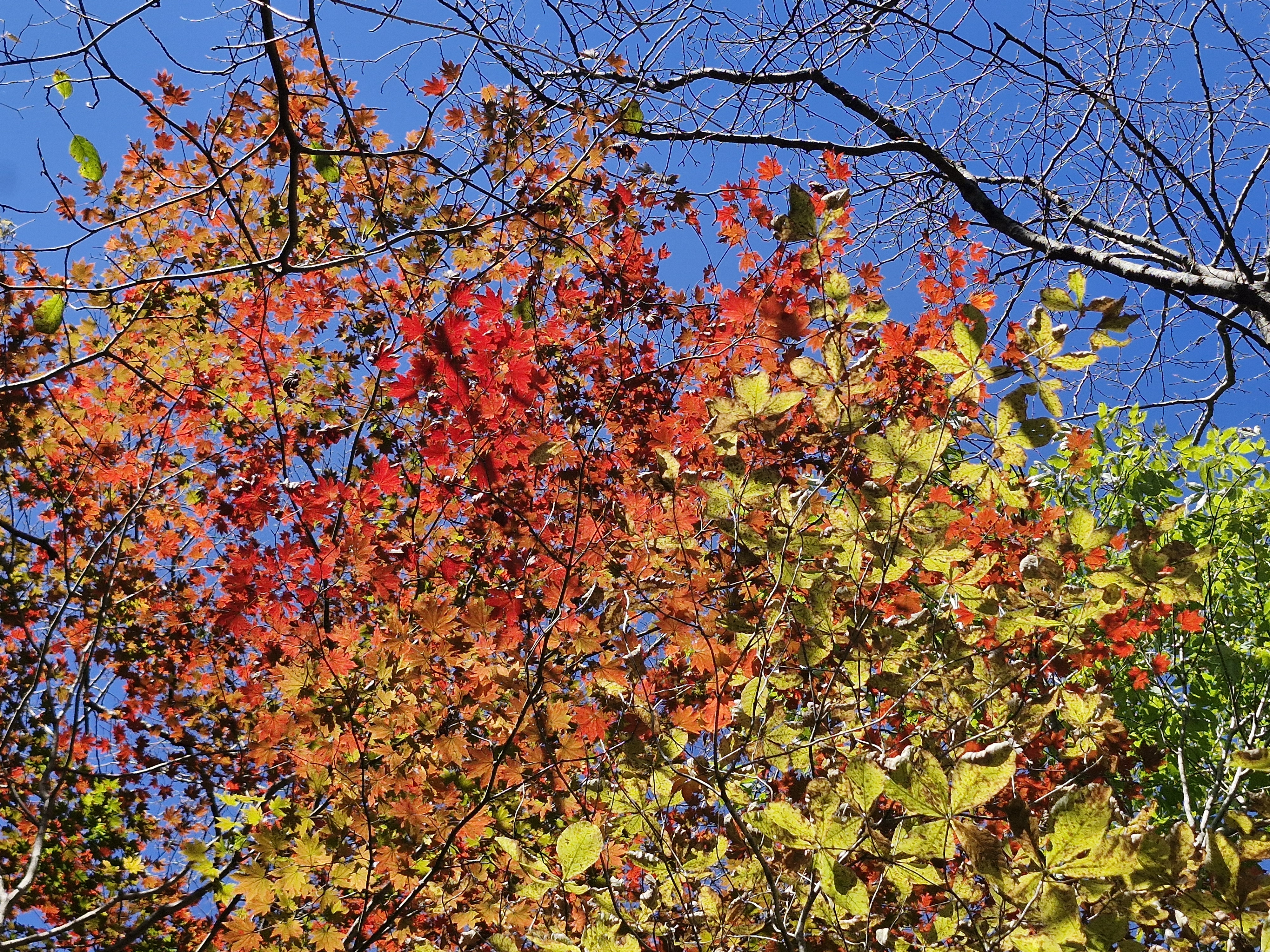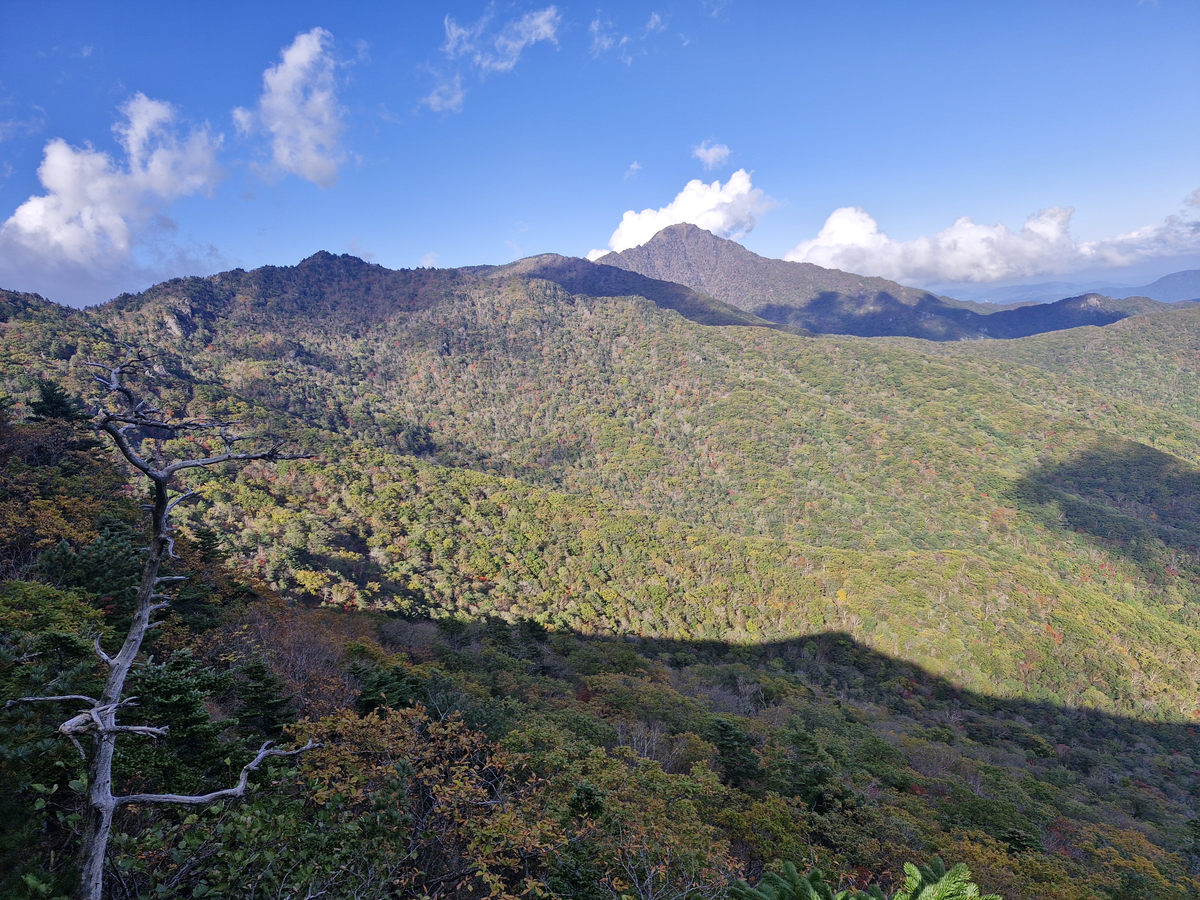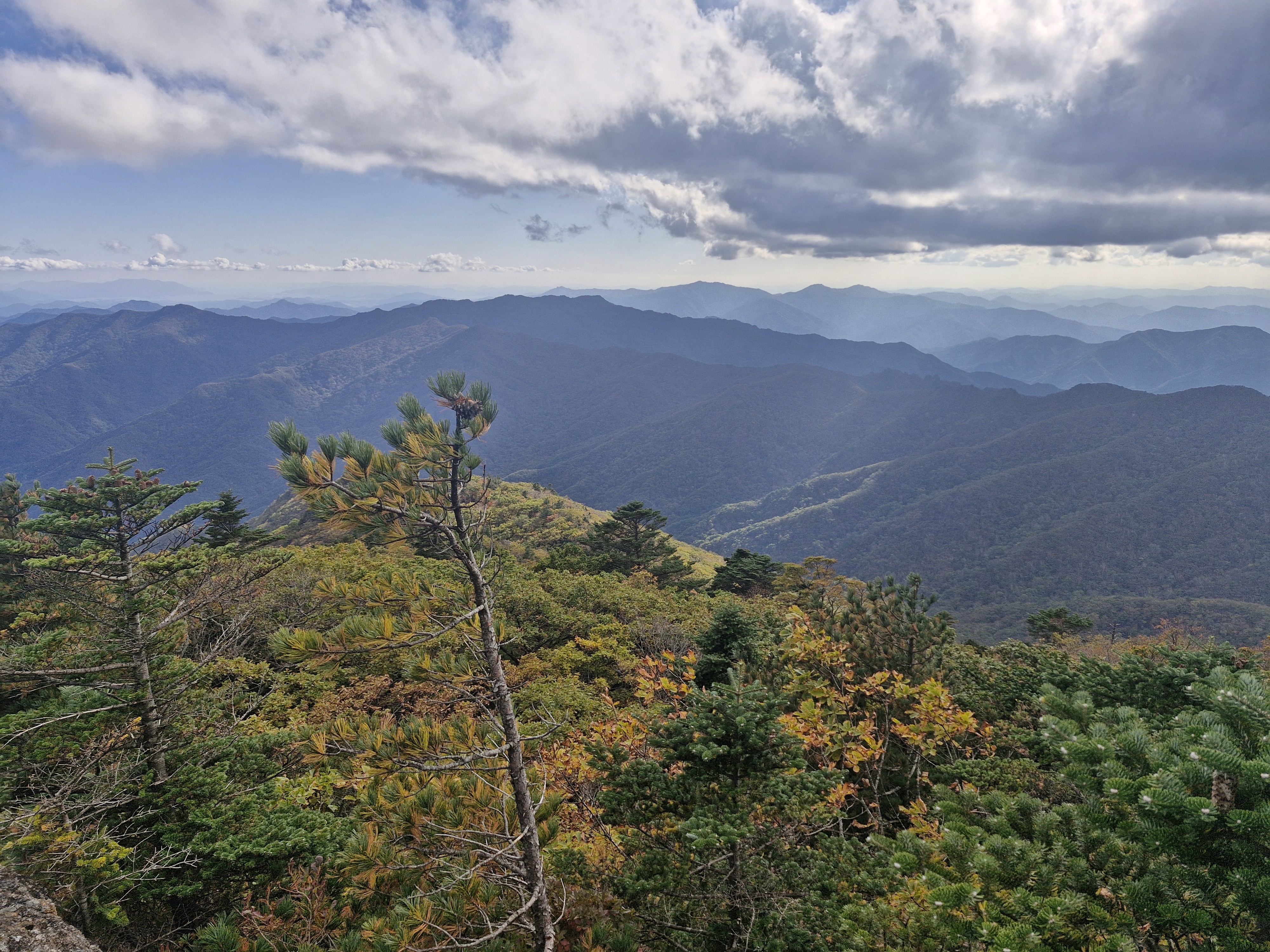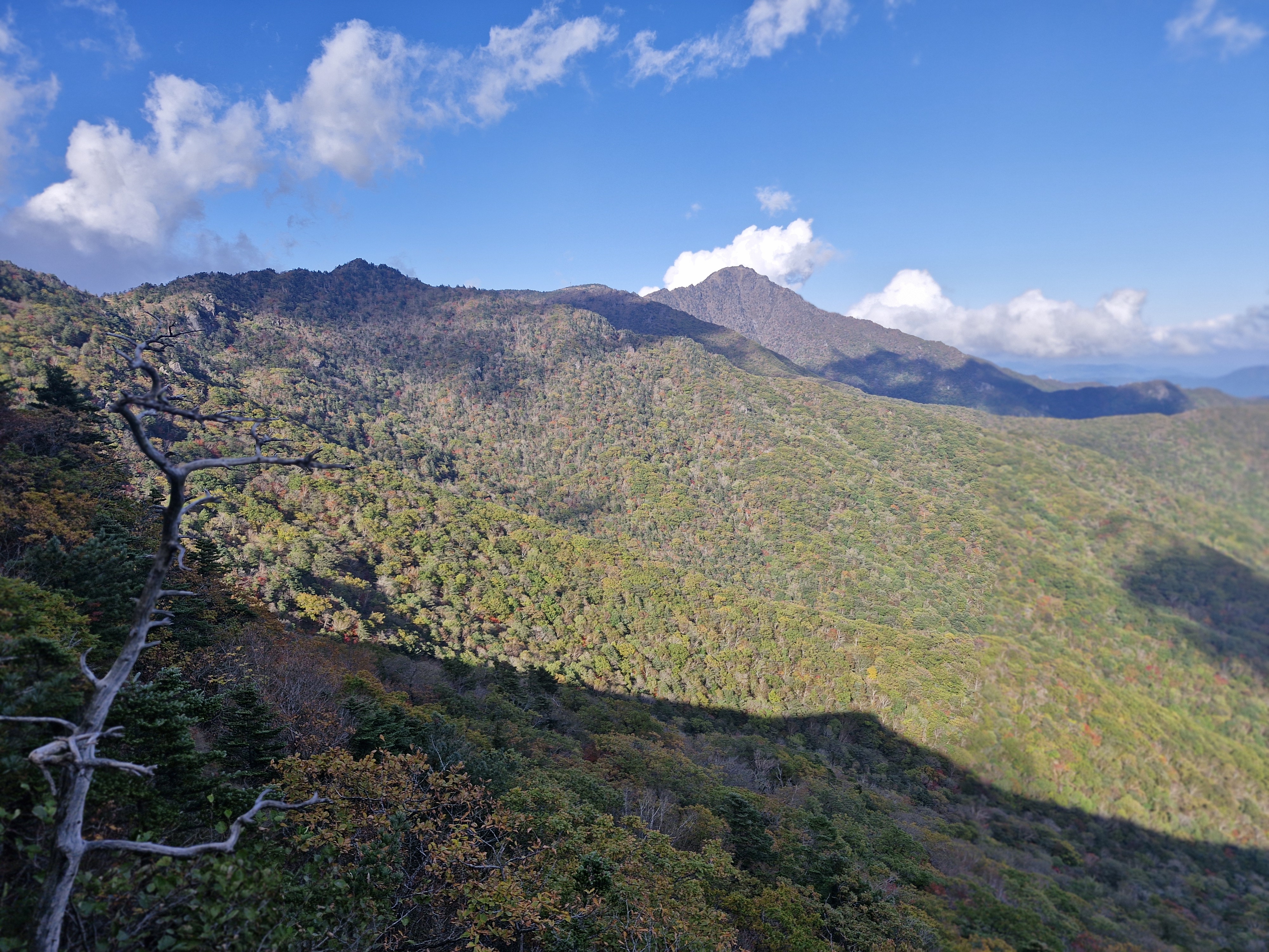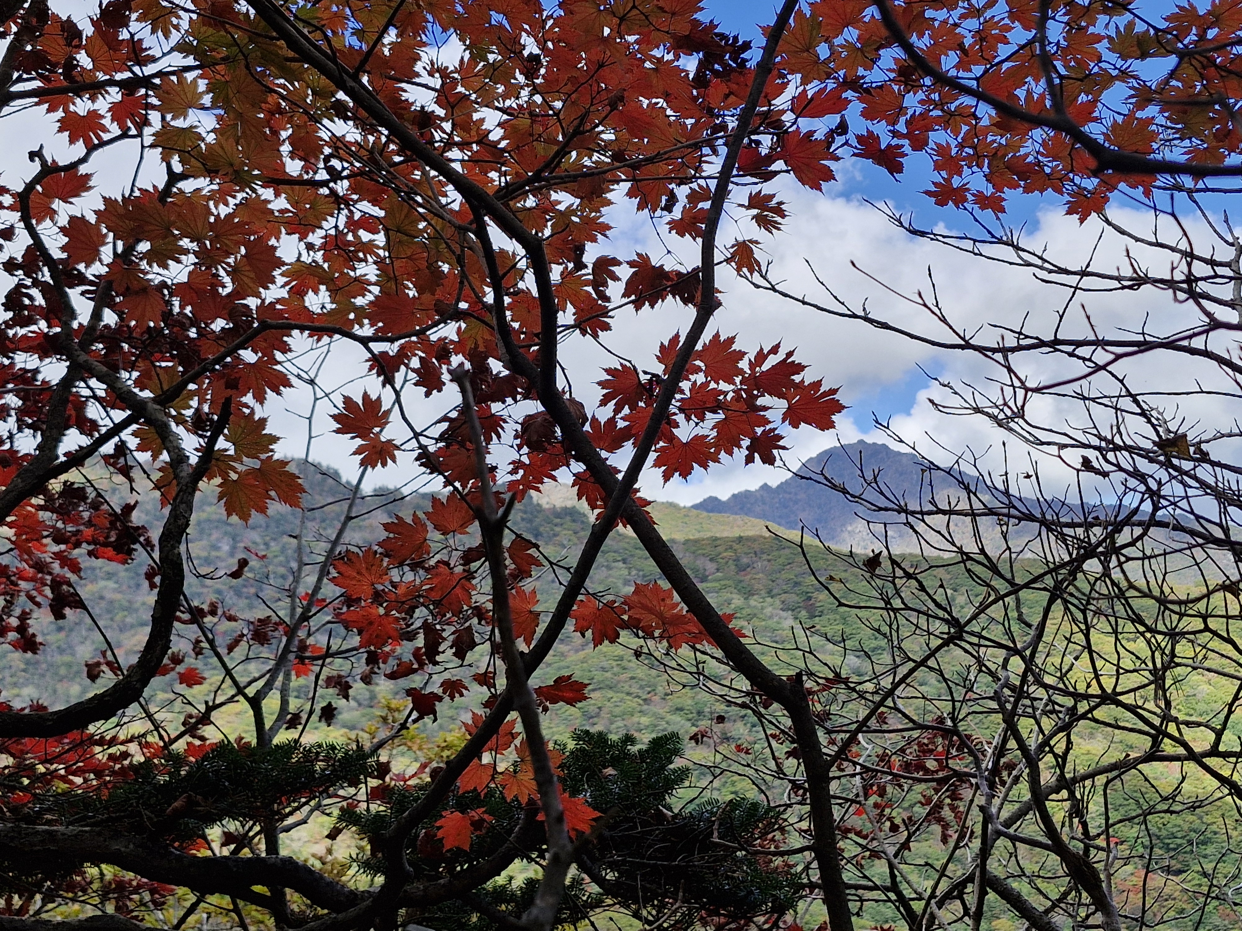 촛대봉골, 삼신봉골, 연하봉골 사이 지능엔 단풍이 점점이 보입니다.