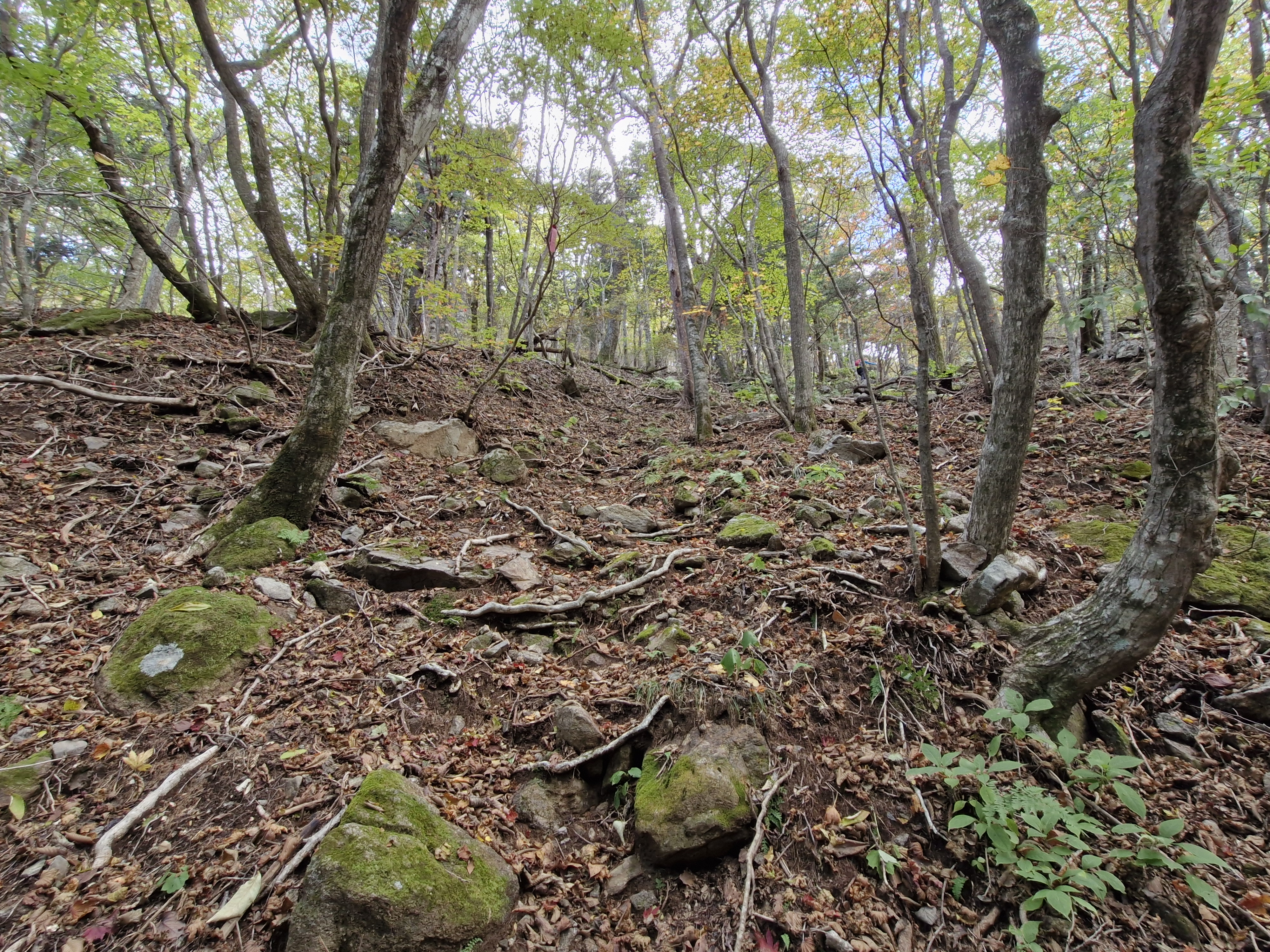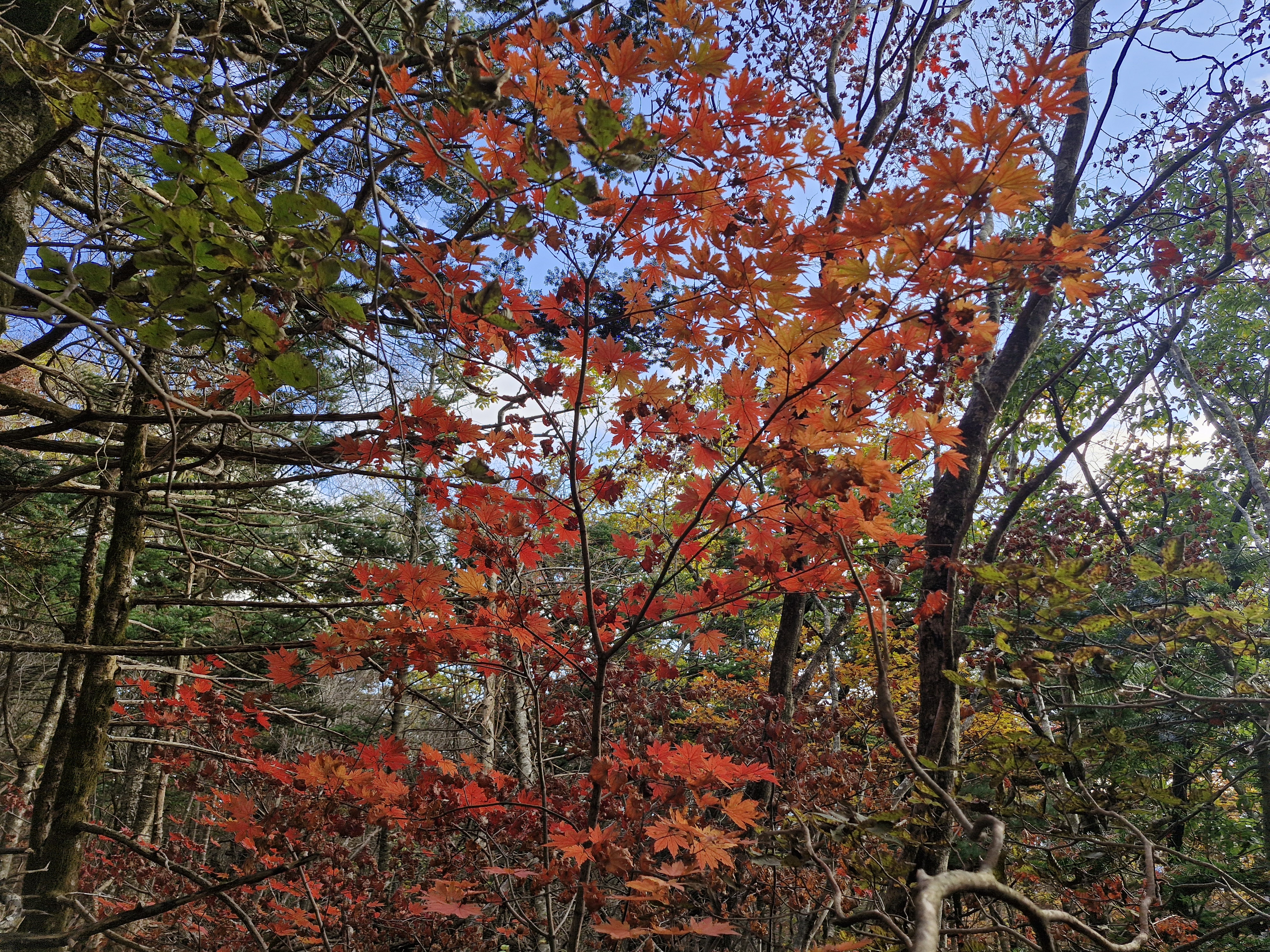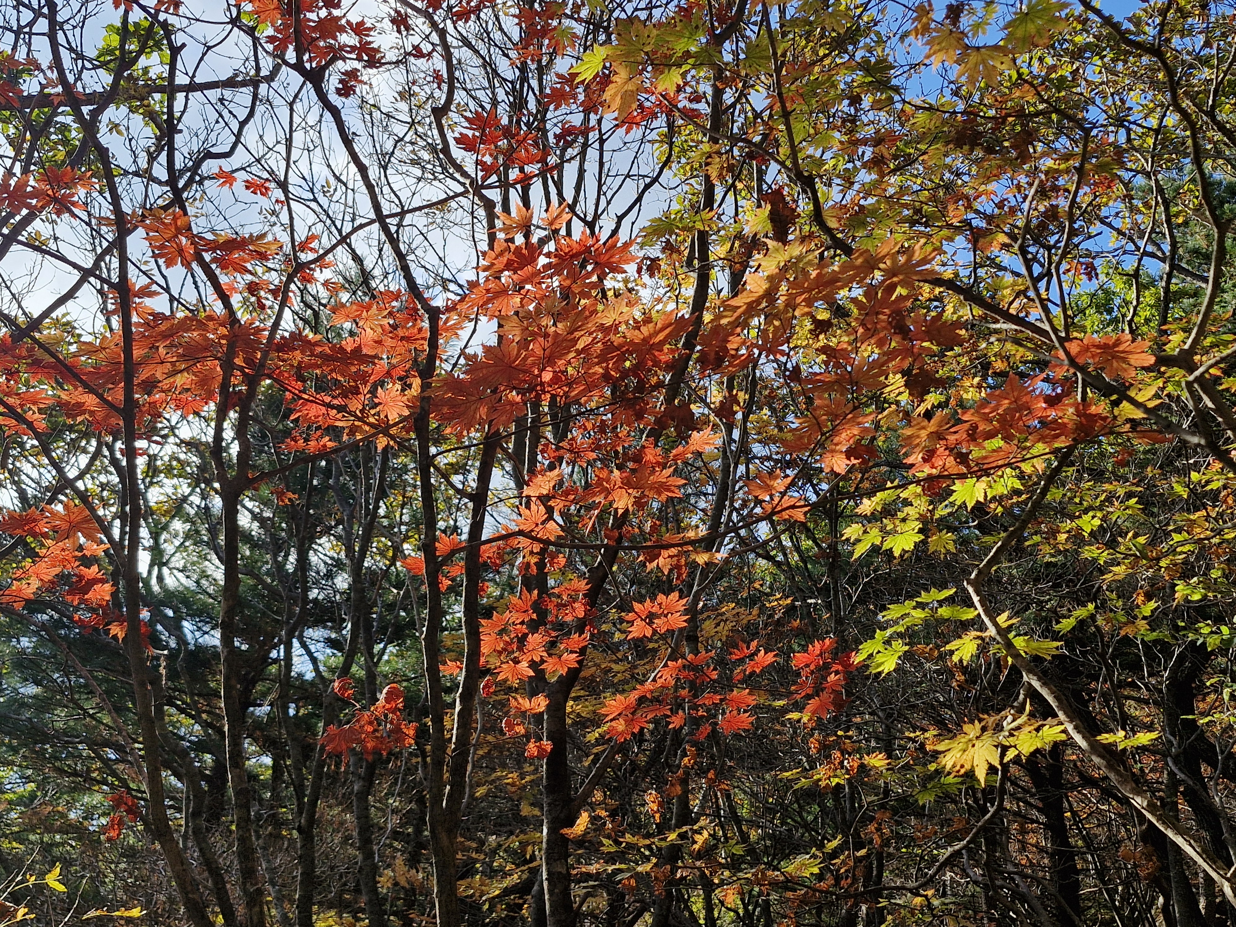 점점이 박힌 단풍 살피며 달뜨기능선으로