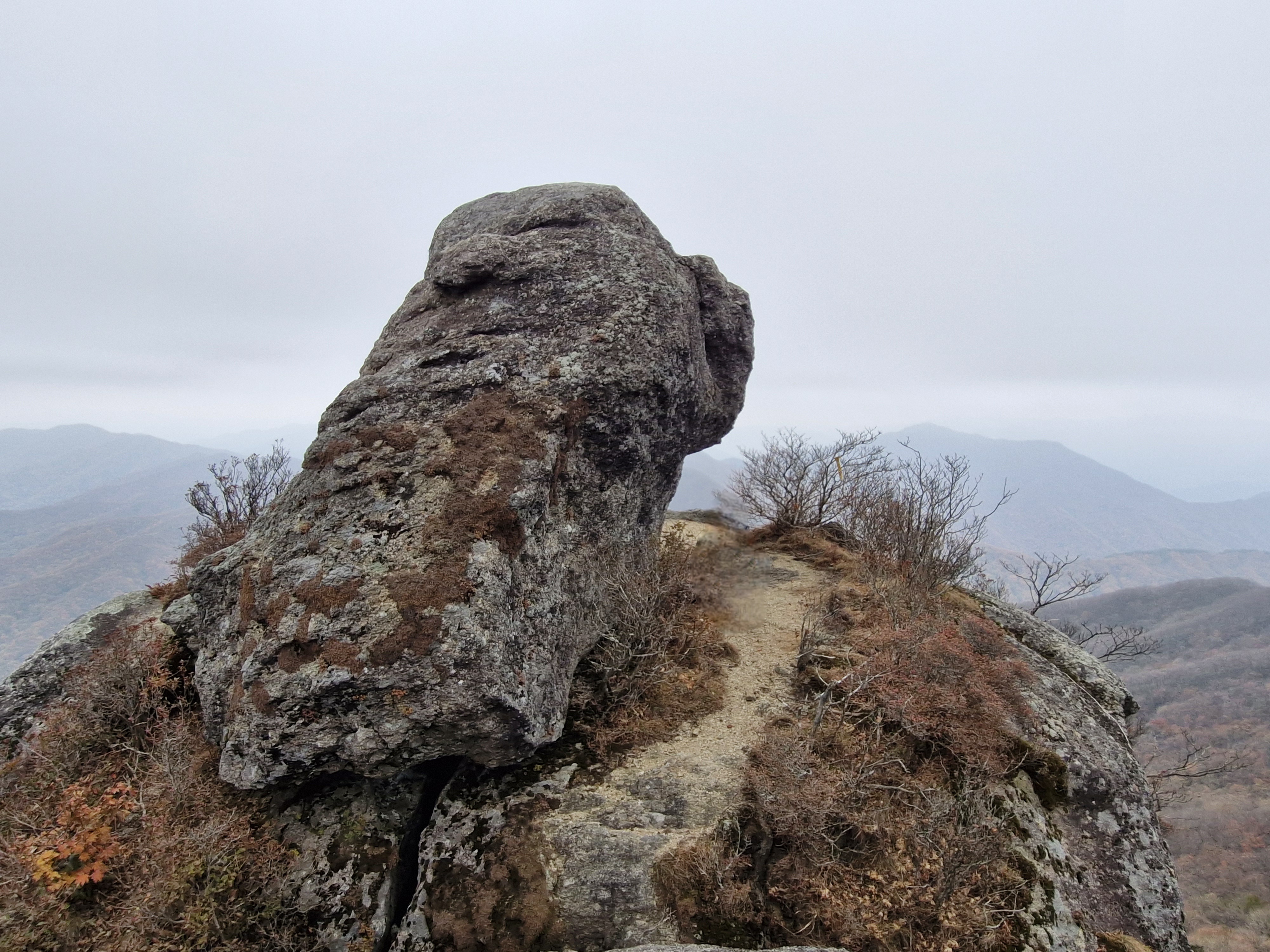 능선에 올라서니 단풍은 사라지고 바람이 세차서 춥지만, 볼거리 많아 즐겁습니다.
