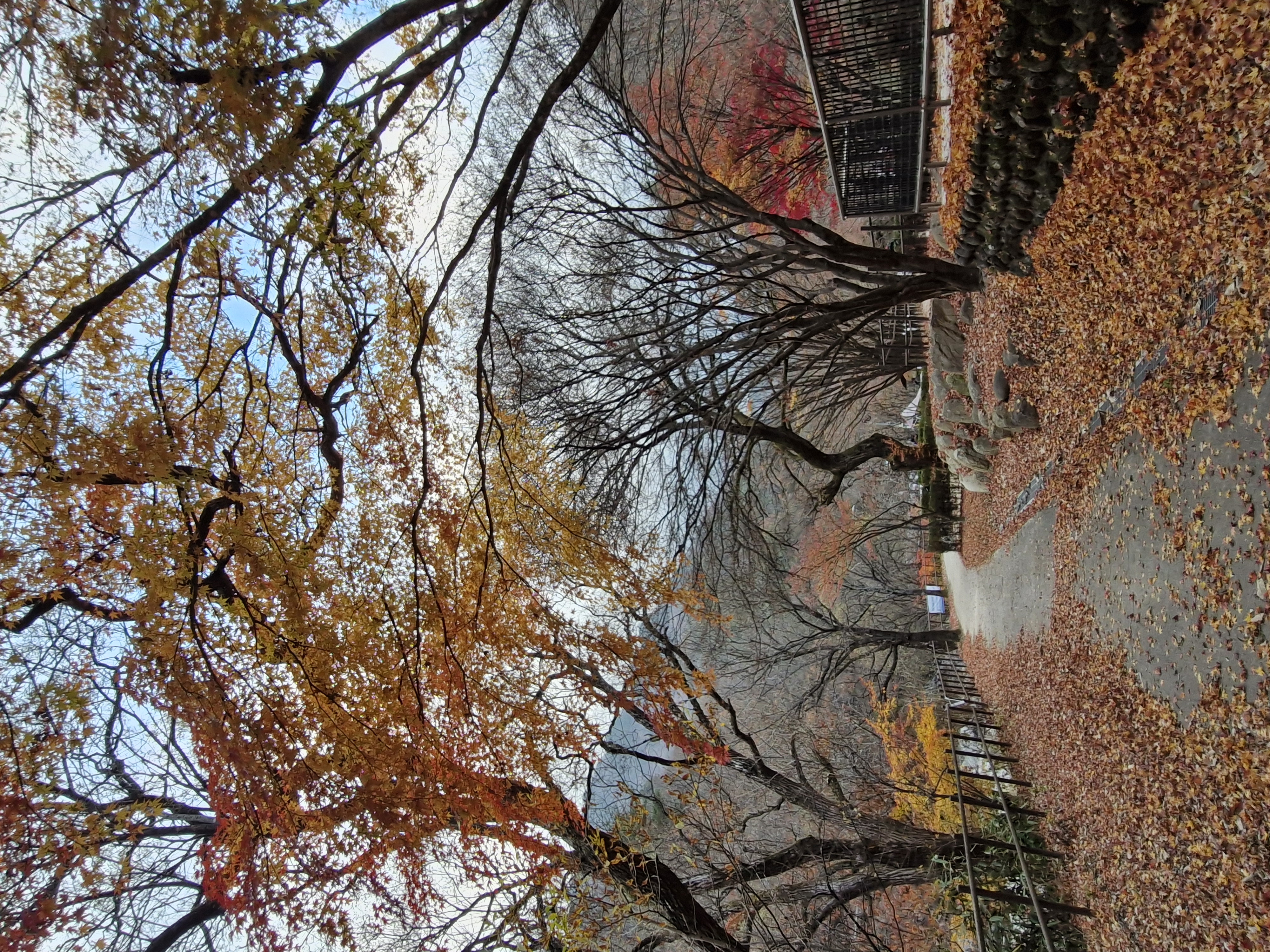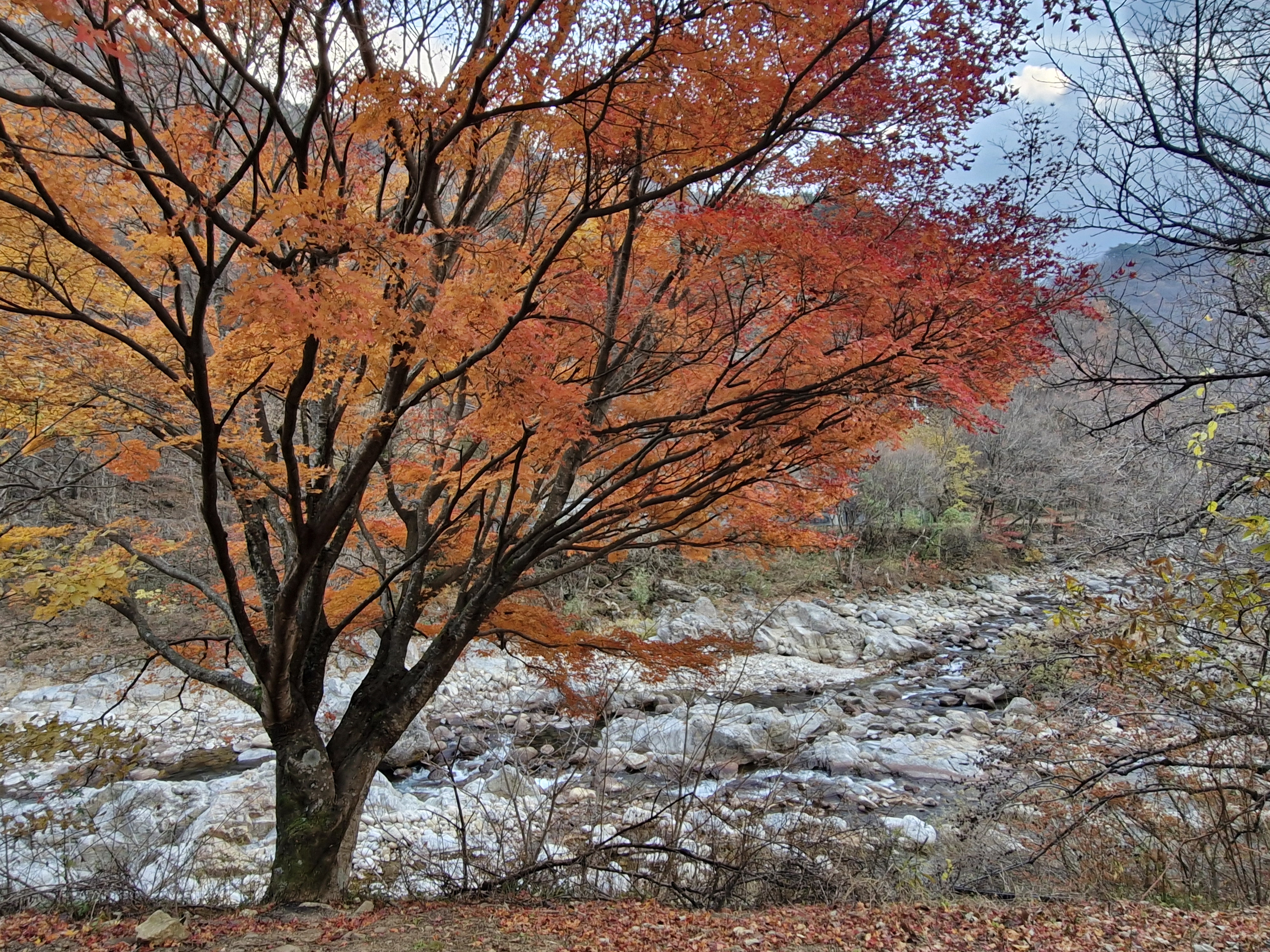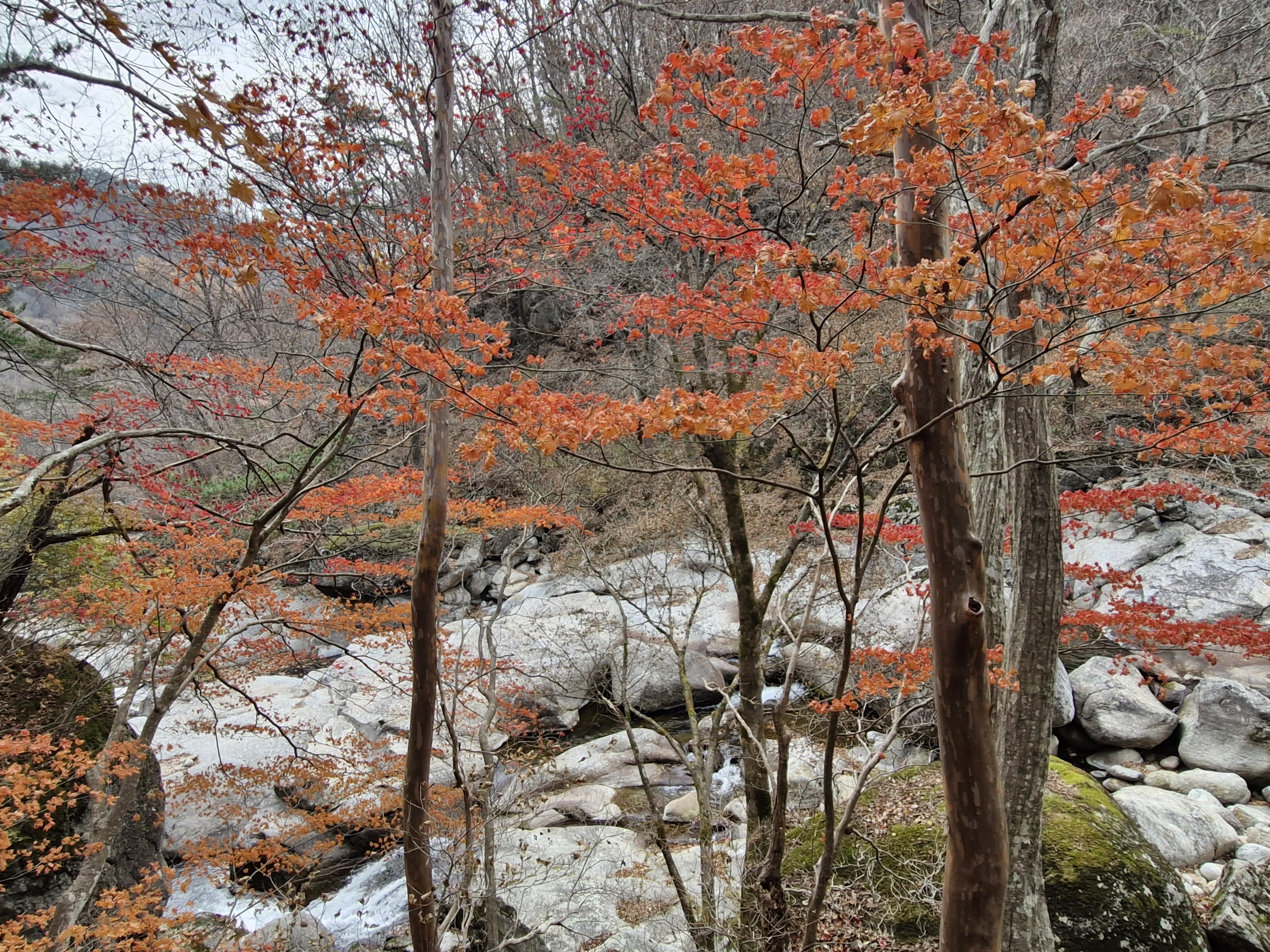 단풍이 남아 있는데, 날이 흐려 아쉽다.