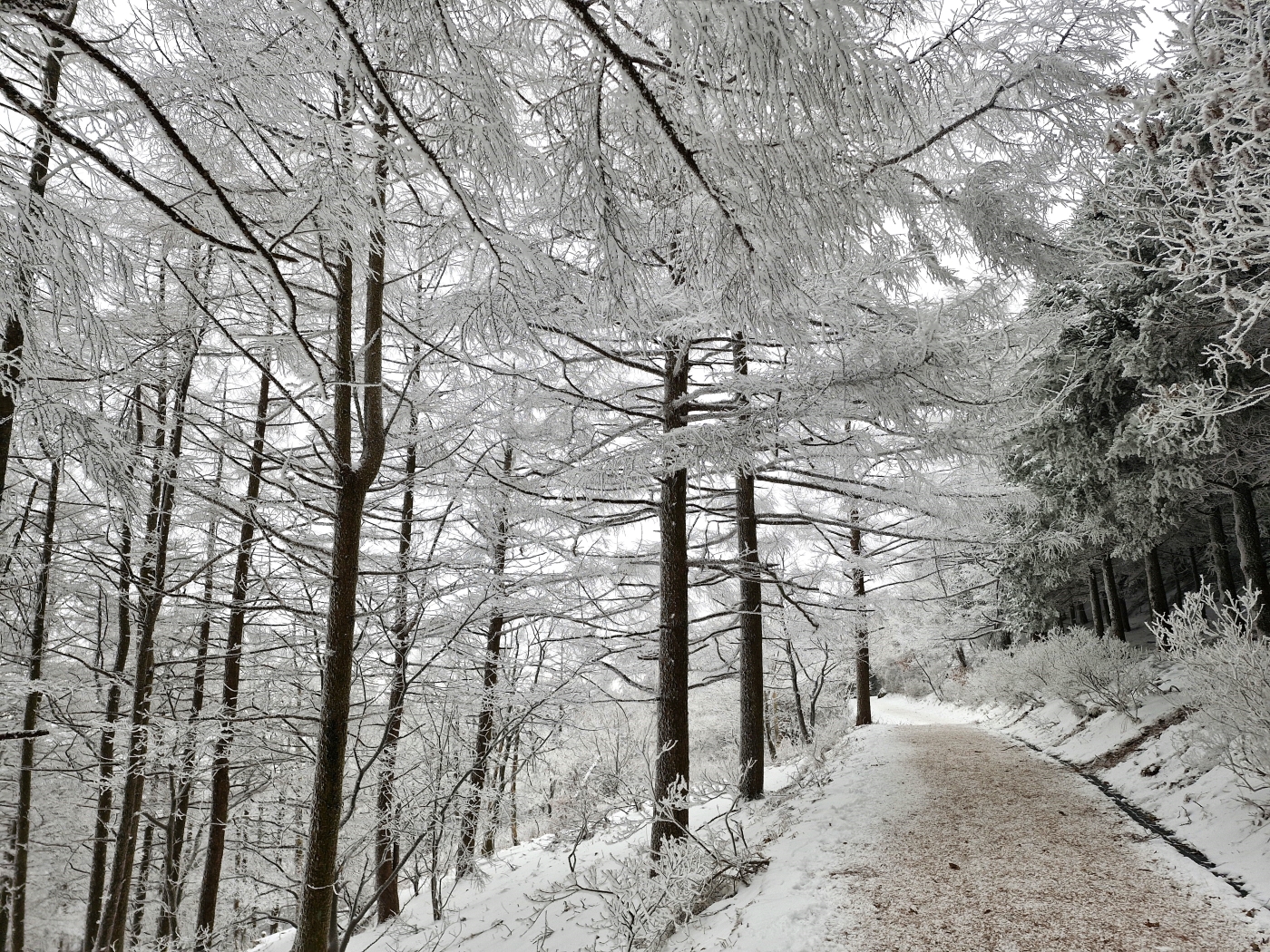 * 2024년 12월 22일 * 전북학생수련원~세동치~세걸산~전북학생수련원* 맑고 추운 날 파란 하늘과 설화를 보러 세동치로... (4시간35분) 구례군 산동면 도로에서 바라본 만복대전북학생수련원 아래 주차장에서 출발임도에서 다리쉼하고 올라간다.임도 이정표새벽에 내린 눈이라 부드럽고 밟는 느낌이 좋다.^^세동치가 가까와지자하늘이 더 파랗고 눈꽃도 활짝 피었다.^^그동안 눈이 와도 구름 많은 날이었는데, 맑은 날 파란하늘 너무 고맙다. ㅎ처음엔 바래봉으로 가볼까 하는 마음도 있었지만세동치 헬기장에서 점심을 먹기로 하고세동치샘으로 간다.바람이 불자, 샬~랄랄라 햐얀 꽃잎이 날린다. ㅎ샘으로 내려가며 고개를 드니, 멀리에 중봉~천왕봉~제석봉이 부른다.마음이 달려갔다 되돌아온다.새동치샘에서 돌아오는데, 춥..