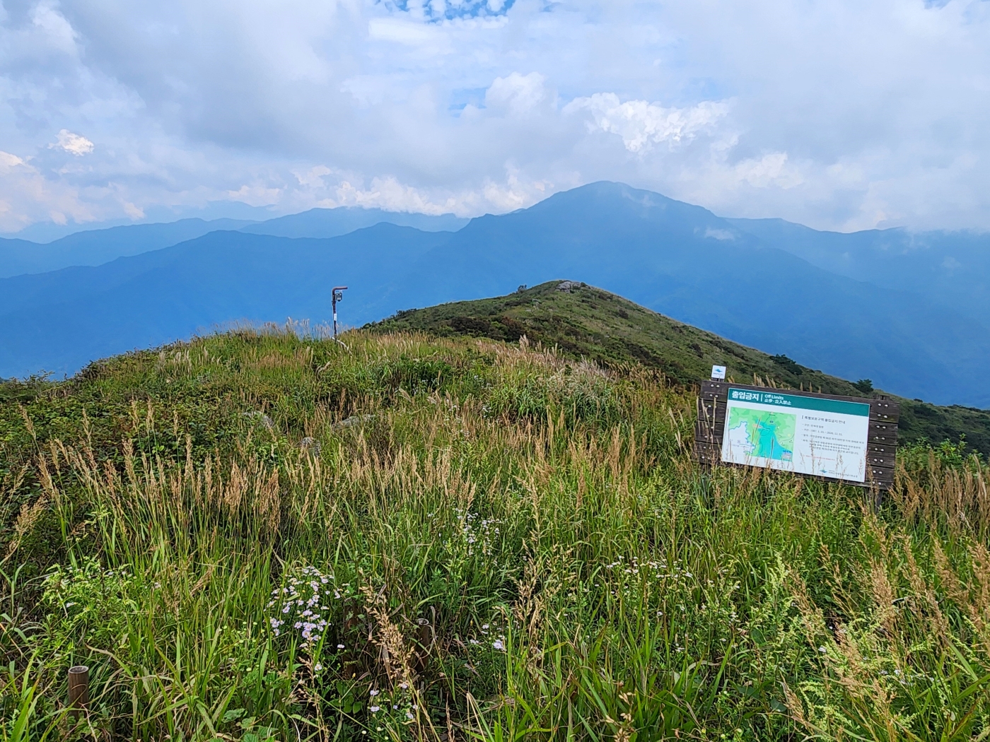 정령치~만복대~만복대샘 : 2024. 09. 12 * 2024년 09월 12일 * 정령치~만복대~만복대샘~정령치* 맑다가 흐린 날 둘이서 만복대로... (4시간 50분) * 가을이 오는 만복대로 향하며 여기저기 반기는 꽃구경을 합니다. 만복대에서 점심을 먹고, 시원한 바람 맞으며 멍을 때립니다. * 한참을 그렿게 앉아 있다가 오랫만에 만복대샘으로 향합니다. 른적이 사라지고, 짐승길이 더 뚜렷해 몇 걸음 어긋나기도 합니다. * 요즘은 만복대샘으로 내려가는 산님들이 거의 없나 봅니다. 무성한 풀 속에 쳐박힌 호스를 찾아 만복대샘에 두고옵니다. 고기리~정령치 도로에 있는 선유폭포정령치 휴게소아직은 휴게소에 의자와 반달곰 인형을 파는 자판기만 있다.억새가 피기 시작하고군데군데 구절초가 반긴다.무성한 산죽이 잘리고, 잦은 비에 씻긴 등로가 그늘져 .. 지리산길/2024 2024.09.14