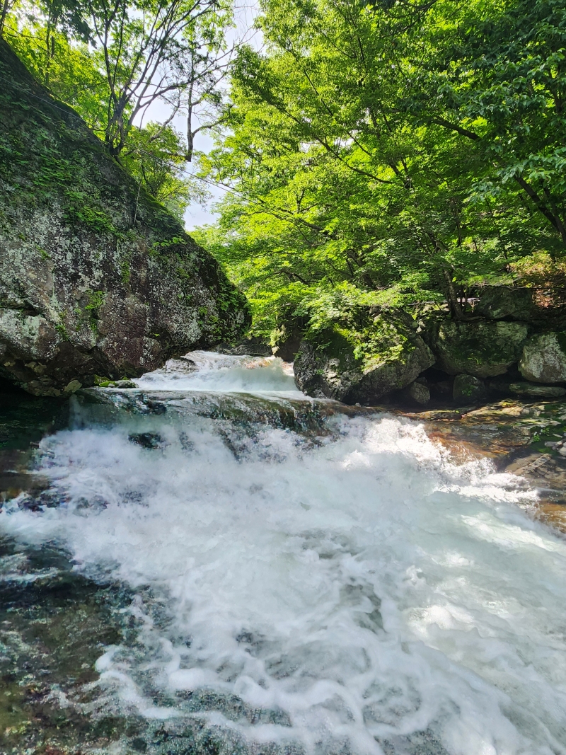 * 2024년 07월 8일 * 의신~원대성~작은세개골 초입~수곡폭포* 맑은 날이 예보되였으나, 잔뜩 흐려지고 소나기 두 차례 쏟아져 원대성으로... * 장마 후 작은세개골 폭포를 보러갔다가 소나기를 피해 원통굴에서 쉬어갑니다. 수곡골 폭포를 보러 대성계곡을 건너야 하는데 건너기가 어렵습니다. * 원대성 못미처 소나기가 더욱 심하게 퍼붓어 원대성으로 갑니다. 원대성 불탄흔적을 살피고 비가 그치지 않아 오랫만에 서대터로 갑니다. * 원대성을 내려와 입구에서 비가 그쳐 작은세개골 철다리로 갑니다. 작은세개골로 올라가 조금 걷다가 하산하여 수곡폭포로 갑니다.